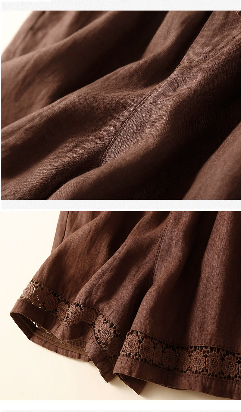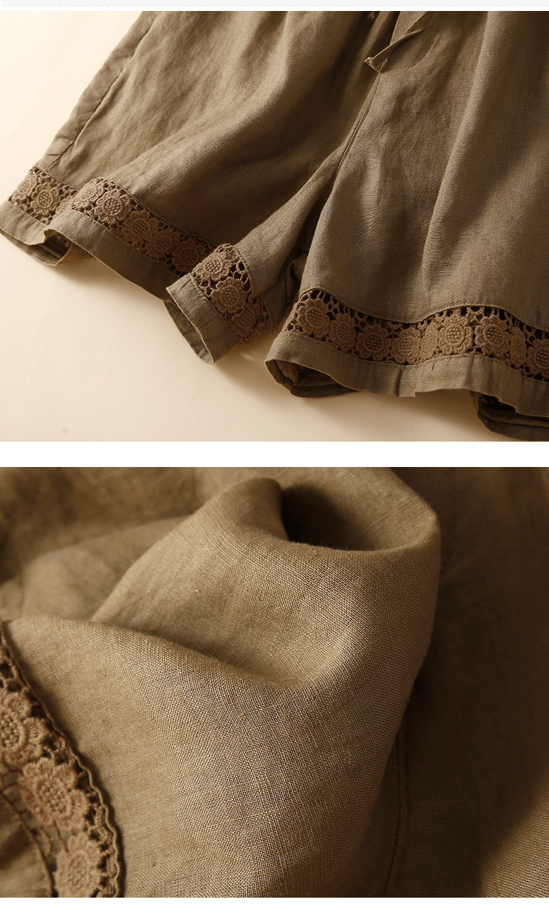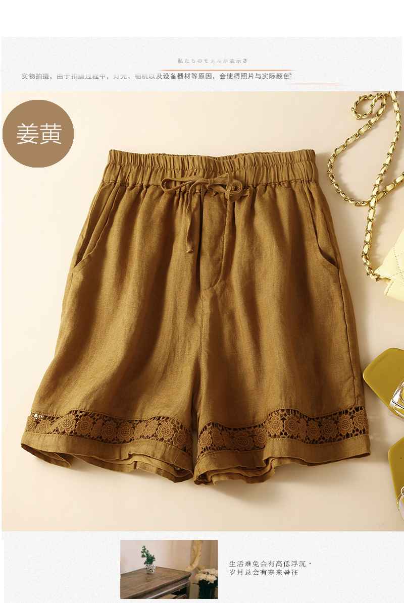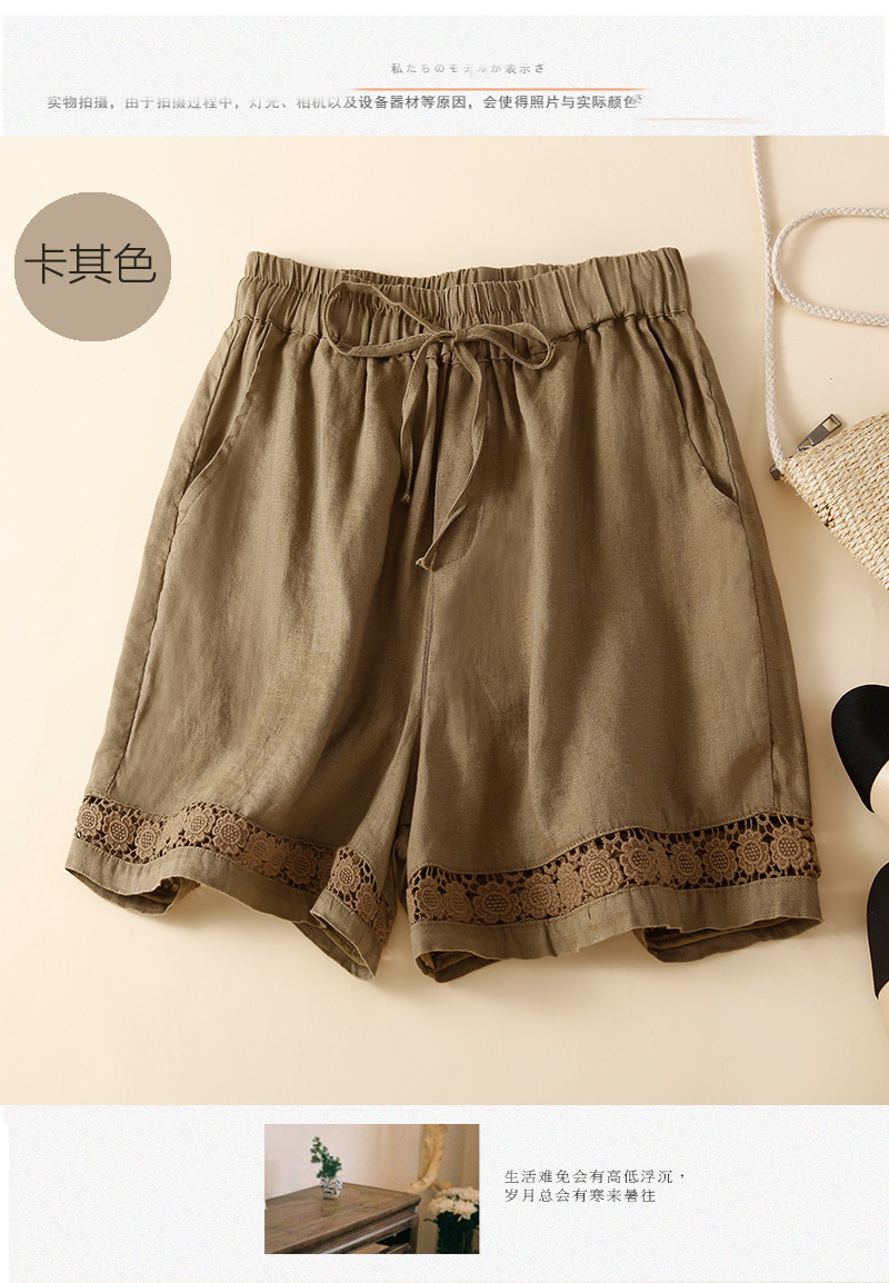 8가지 색상, 레트로 스타일의 레이스 디테일 코튼 린넨 팬츠, 여성용 끈 조절 허리밴드, 와이드 팬츠, 편안한 캐주얼 팬츠, 반바지, 하이웨이스트스토어 가기