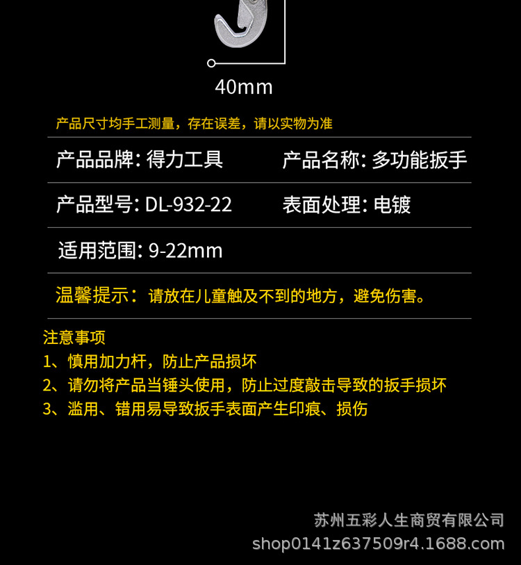 델리 도구 DL932-22 다기능 렌치 퀵 호스 플라이어 이동식 보드 9-22mm