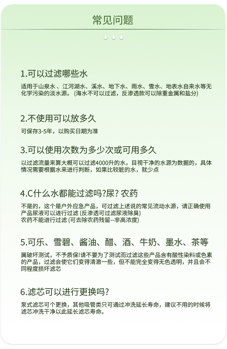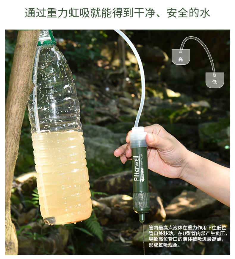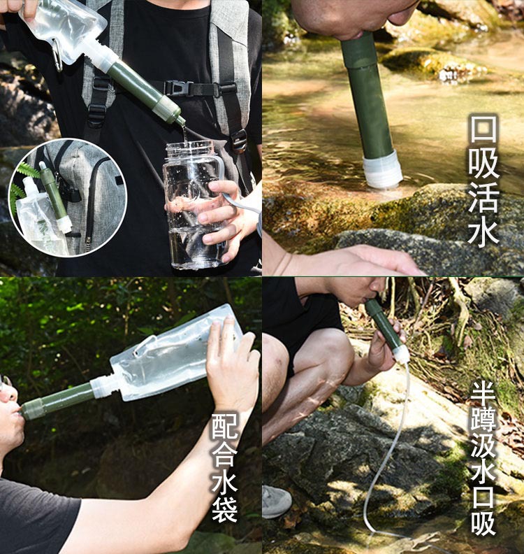 아마존 뜨거운 판매 야외 정수기 야외 휴대용 음료 필터 비상 캠핑 등산 장비스토어 가기