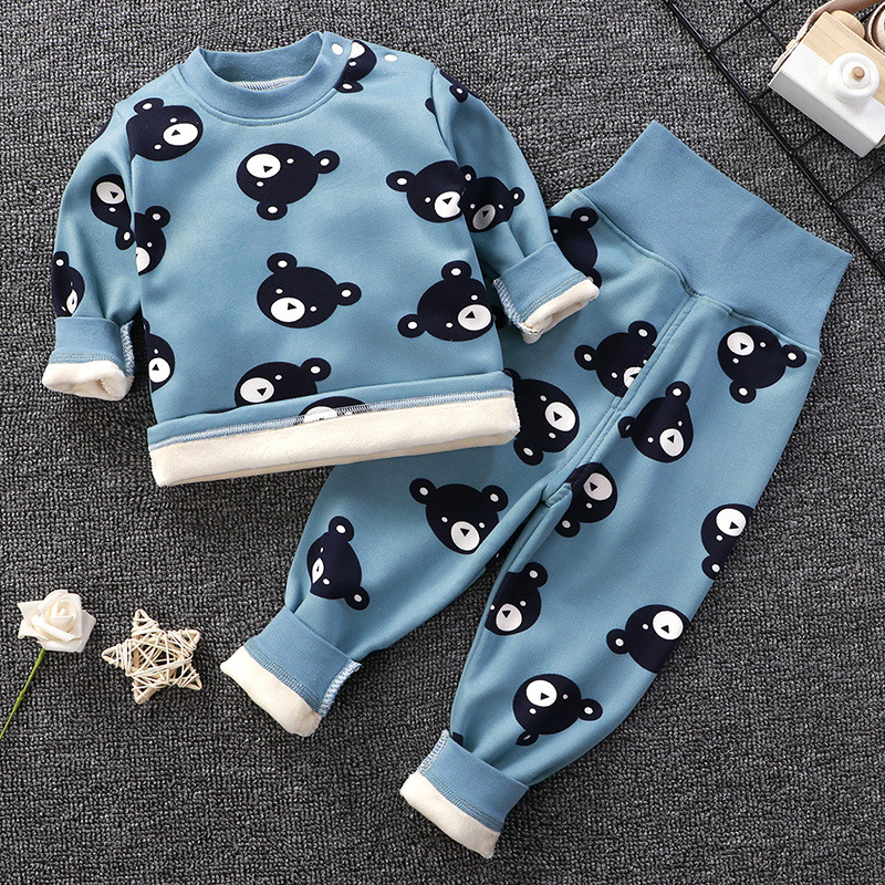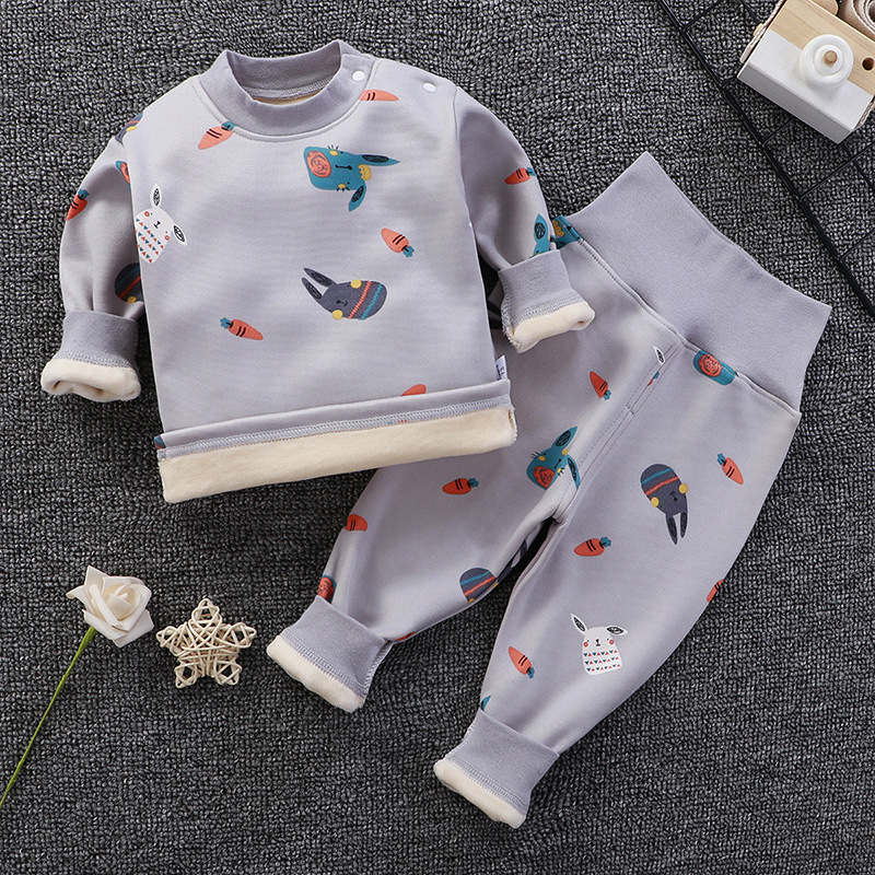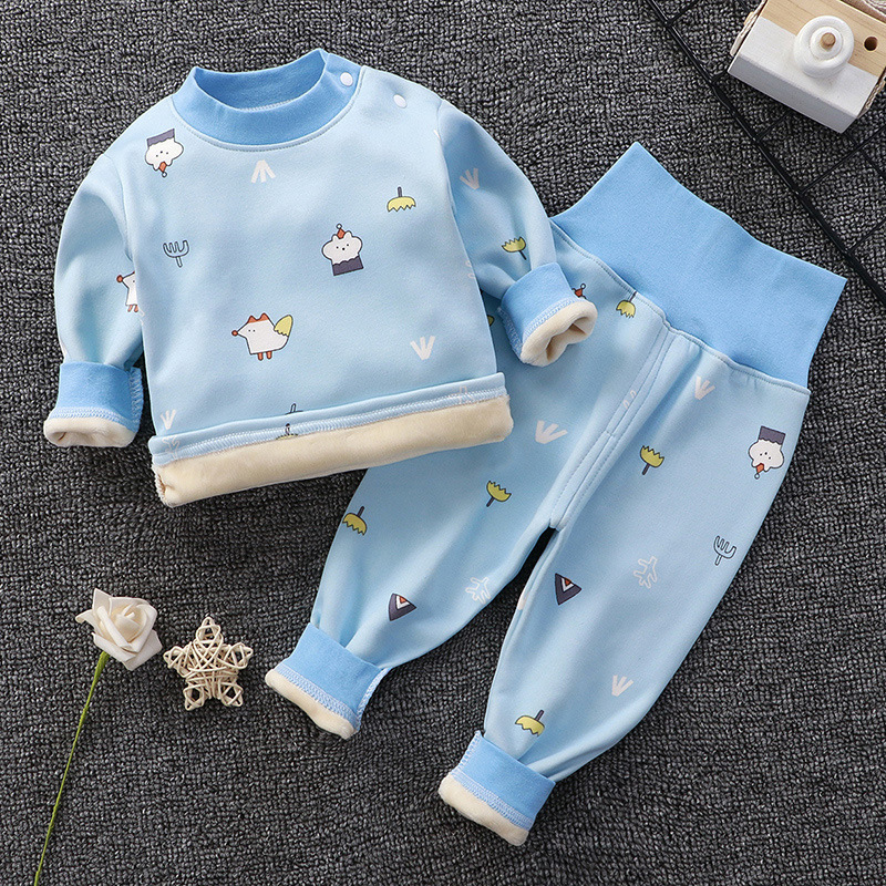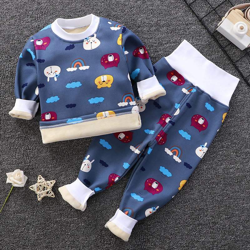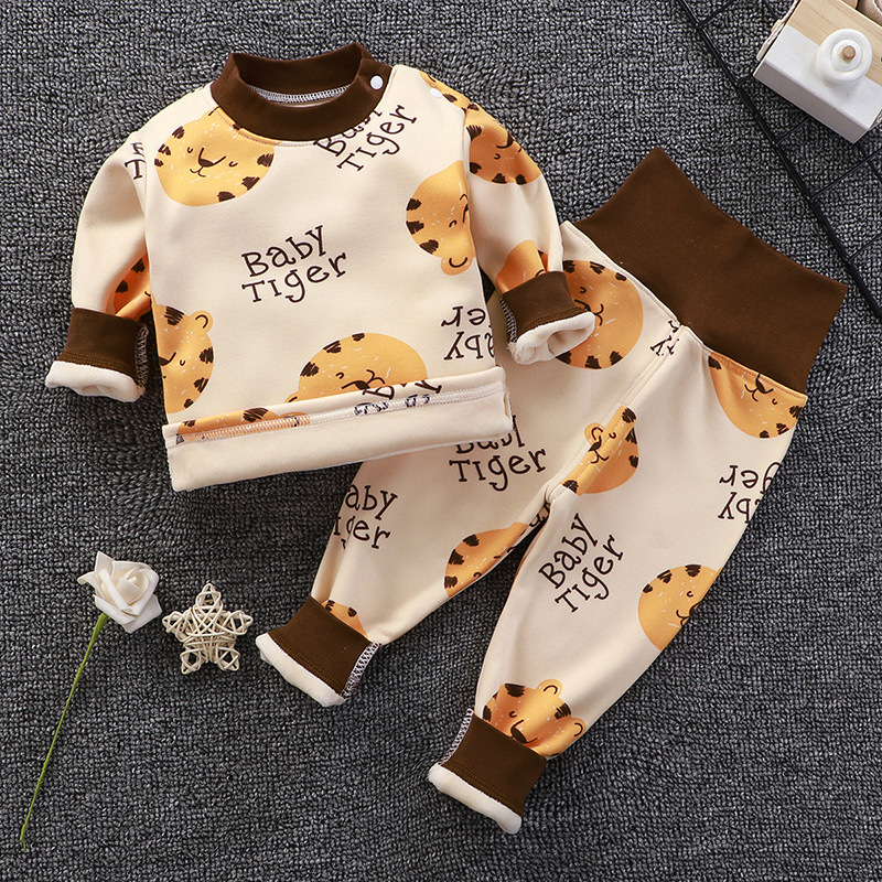 아기의 높은 허리 가을 옷 가을 바지 기모 속옷 소년과 소녀 세트 아기 배를 보호 어린이의 봄, 가을과 겨울 아기 잠옷