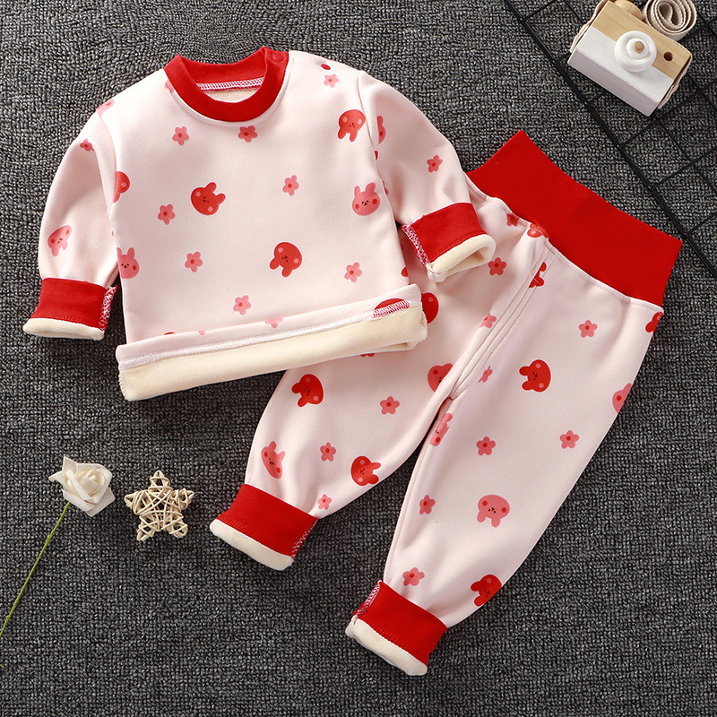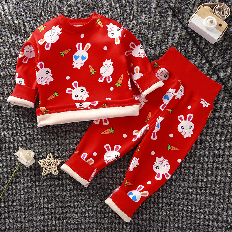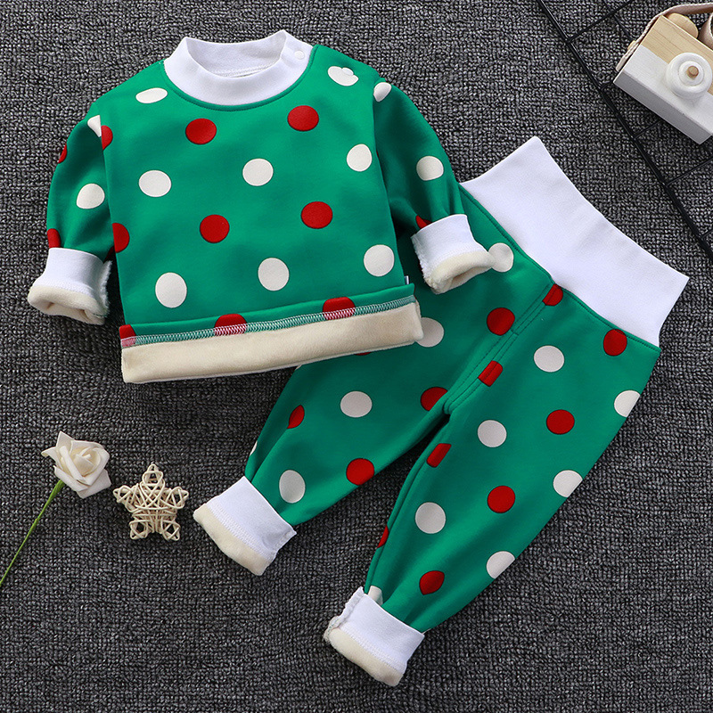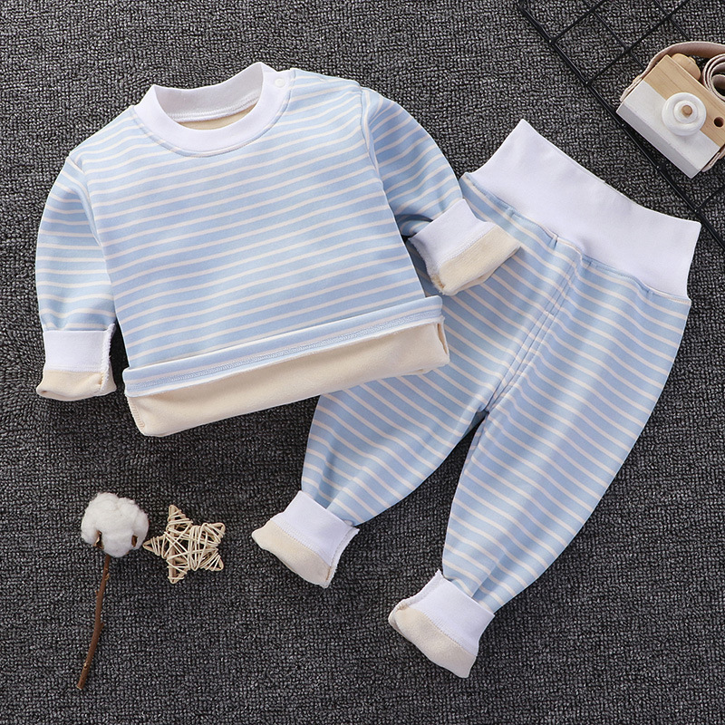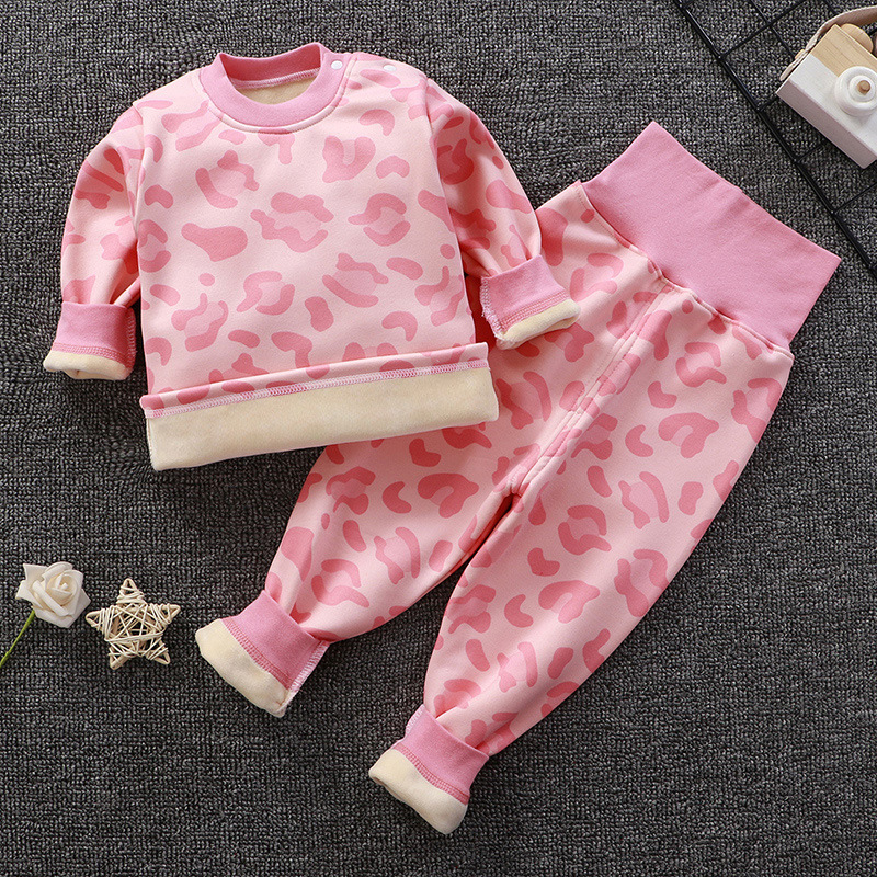 아기의 높은 허리 가을 옷 가을 바지 기모 속옷 소년과 소녀 세트 아기 배를 보호 어린이의 봄, 가을과 겨울 아기 잠옷