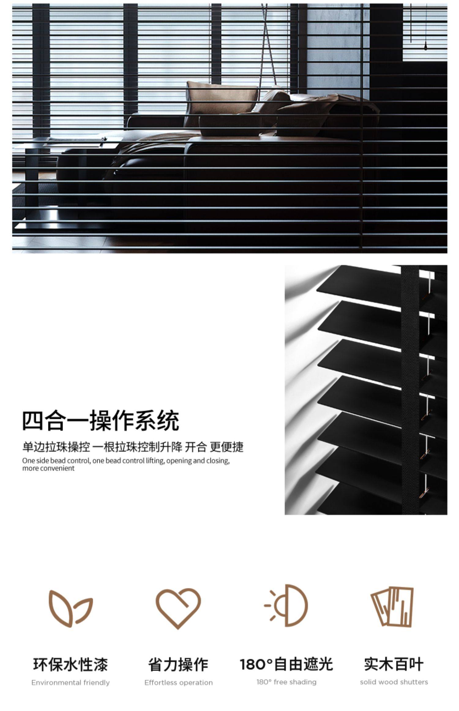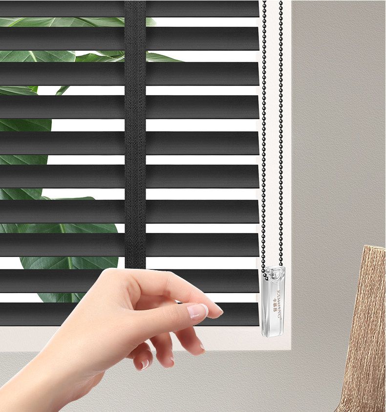 PK7J 블랙 솔리드 우드 블라인드 블라인드 나무 베네치아 블라인드 음영 전기 리프팅 연구 거실 식당