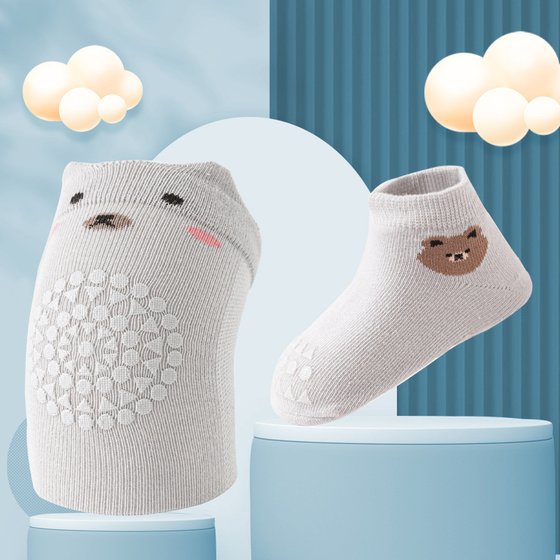 여름 새로운 어린이 무릎 패드 만화 분배 미끄럼 방지 크롤링 유아 세트 아기 바닥 양말 아기 무릎 패드스토어 가기