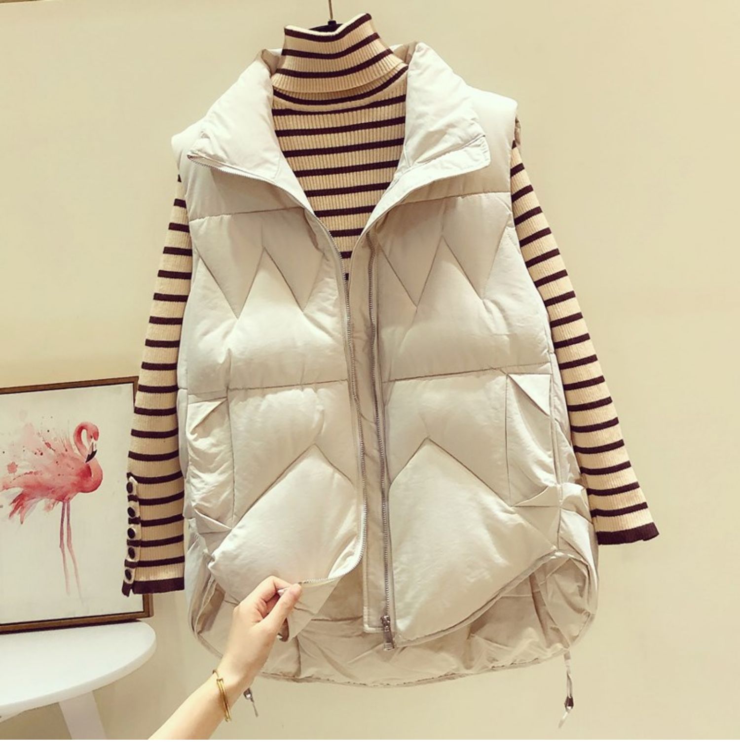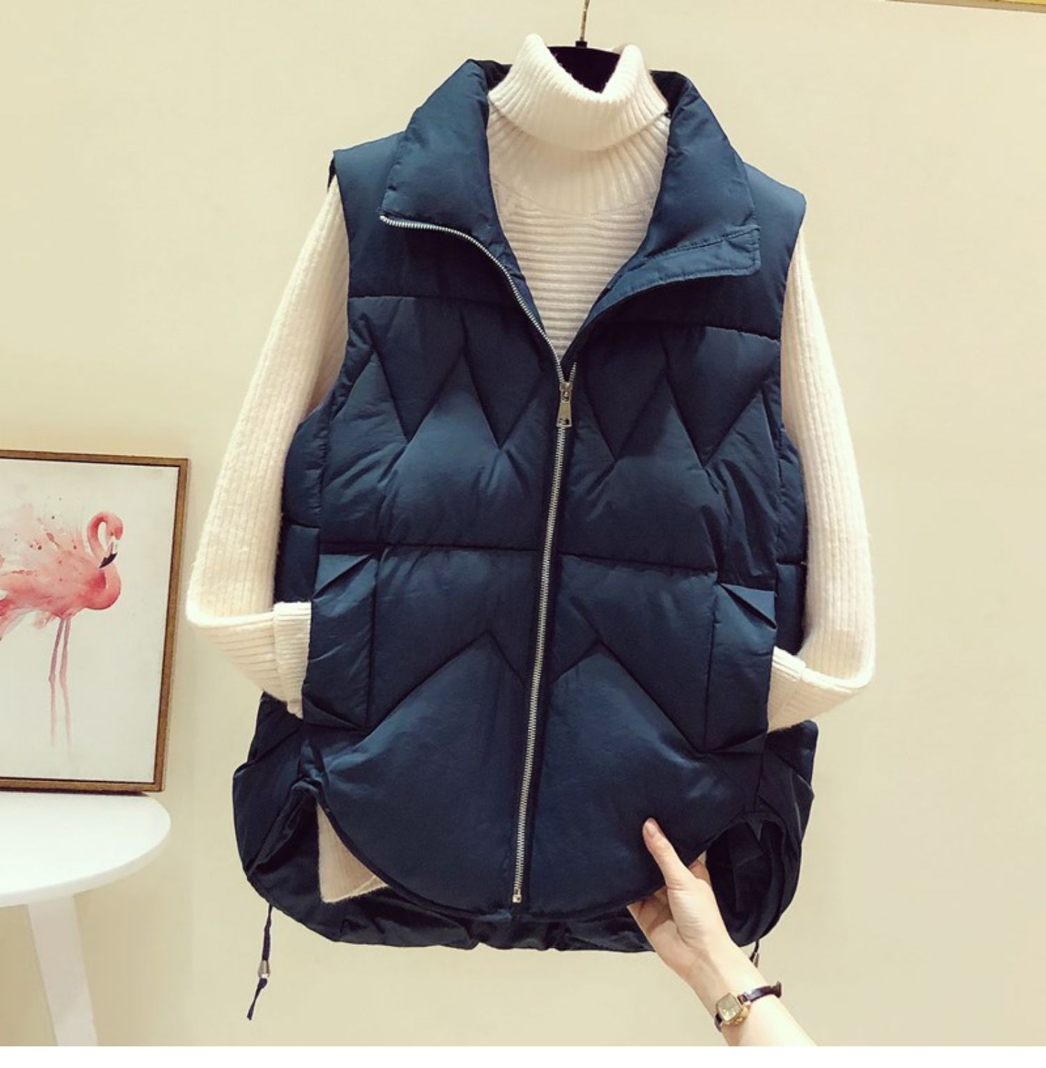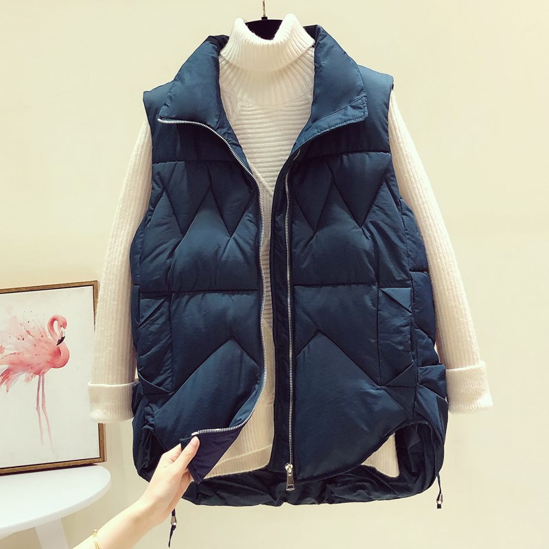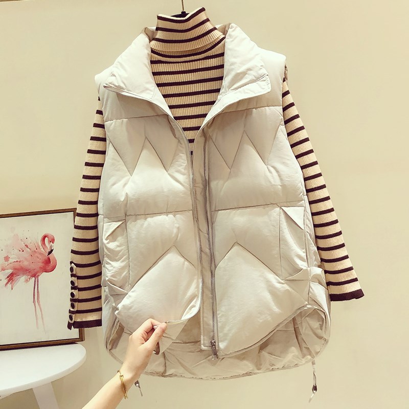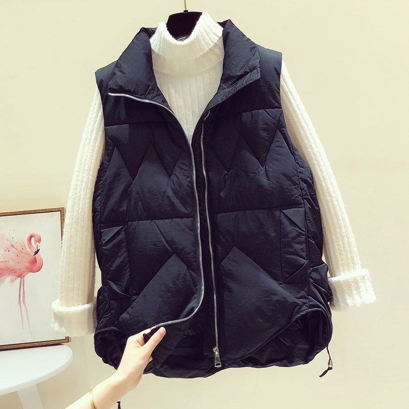 다운 코튼 조끼 여성용 2023 가을과 겨울 새로운 한국 스타일 모든 매치 조끼 느슨한 두꺼운 스탠드 칼라 조끼스토어 가기