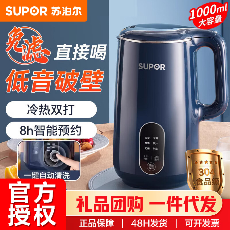 Supor 두유 기계 1L 가정용 다기능 벽 깨기 조리기 필터 무료 예약 믹서 DJ10B-P19E