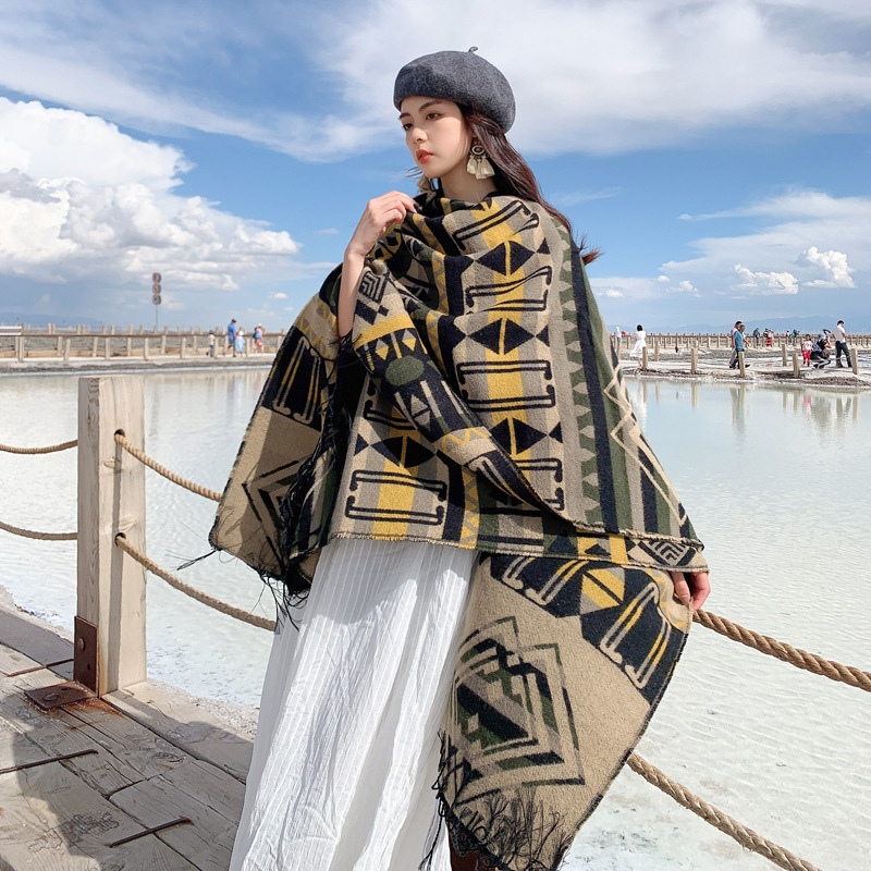 2022 숄 여성 가을과 겨울 모조 캐시미어 에스닉 스타일 망토 두꺼운 모든 매치 코트 이중 목적 대형 스카프스토어 가기