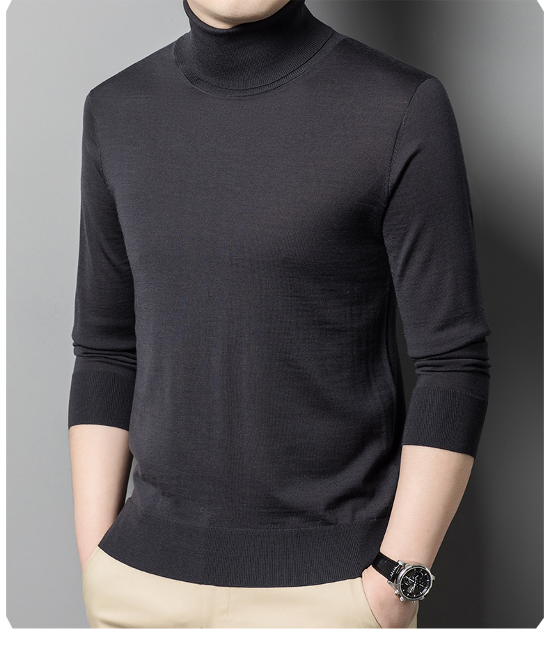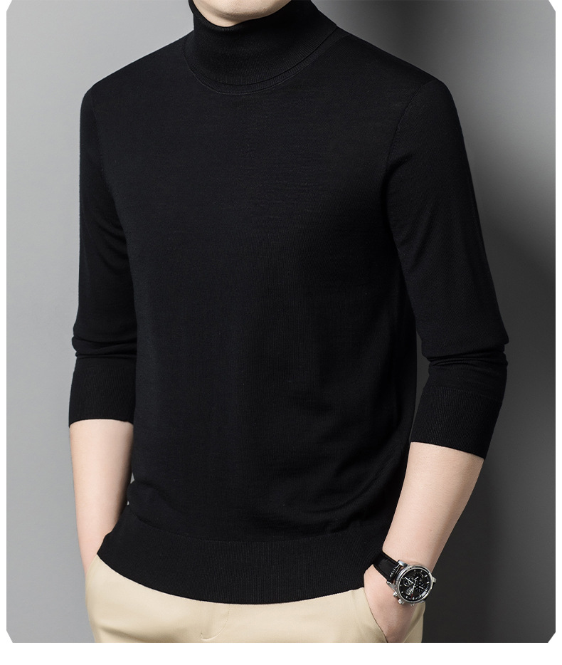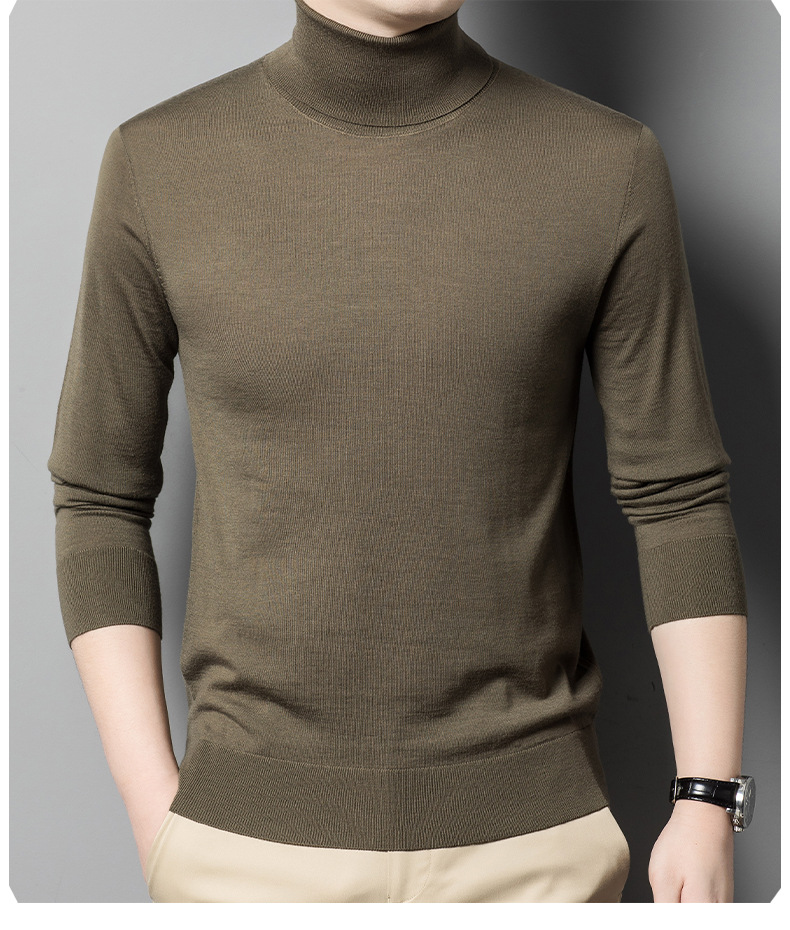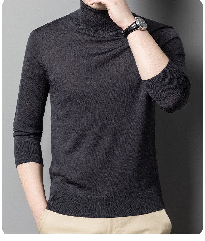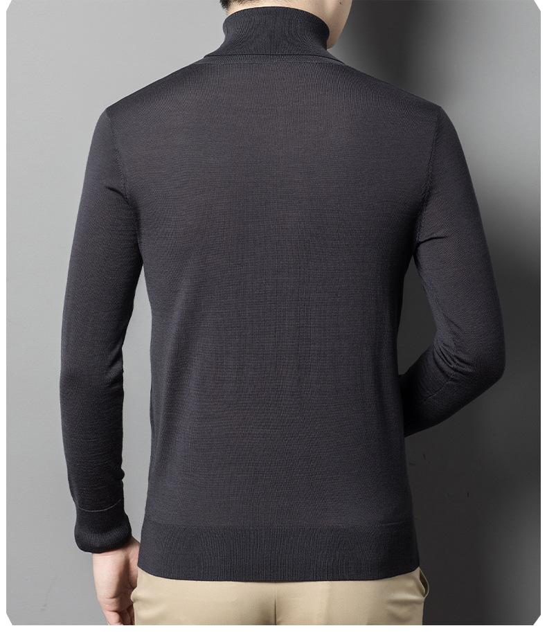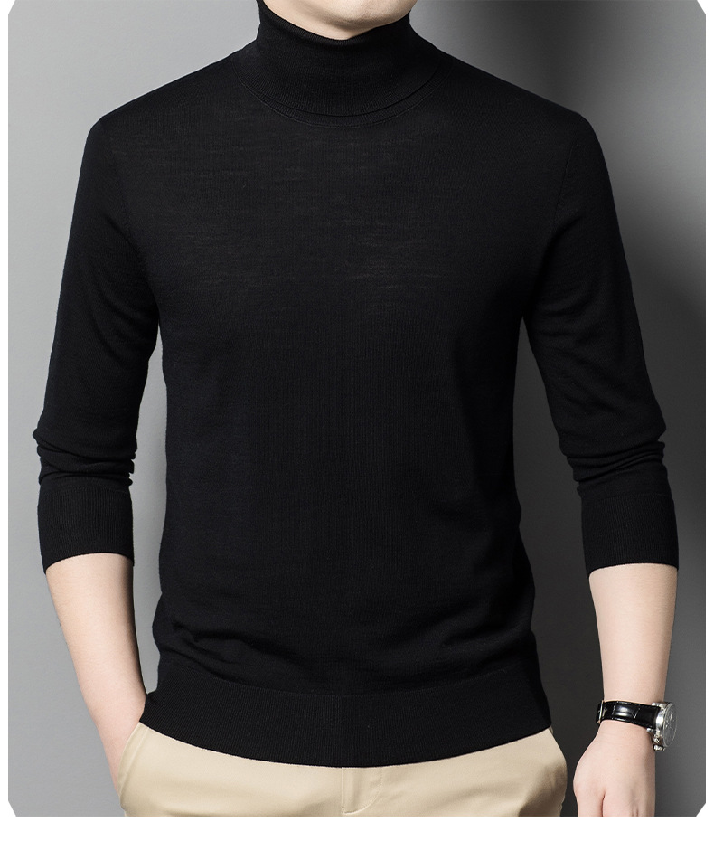 세탁기 사용 가능 고급 울 스웨터, 더블 라펠 남성용 100% 순모 긴팔 하이넥 니트 스웨터, 얇은 베이스 레이어 스웨터