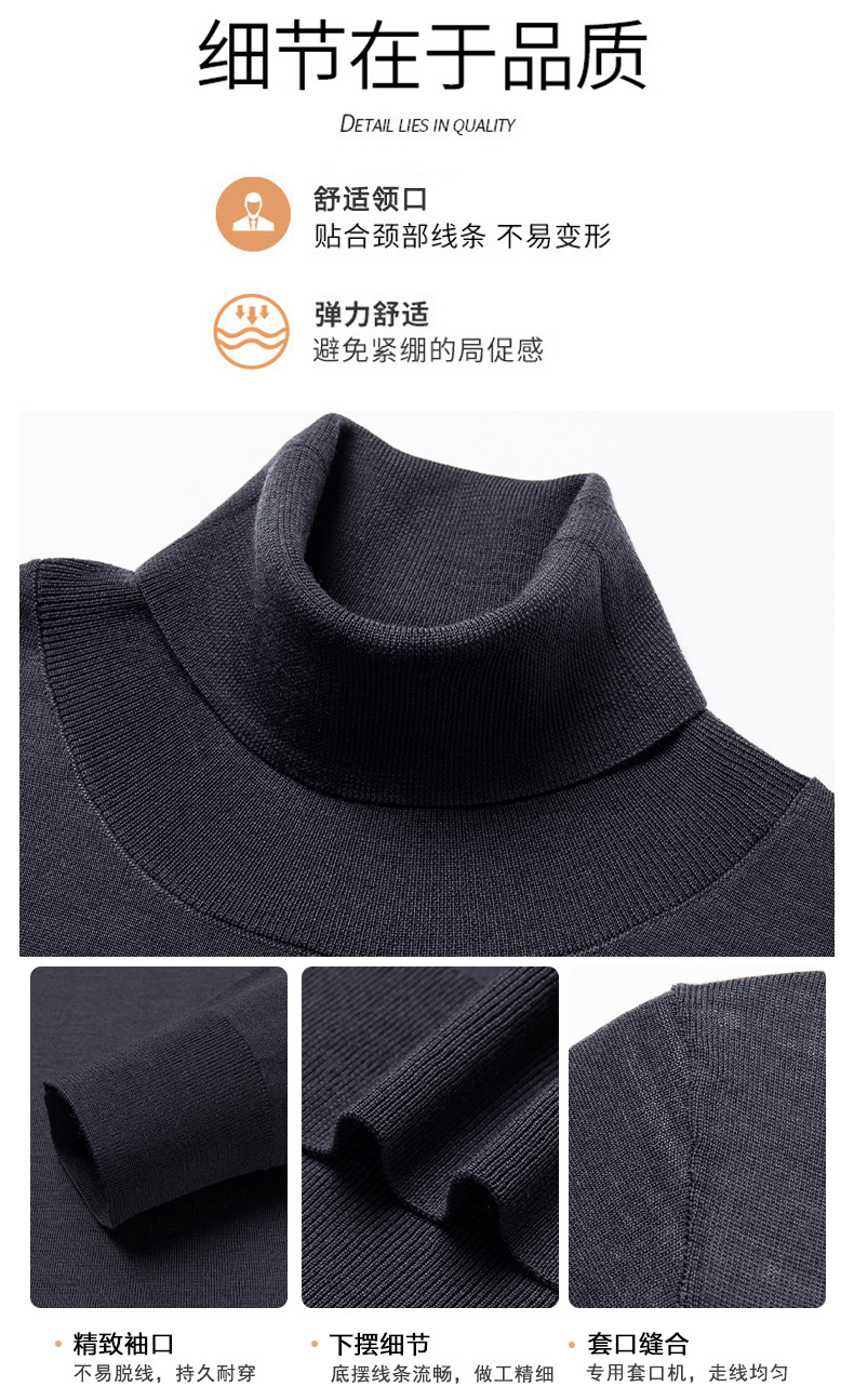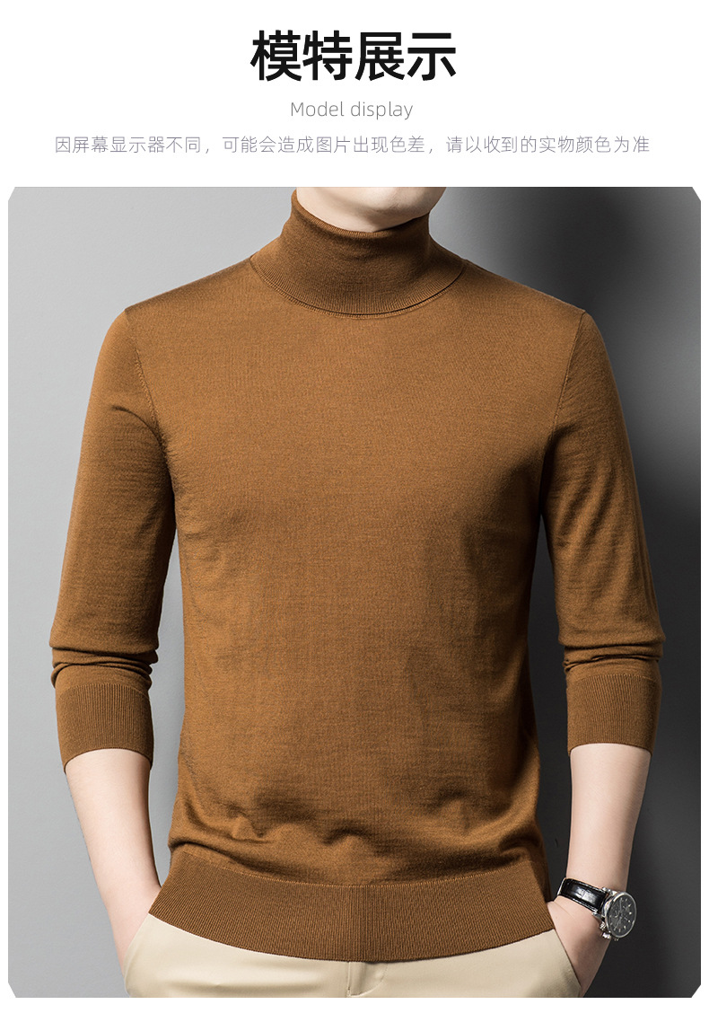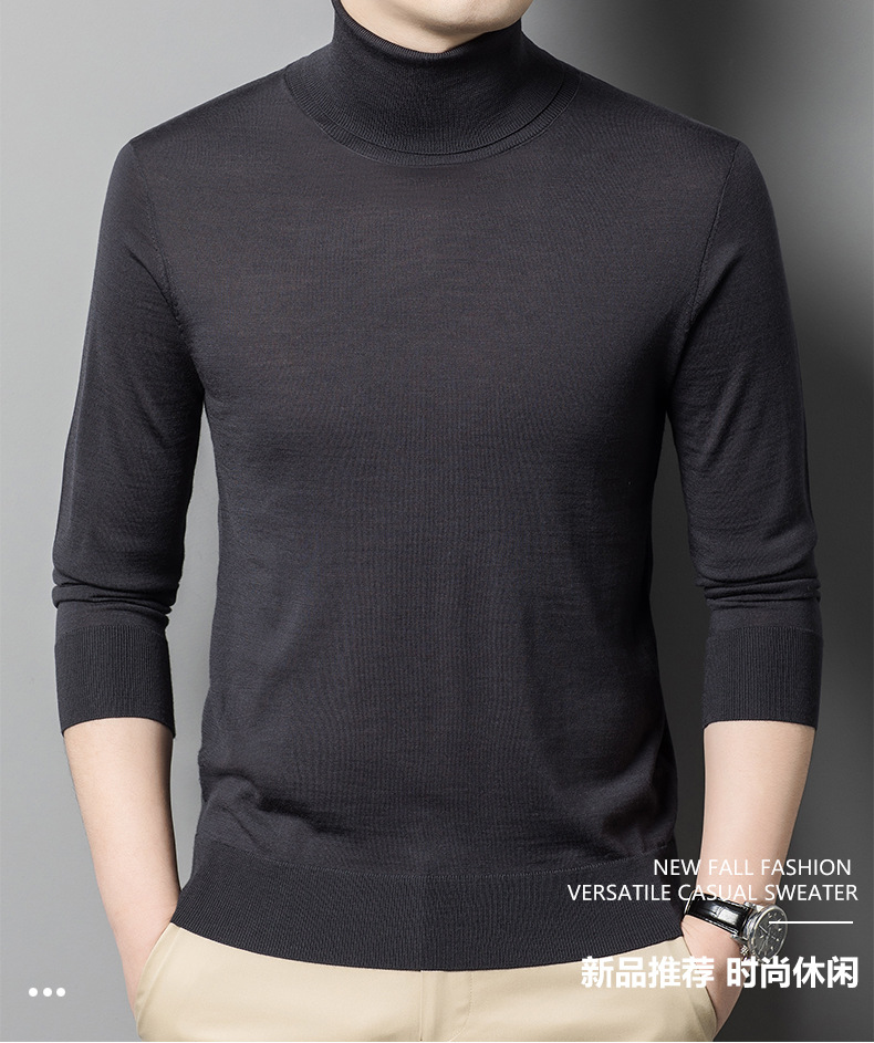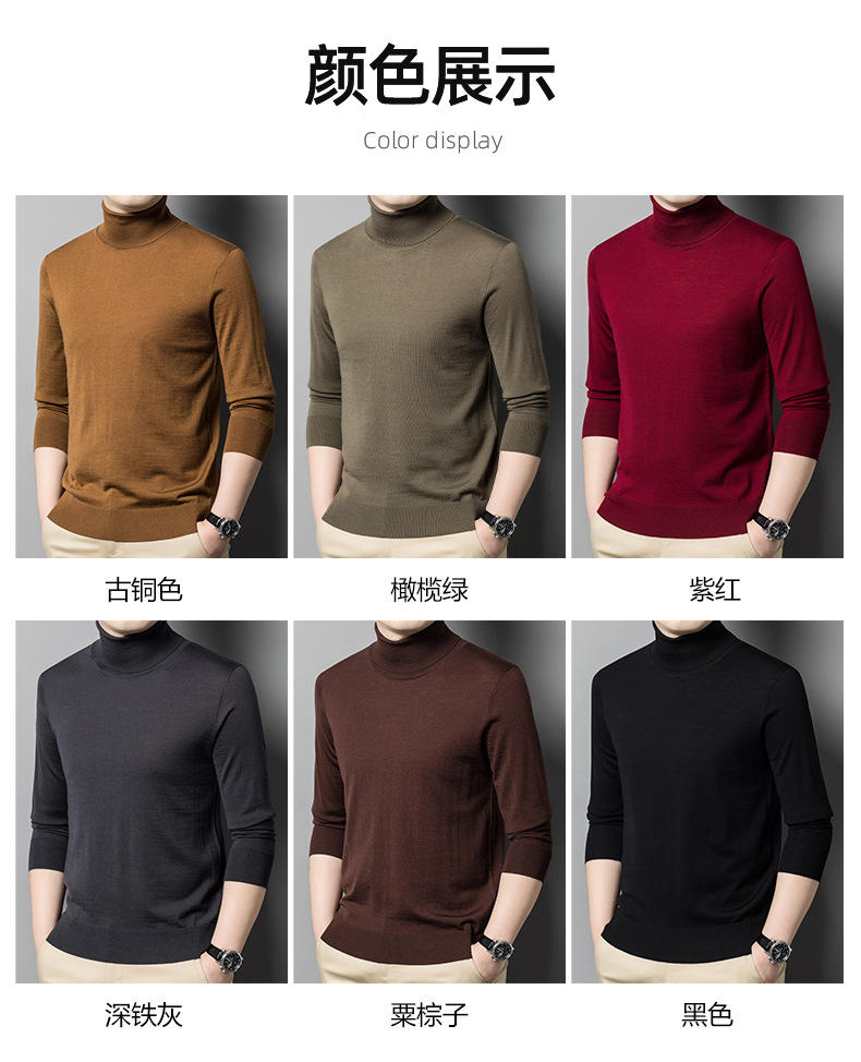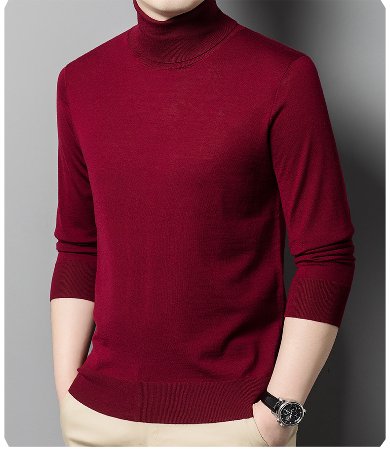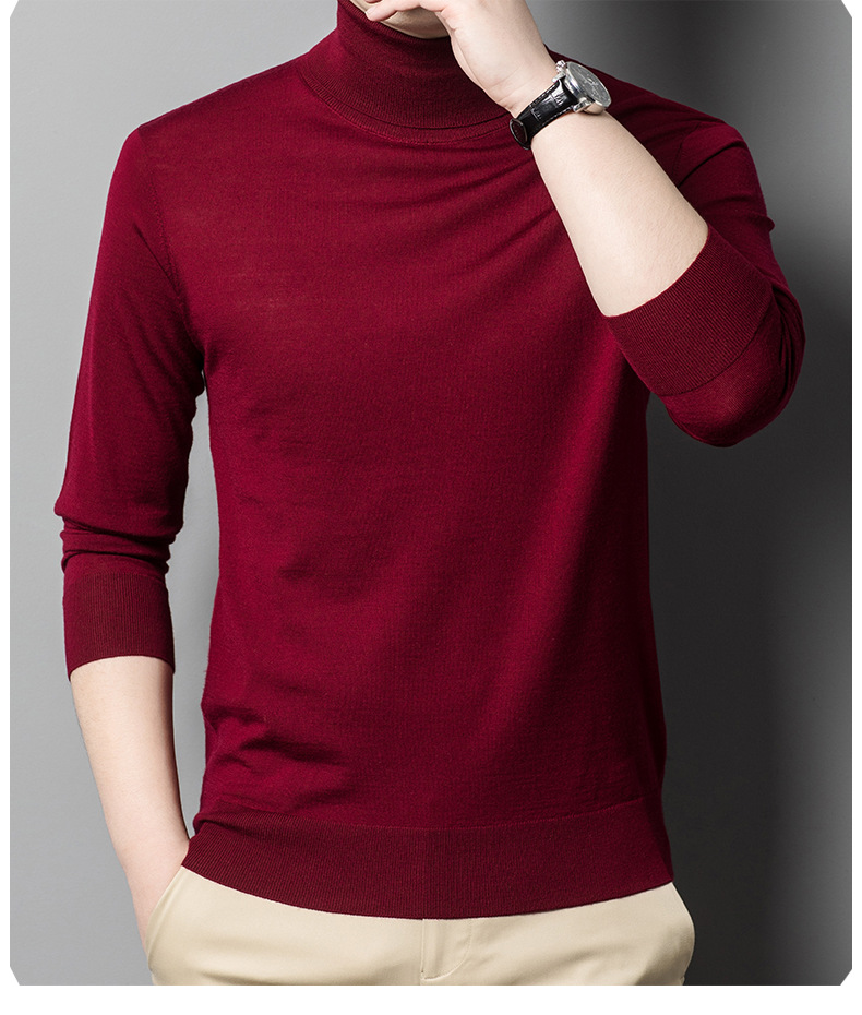 세탁기 사용 가능 고급 울 스웨터, 더블 라펠 남성용 100% 순모 긴팔 하이넥 니트 스웨터, 얇은 베이스 레이어 스웨터스토어 가기