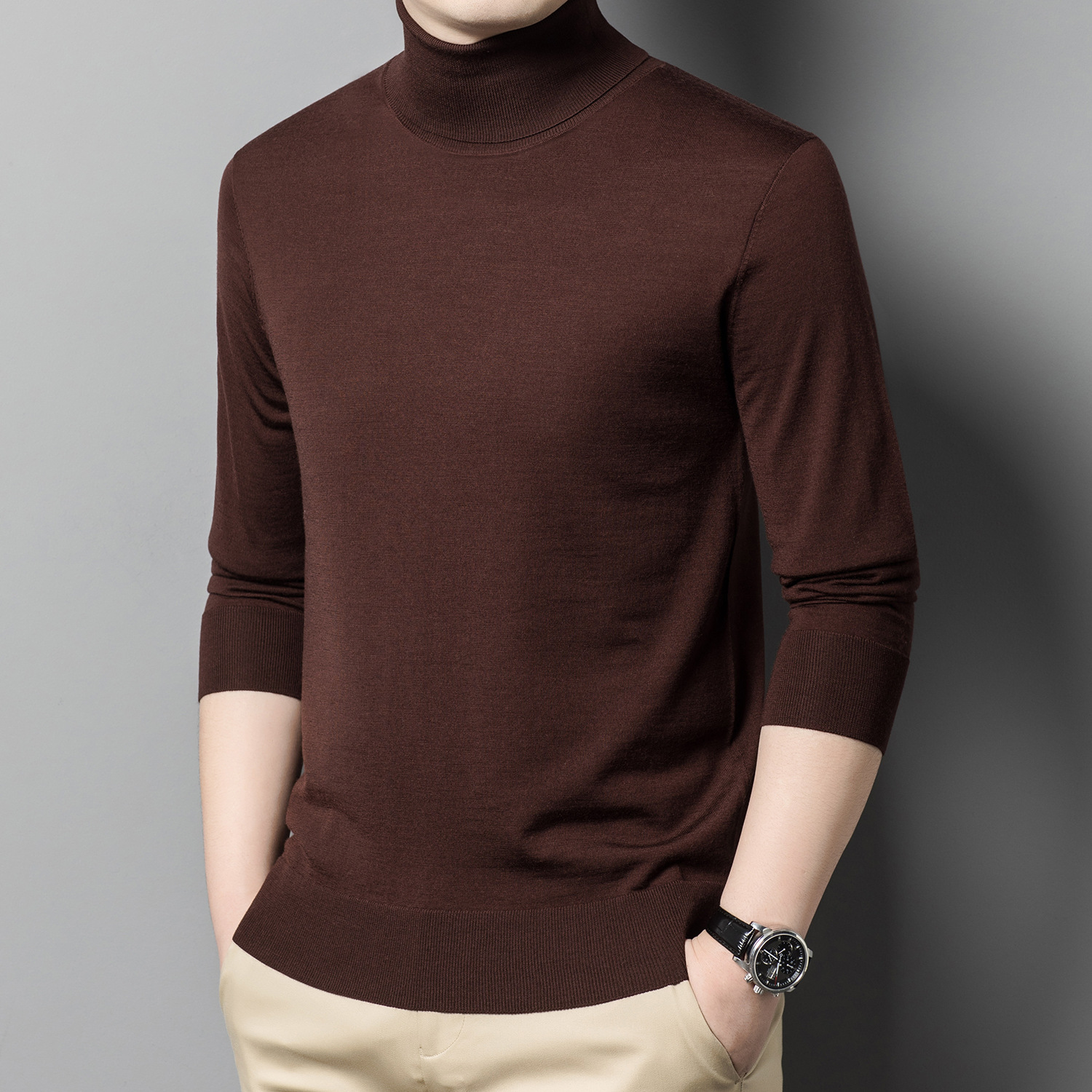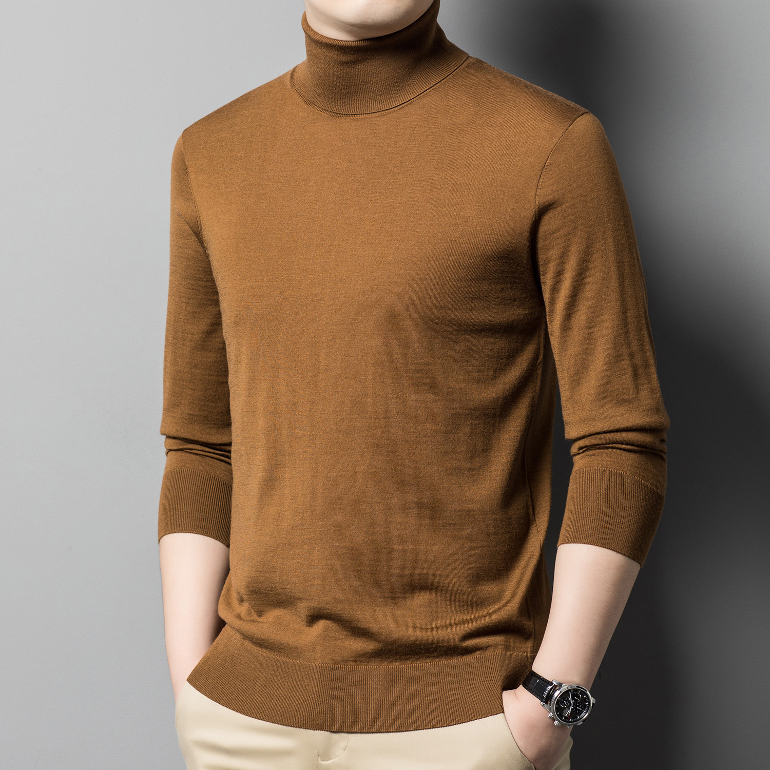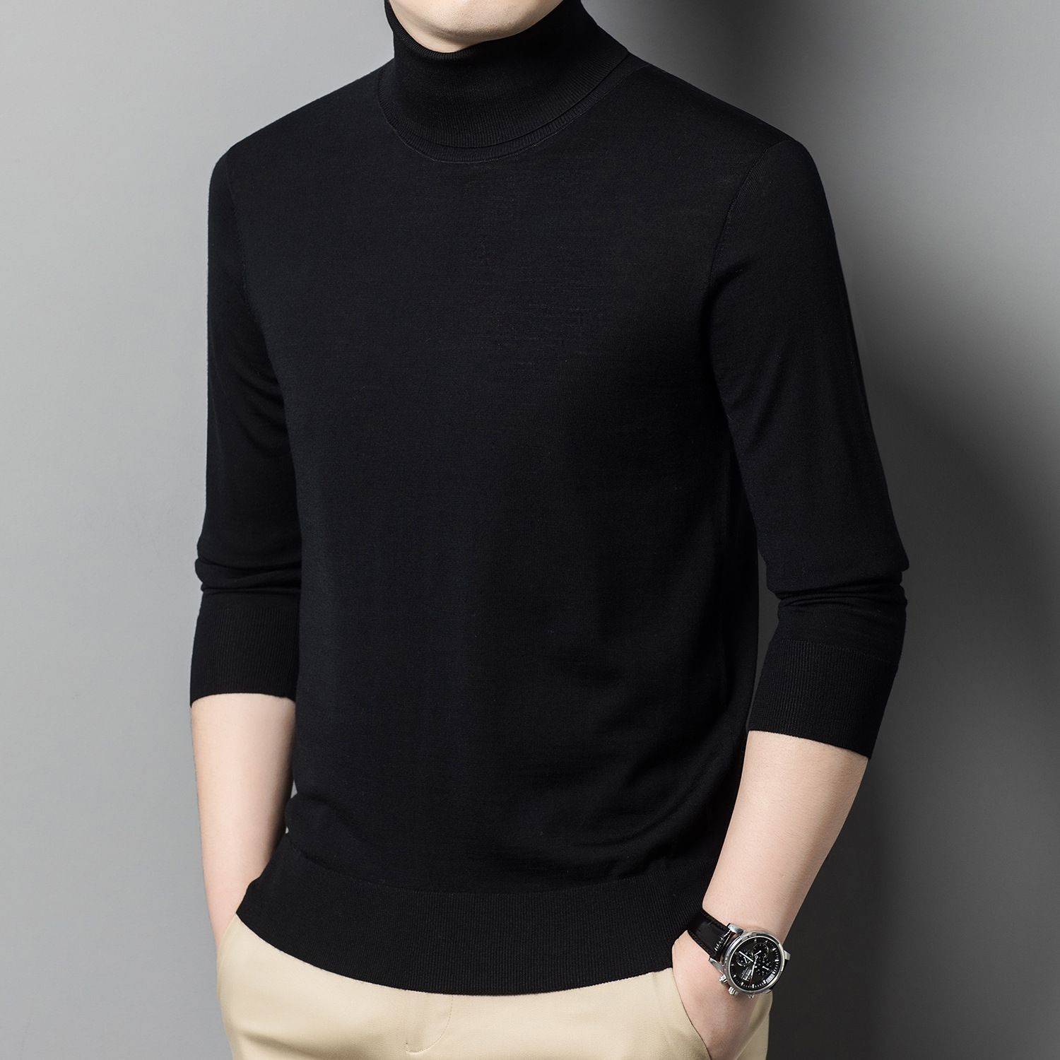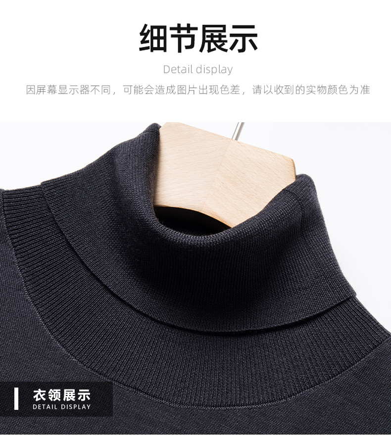 세탁기 사용 가능 고급 울 스웨터, 더블 라펠 남성용 100% 순모 긴팔 하이넥 니트 스웨터, 얇은 베이스 레이어 스웨터스토어 가기