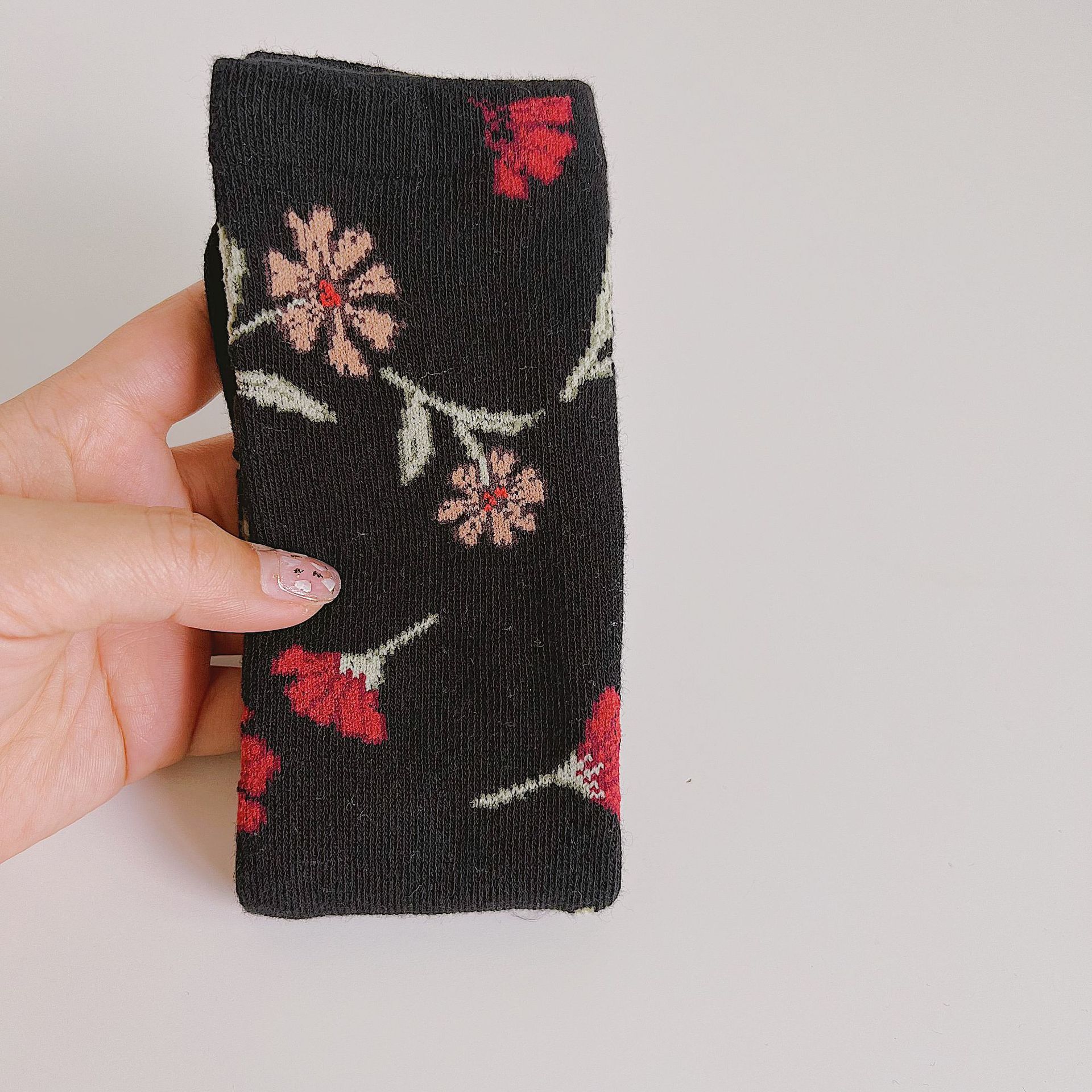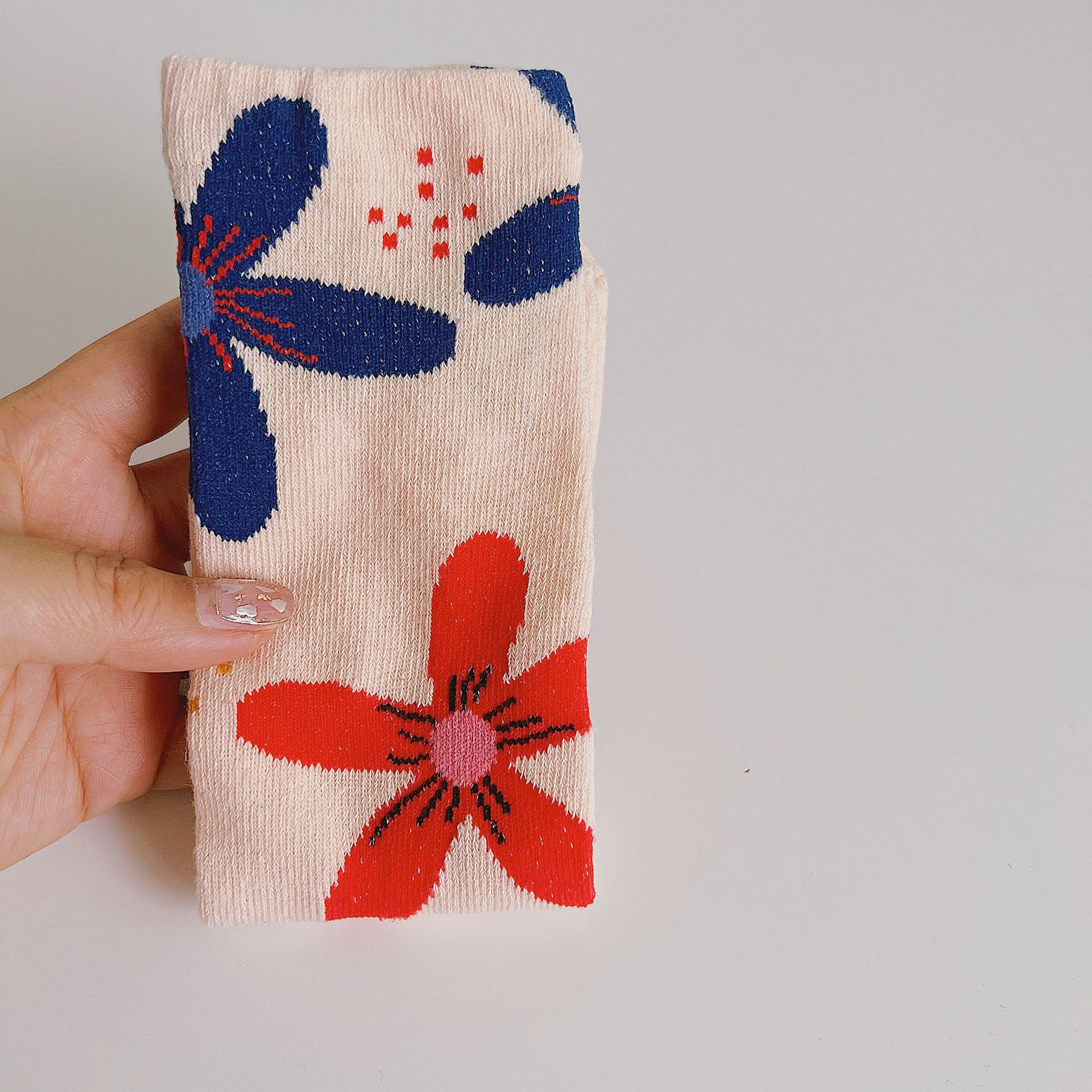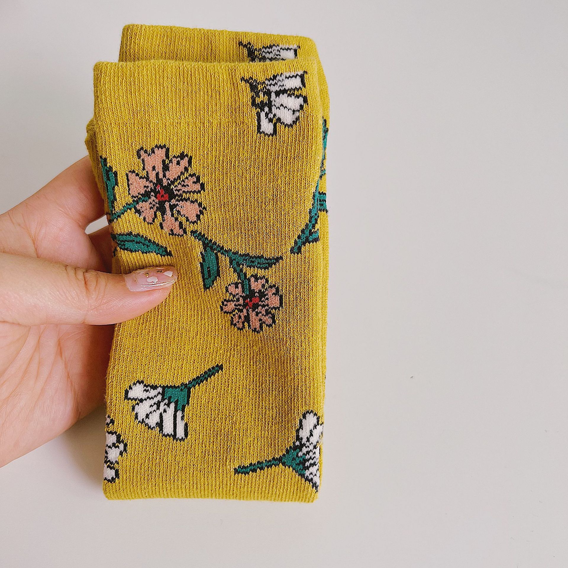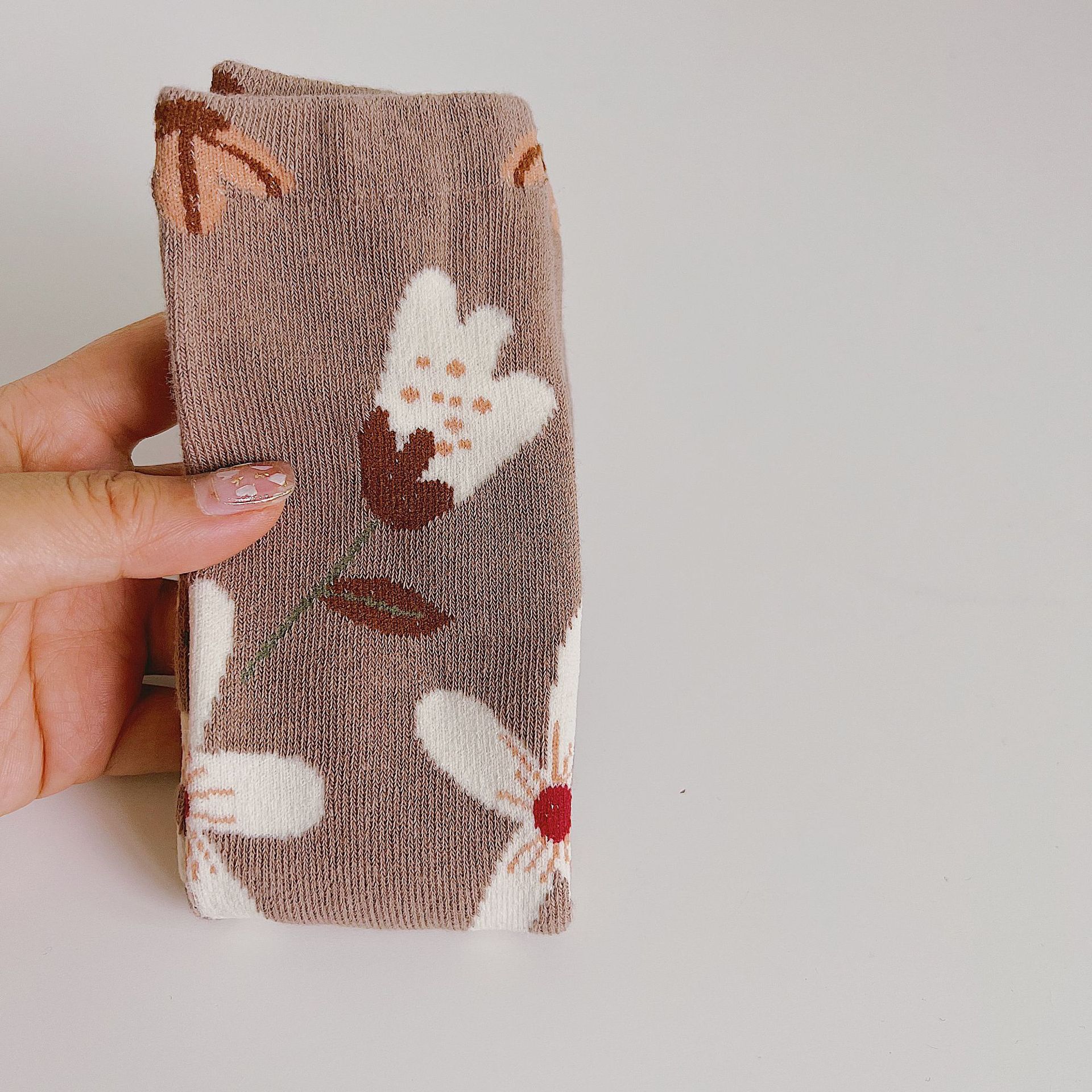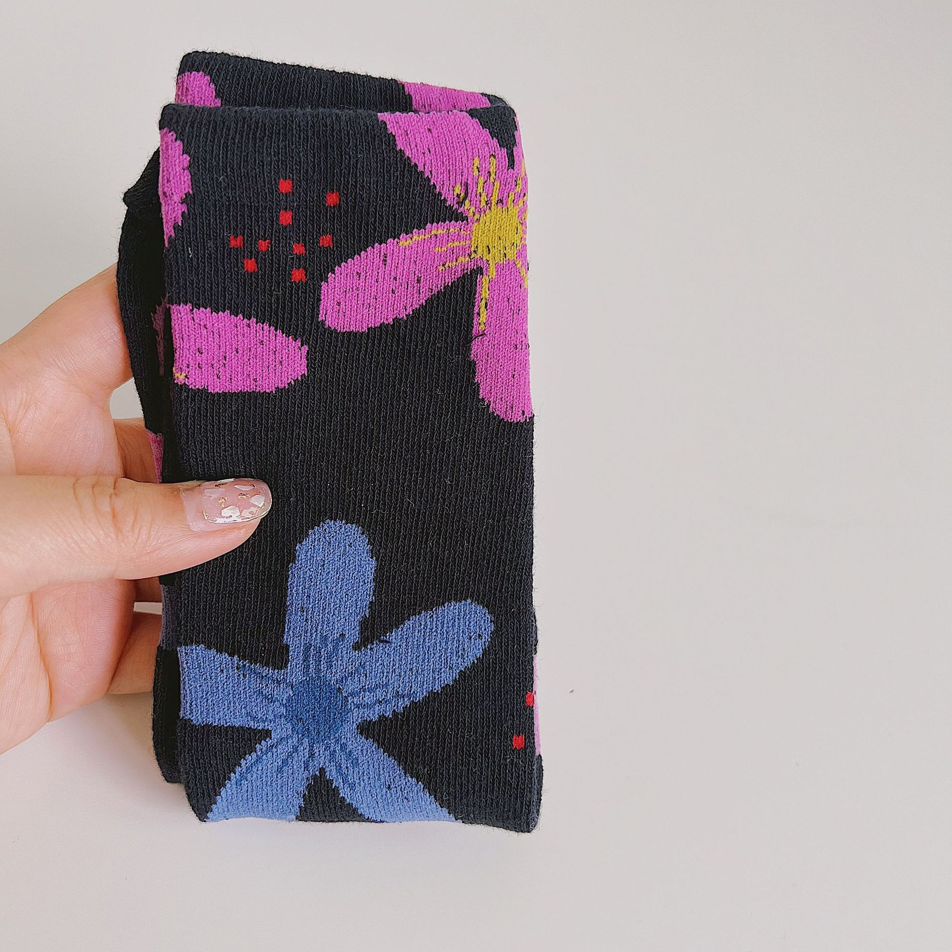 가을 새로운 목가적 스타일 다채로운 큰 꽃 어린이 양말 한국 컬러 매칭 소년 소녀 양말 프리 사이즈 중반 종아리 양말