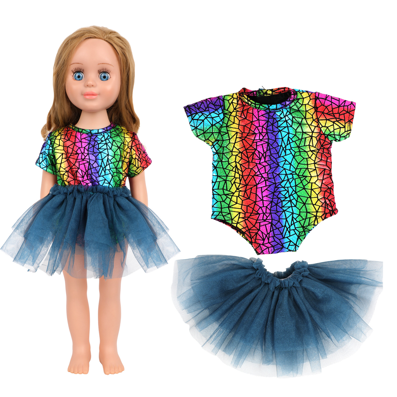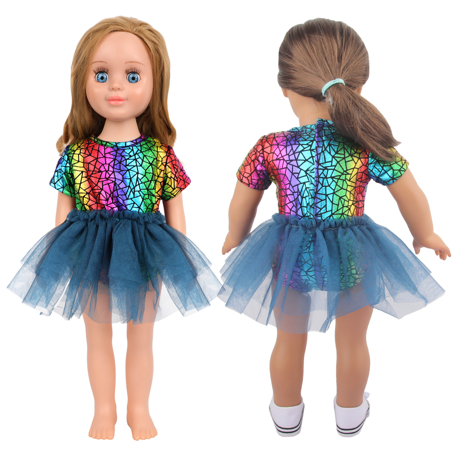 18 인치 미국 소녀 인형 옷 43CM xiafu 인형 세트 인형 반팔 무지개 티셔츠 한국식 티셔츠스토어 가기