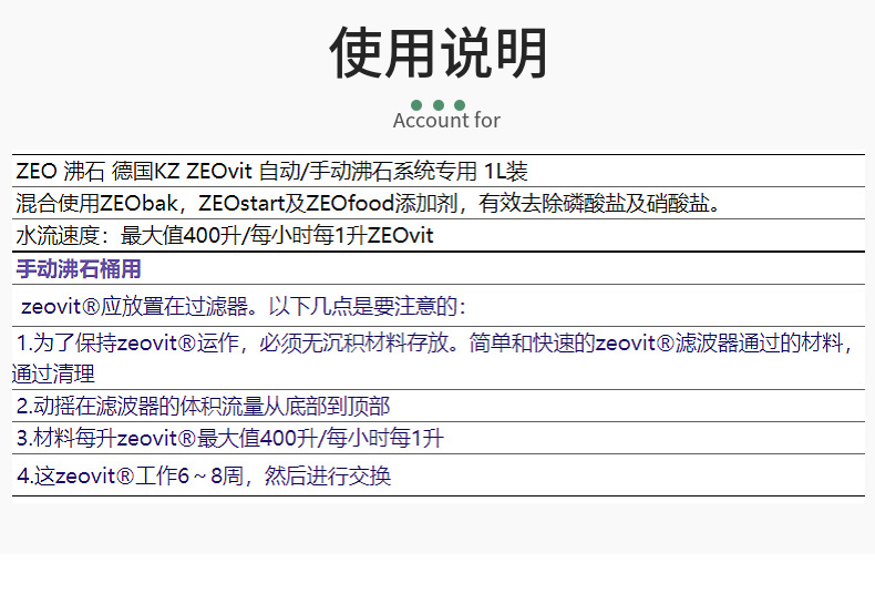 • 제올라이트 1000 ml/bag (새로운 중간 입자)