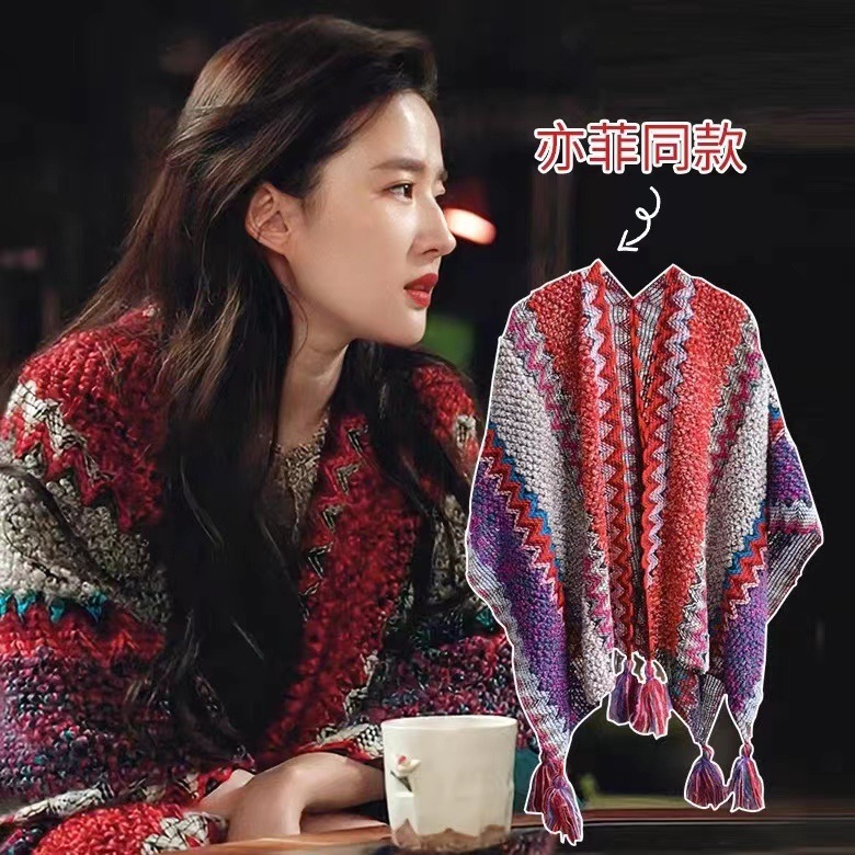 • 에스닉 스타일 목도리 레드 (Feifei와 같은 스타일)