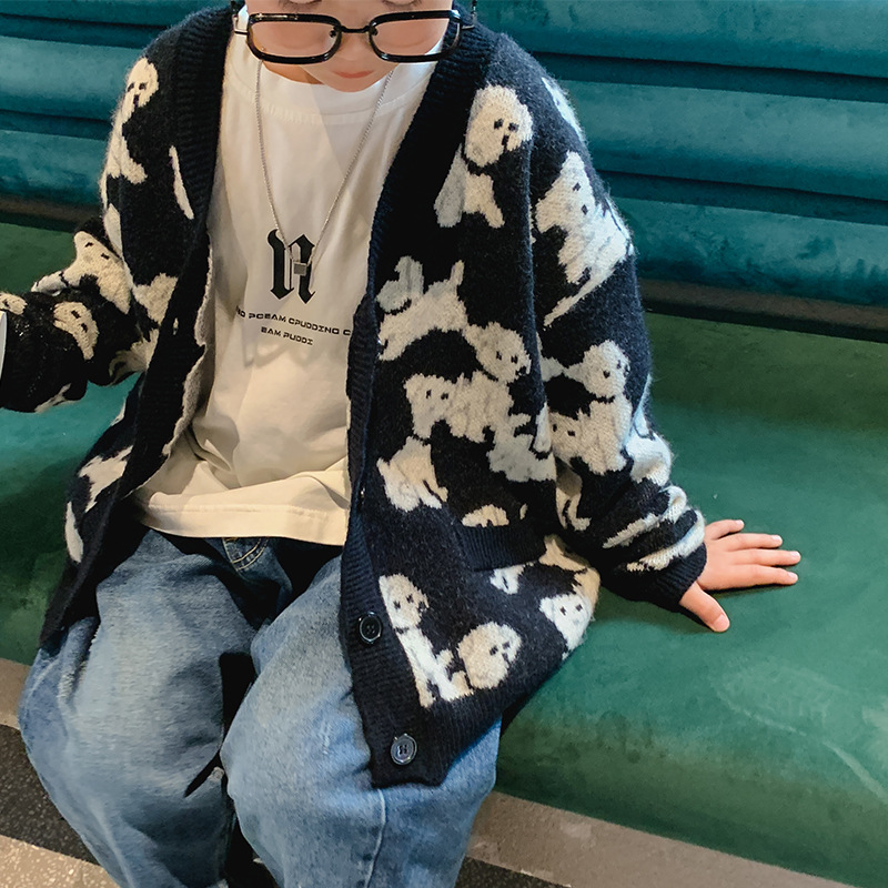 소년 스웨터 코트 봄과 가을 2022 새로운 한국 어린이 니트 가디건 어린이 스웨터 웨스턴 스타일 트렌디 탑