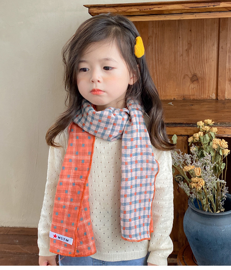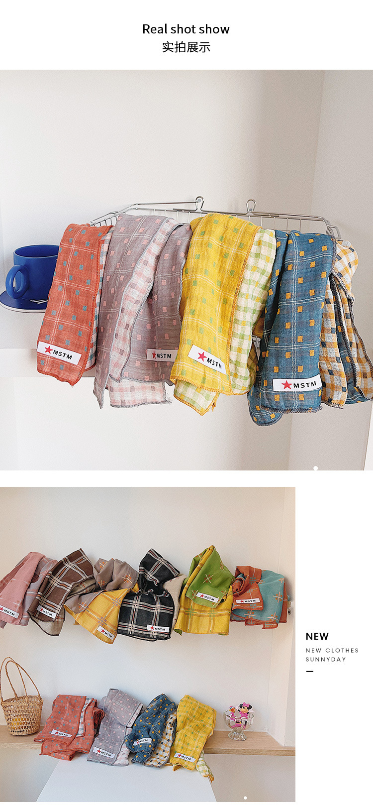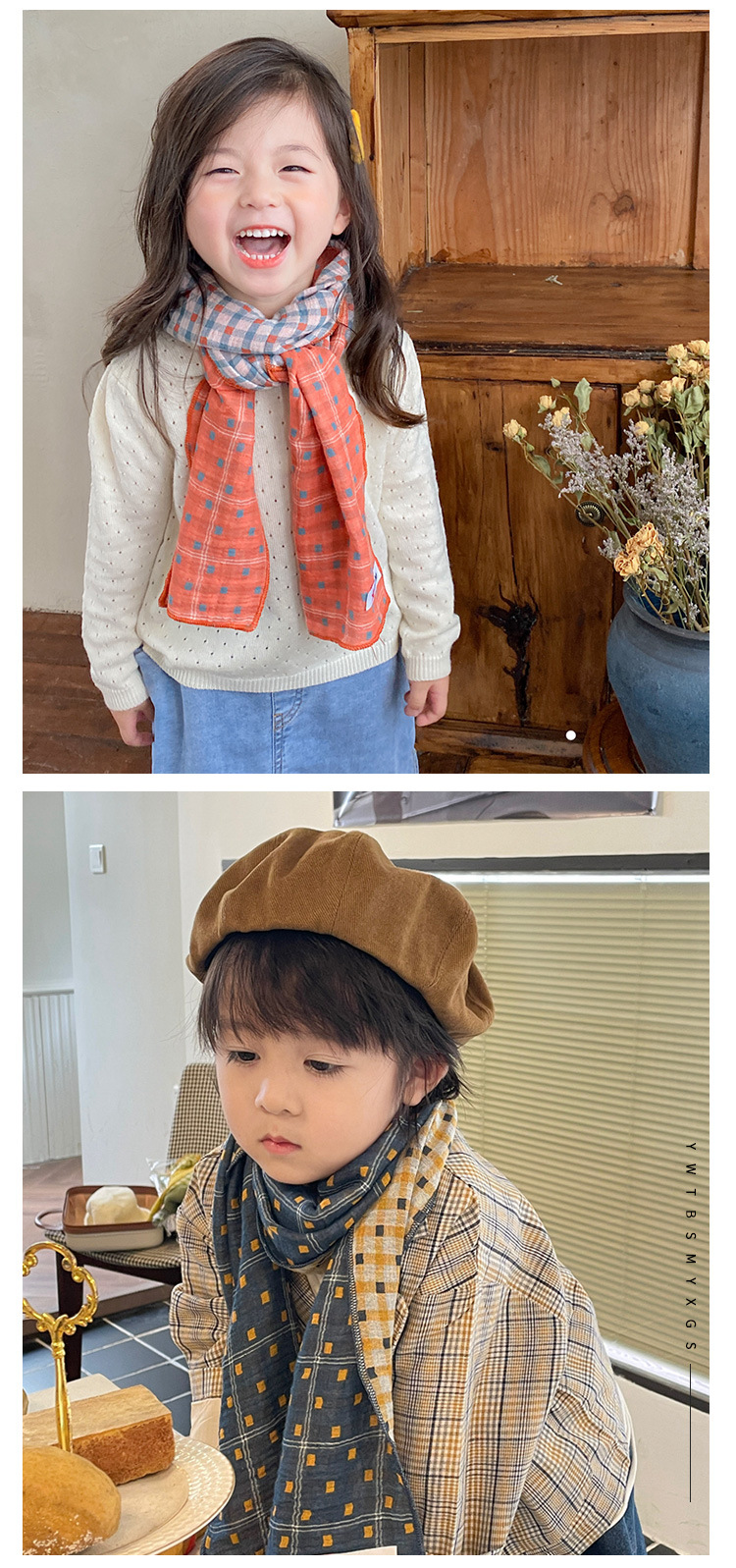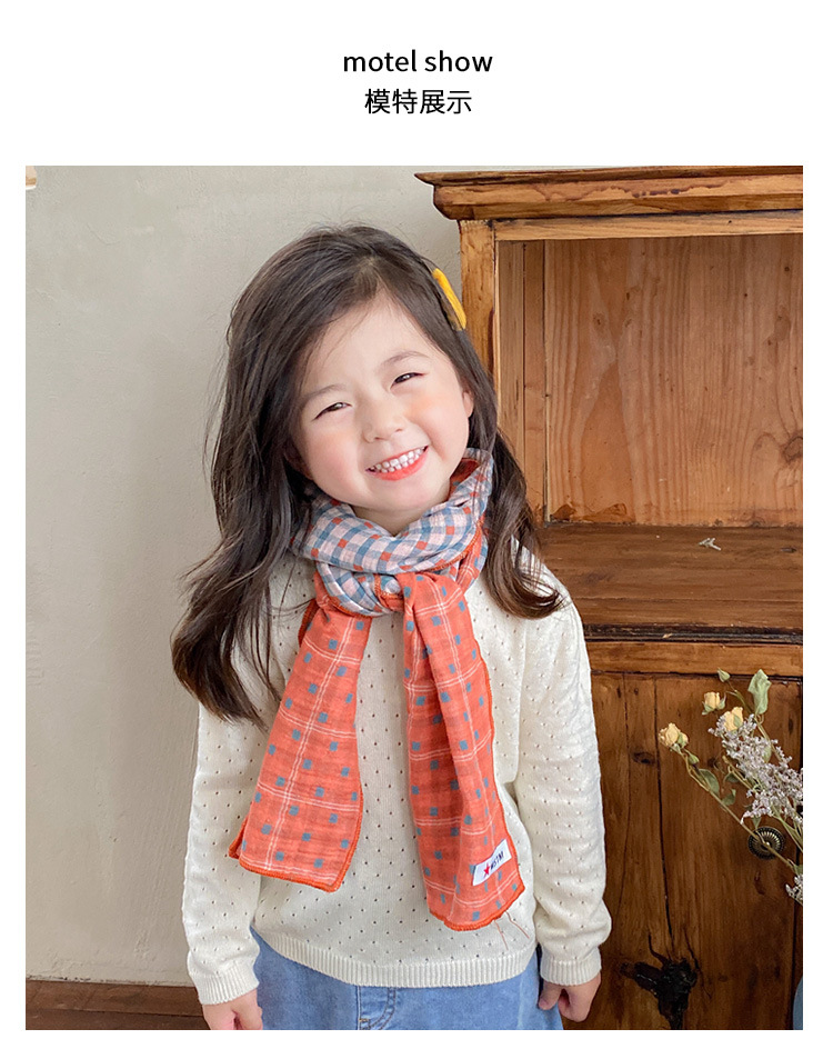 특가~ 어린이 봄 가을 얇은 면마 스카프 아기 방풍 거즈 스카프 남녀 아동 체크무늬 방풍 목도리 유아용