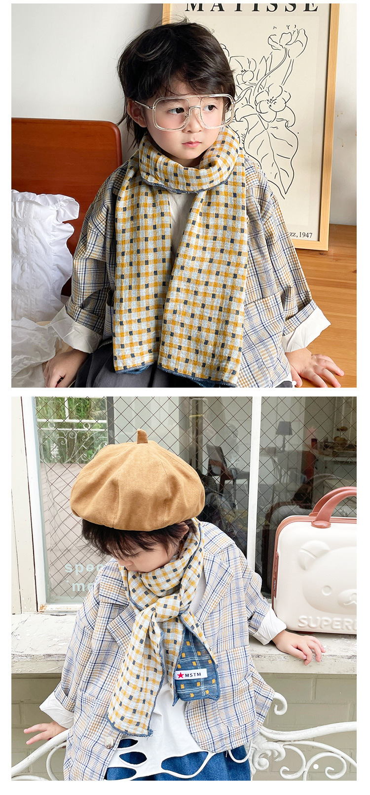 특가~ 어린이 봄 가을 얇은 면마 스카프 아기 방풍 거즈 스카프 남녀 아동 체크무늬 방풍 목도리 유아용스토어 가기