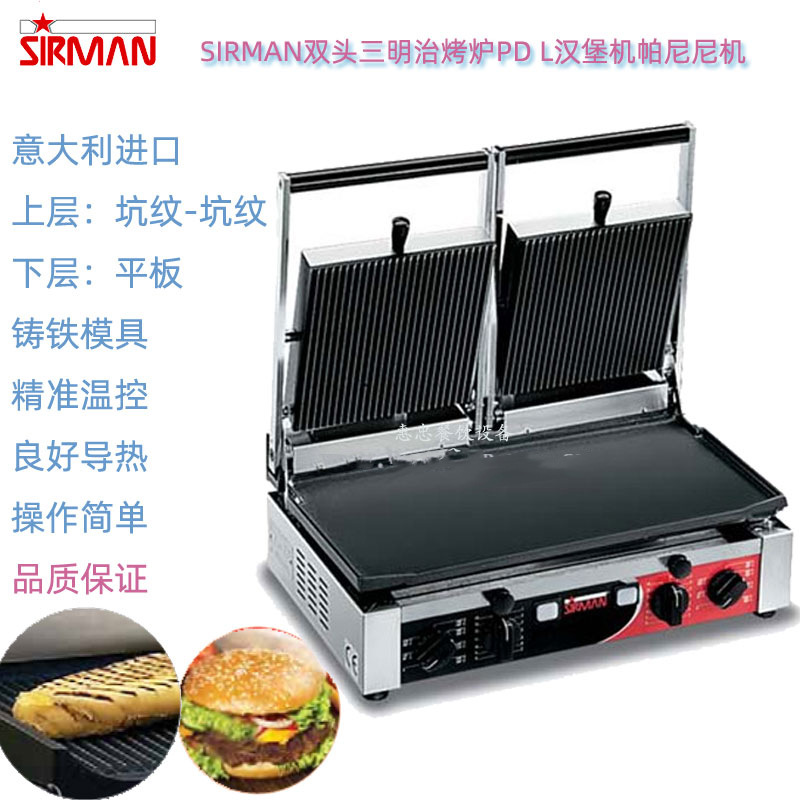 意大利SIRMAN舒文牌双头三明治烤炉PD L型上坑纹下平板汉堡机三明治机帕尼尼机