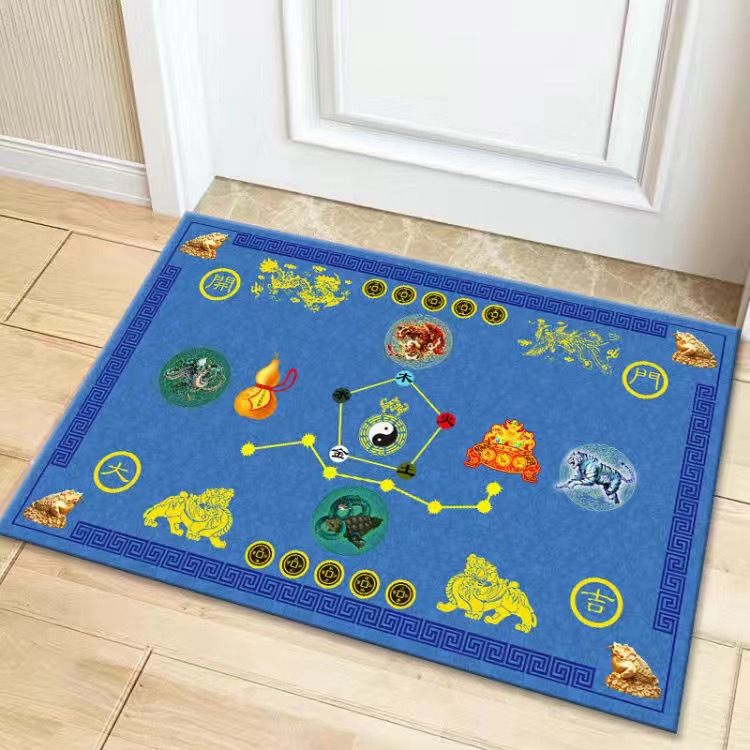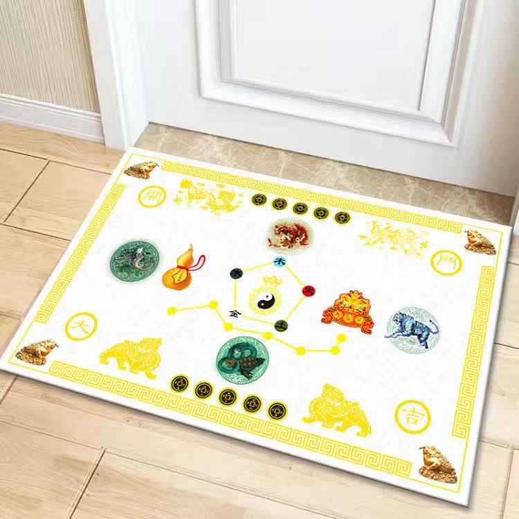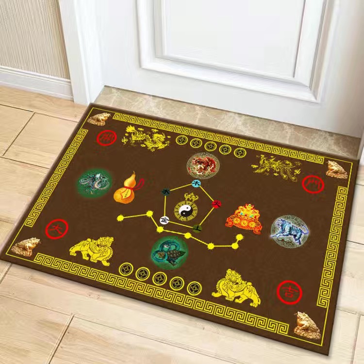 7 개의 별과 9 개의 게임 문 매트 새로운 태극권과 5 개의 요소 오픈 및 5 개의 황제 돈 전송 노란색 바닥 매트 행운의 신화 발 매트스토어 가기