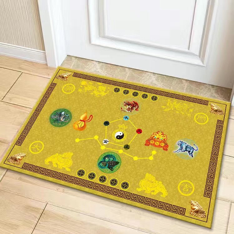 7 개의 별과 9 개의 게임 문 매트 새로운 태극권과 5 개의 요소 오픈 및 5 개의 황제 돈 전송 노란색 바닥 매트 행운의 신화 발 매트