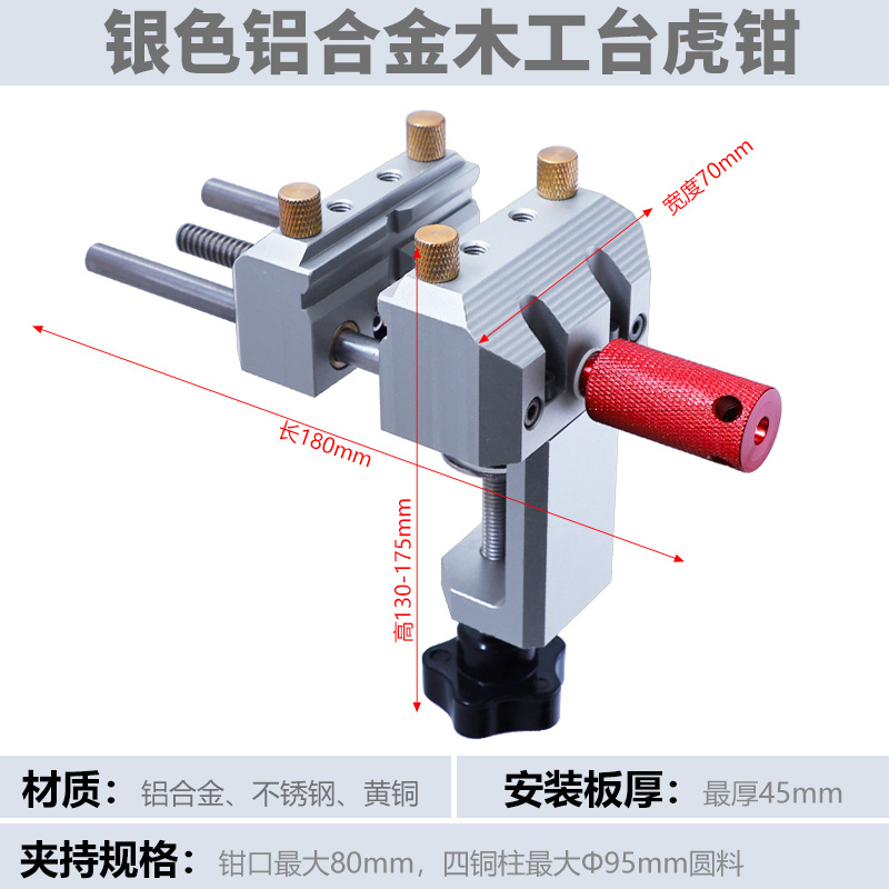 本品为CNC数控精加工,铝合金材质,设计巧妙,易于安装调节,可夹持不同形状的物件,广泛用于家用木工工作台,起固定锁紧的作用。