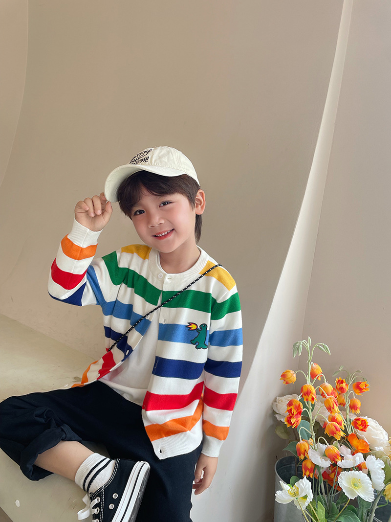 남자 아동복 가을 무지개 줄무늬 긴 소매 티셔츠 어린이 부드러운 소녀 티셔츠 탑 스웨터 카디건 니트 폴로스토어 가기
