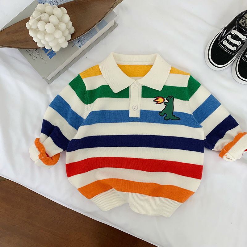 남자 아동복 가을 무지개 줄무늬 긴 소매 티셔츠 어린이 부드러운 소녀 티셔츠 탑 스웨터 카디건 니트 폴로
