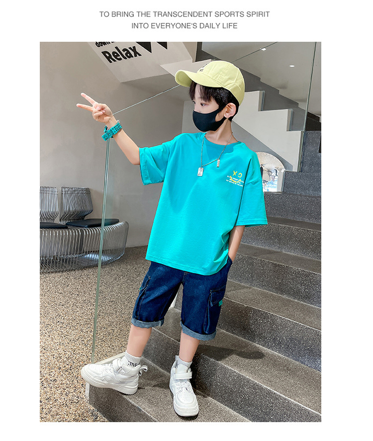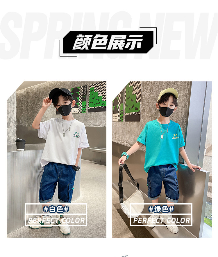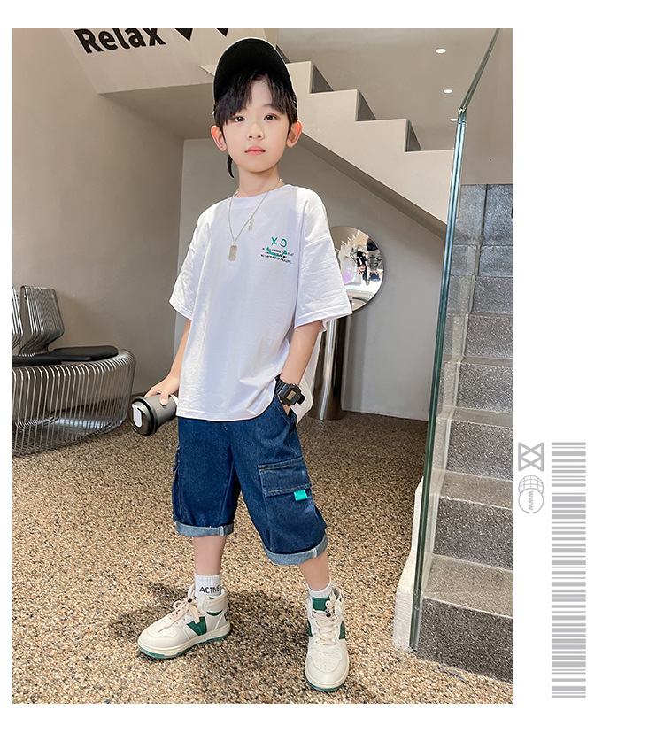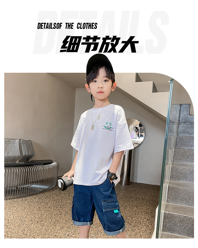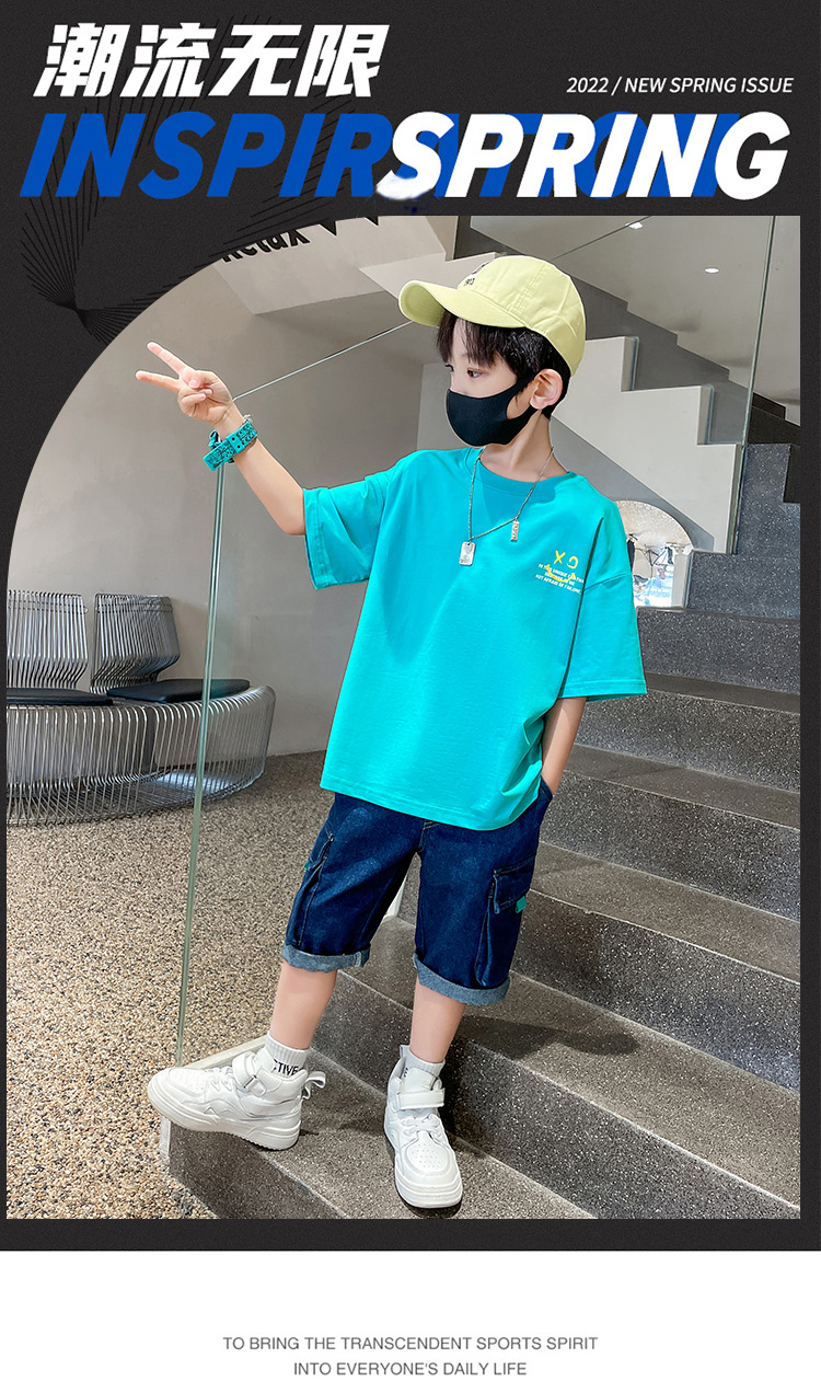 큰 어린이를 위한 Xia Chao 브랜드 베이스 셔츠, 소년 소녀 면 아기 반팔 티셔츠 만화 멋진 반팔 탑