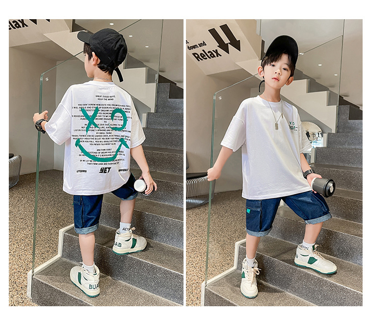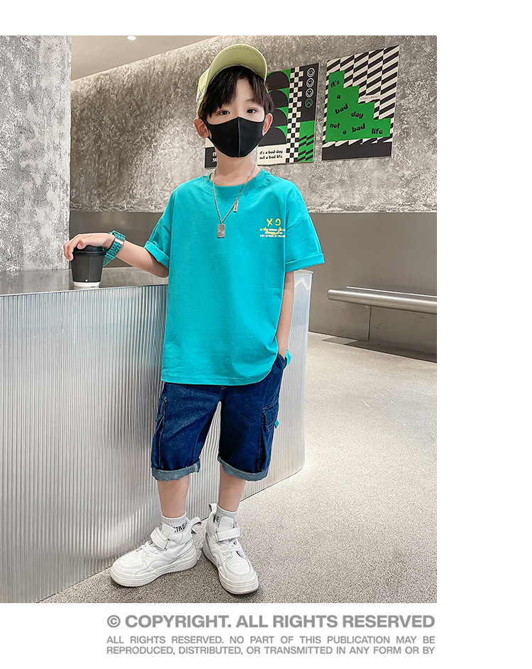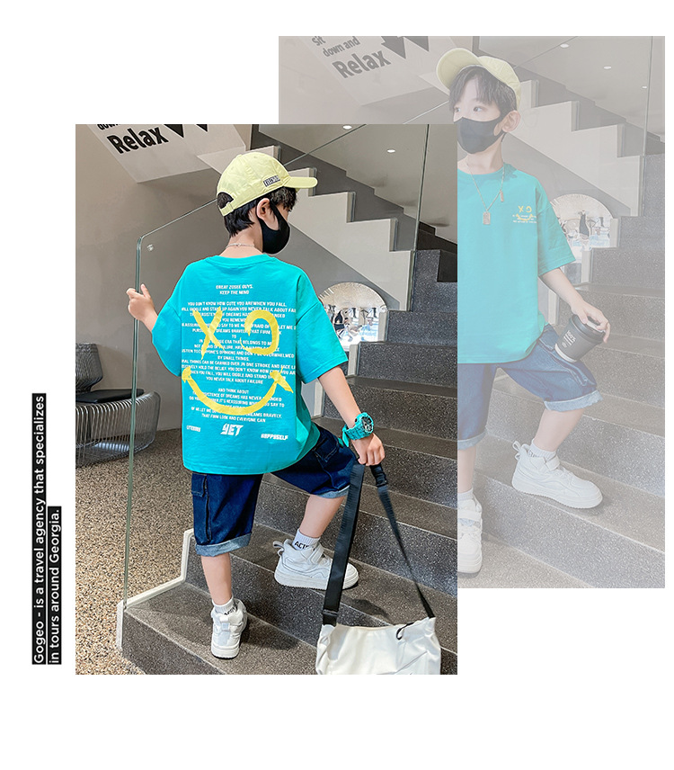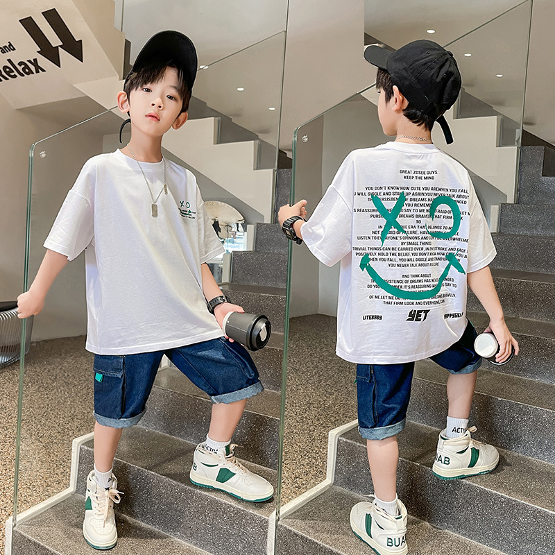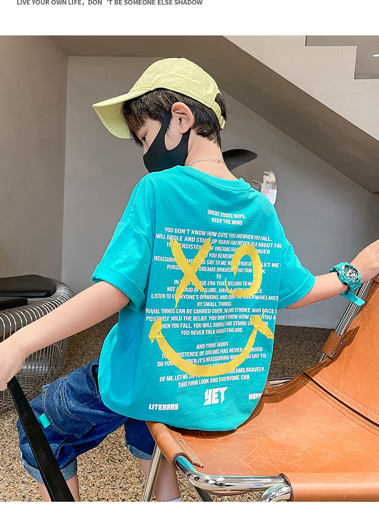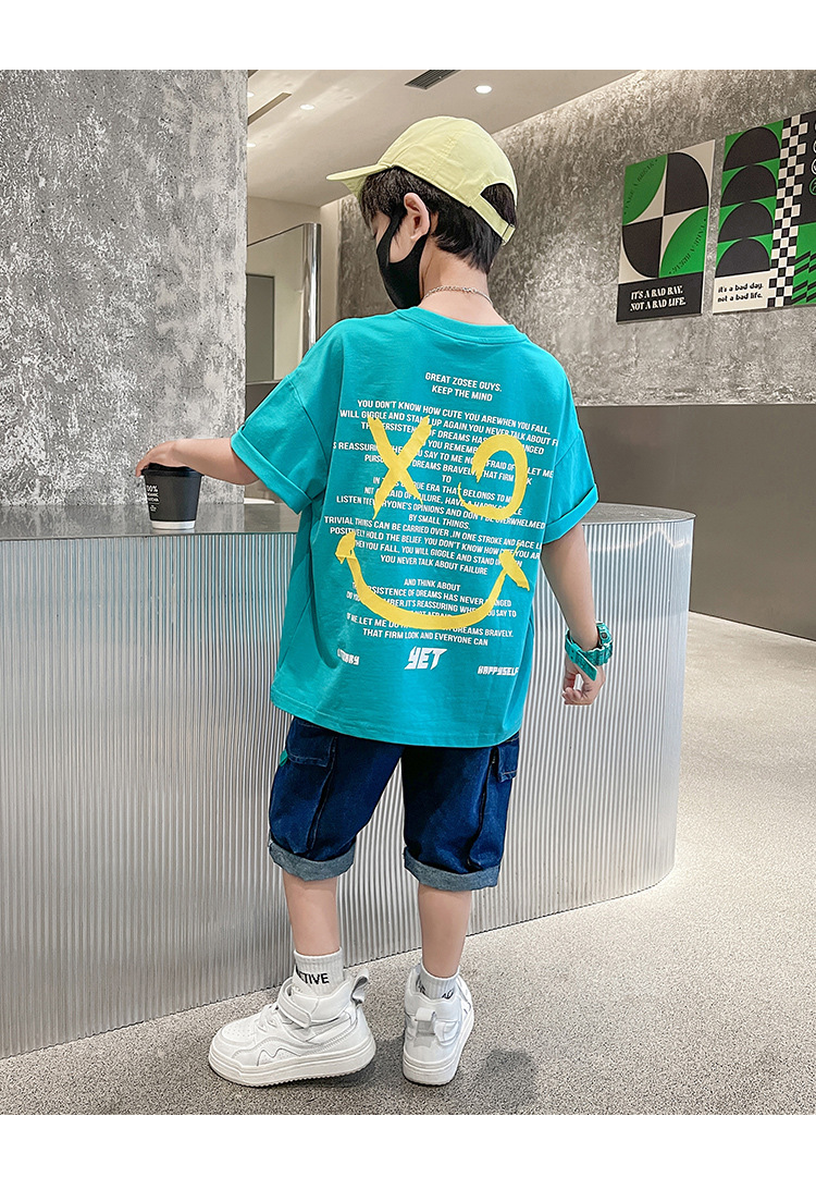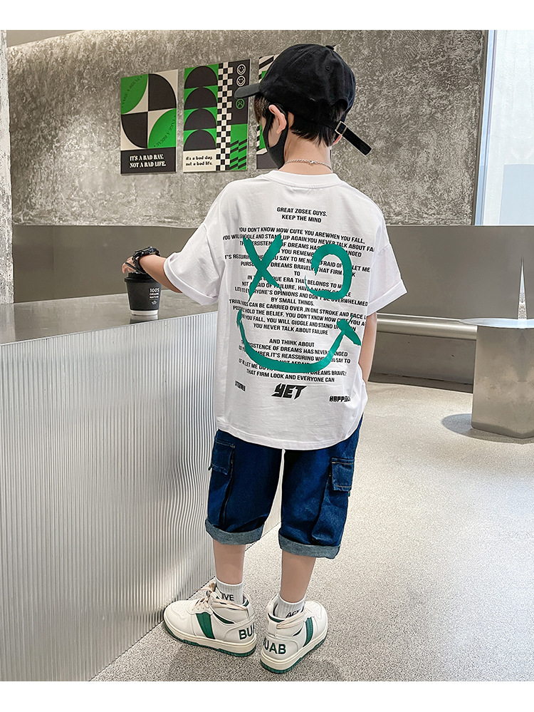 큰 어린이를 위한 Xia Chao 브랜드 베이스 셔츠, 소년 소녀 면 아기 반팔 티셔츠 만화 멋진 반팔 탑스토어 가기