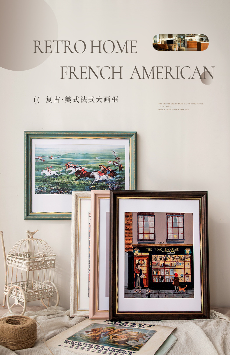 대형 액자 미국 복고풍 프레임 사진 프레임 벽 20 인치 16 인치 18 인치 4 오픈 8K A3 오일 액자 장착스토어 가기