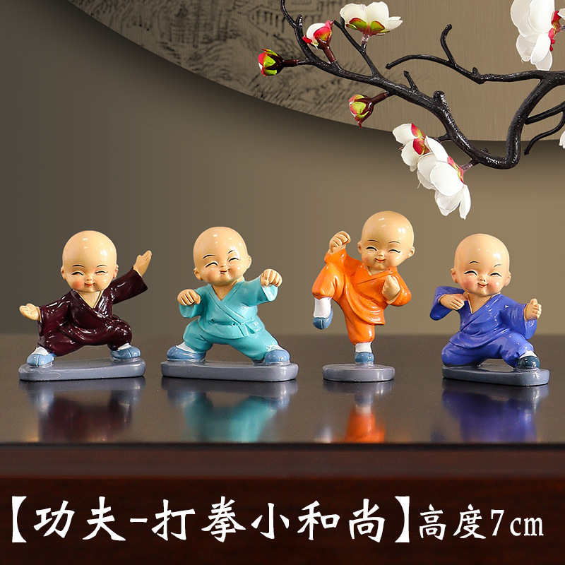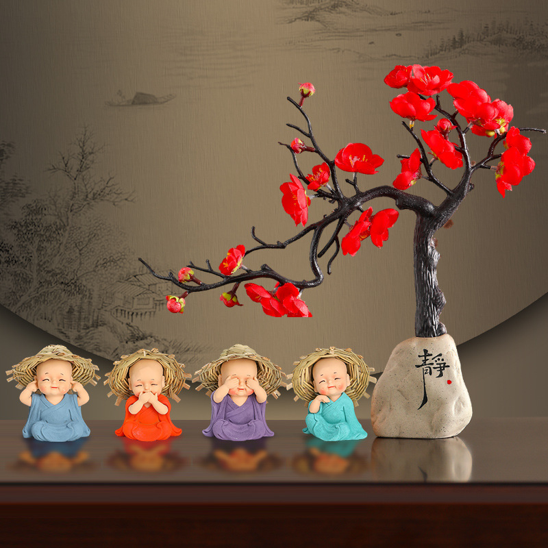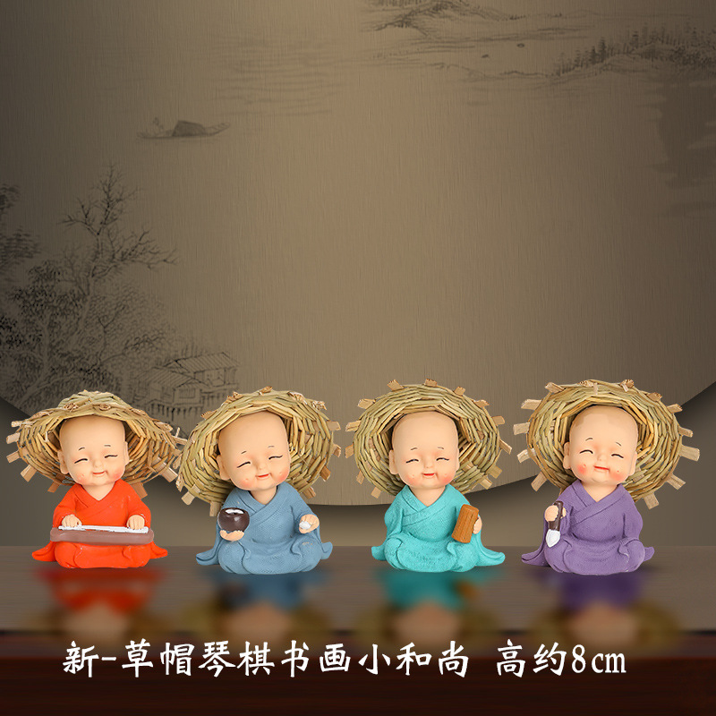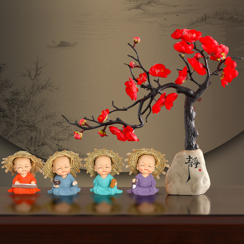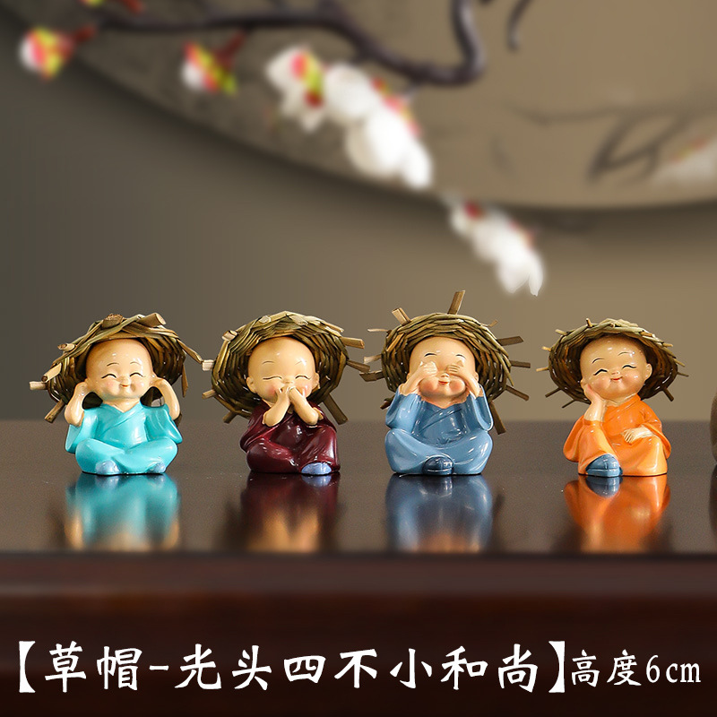 새로운 중국 선 네 작은 승려 가정 장식 장식 작은 승려 인형 사무실 데스크탑 작은 장식