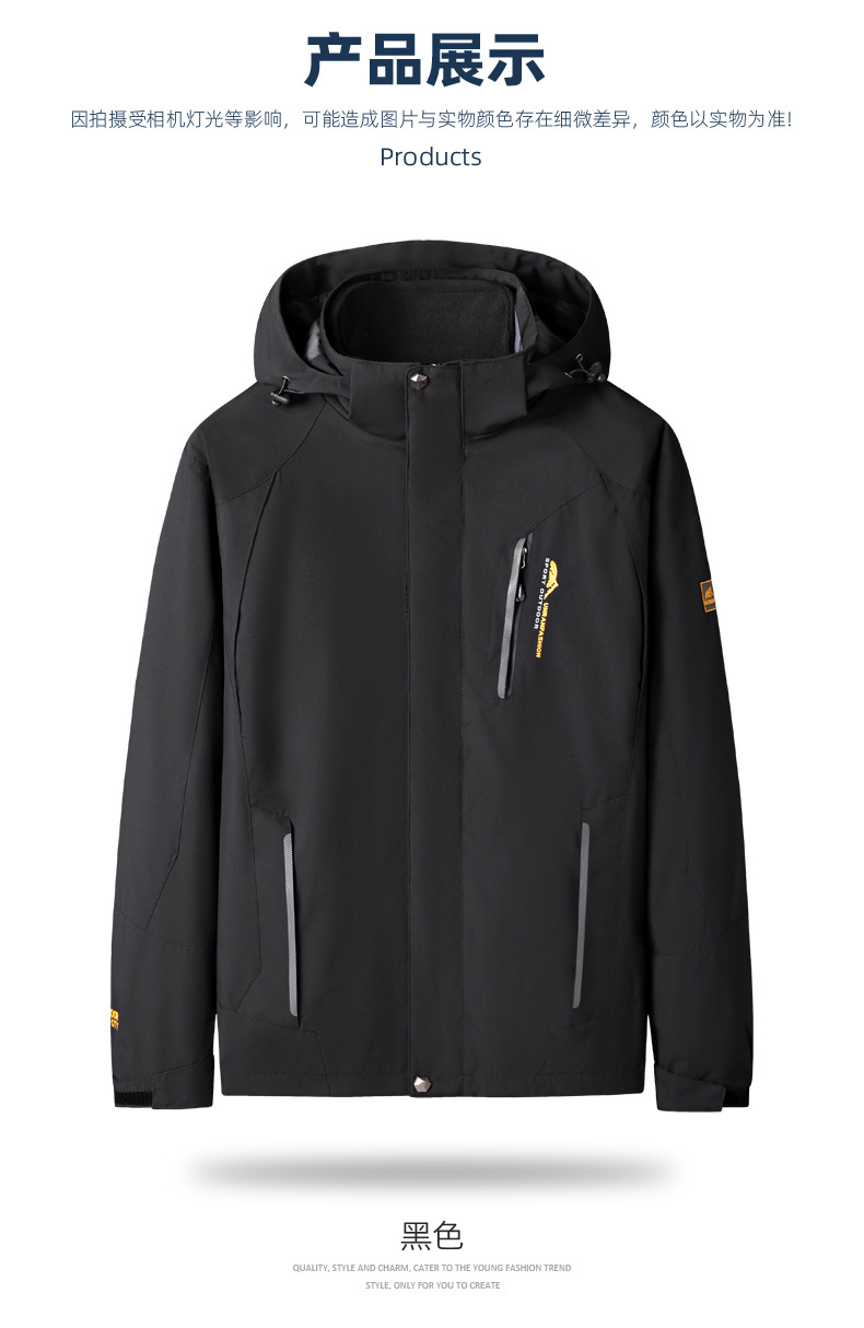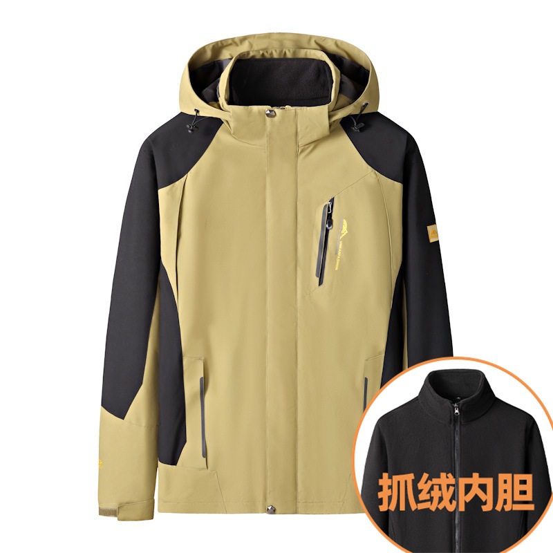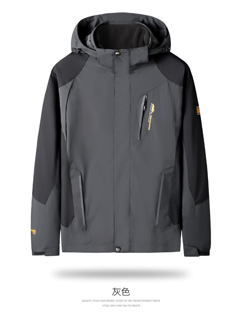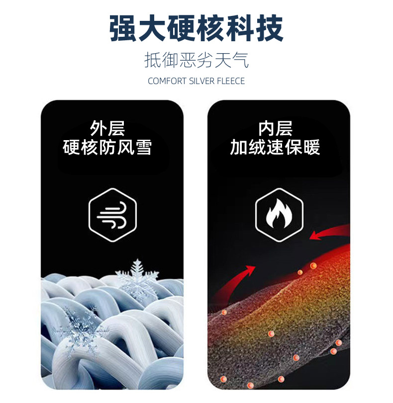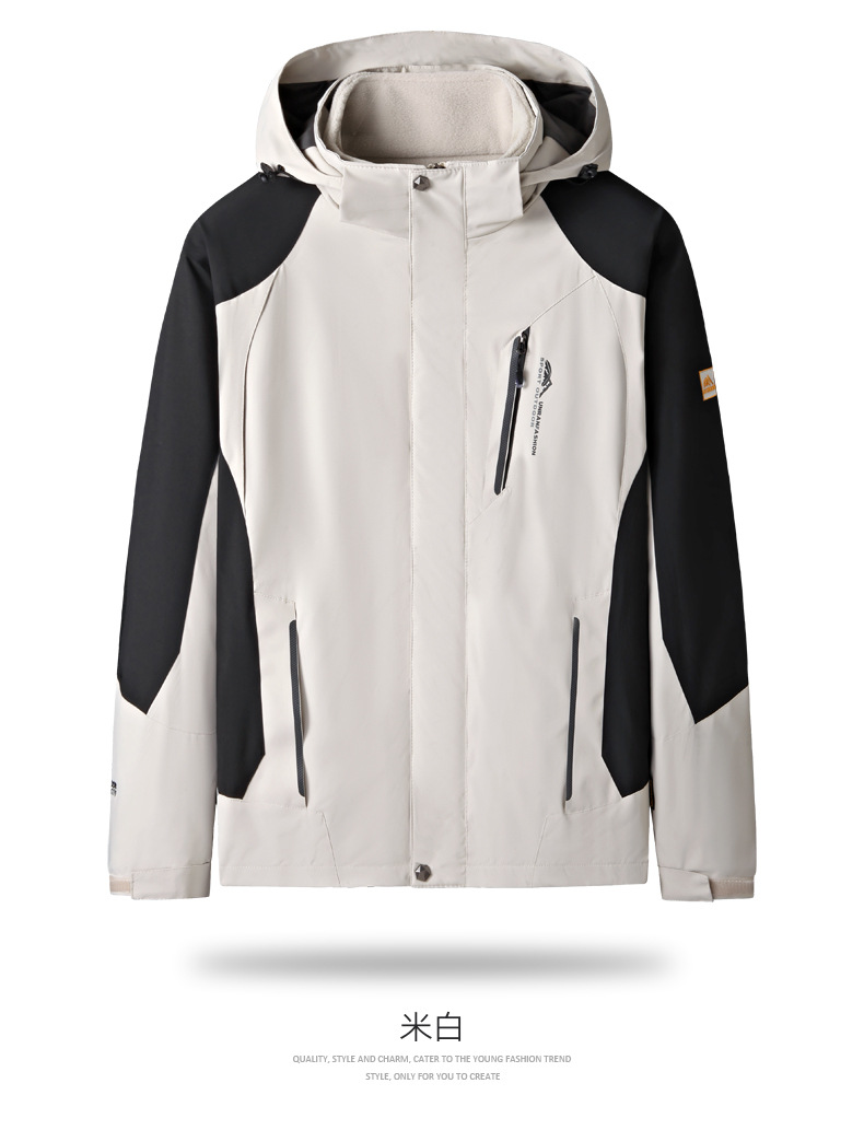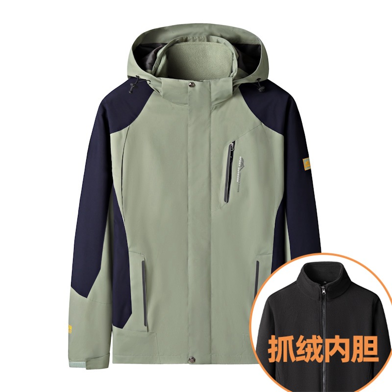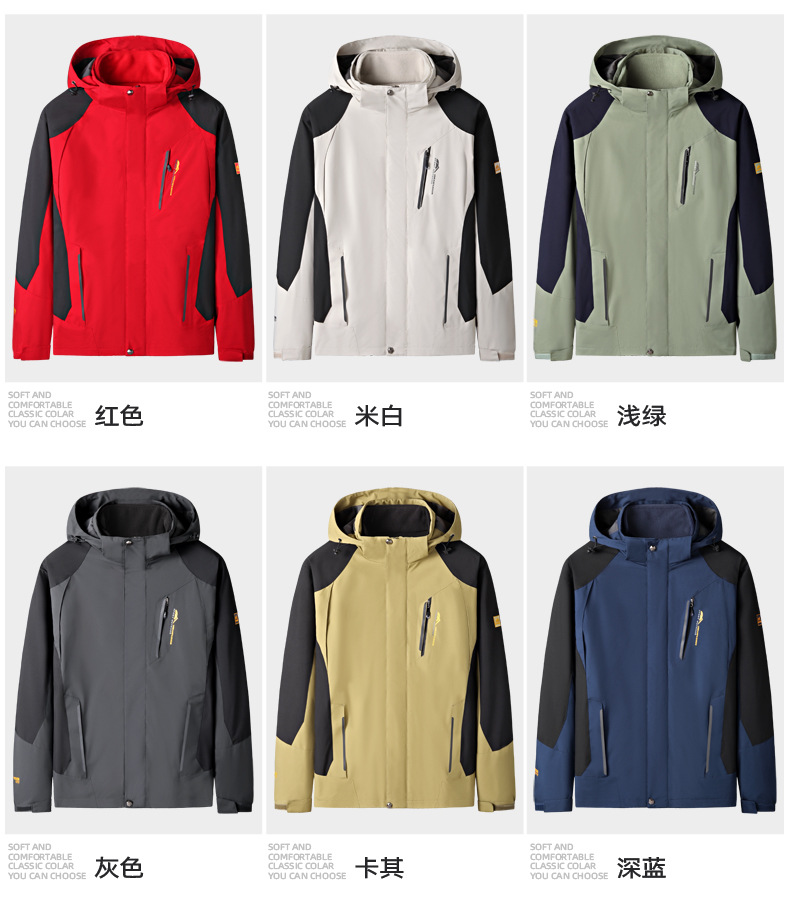 2024 가을과 겨울 남자 스포츠 야외 등산 세트 수직 칼라와 후드가있는 두꺼운 따뜻한 투피스 세트