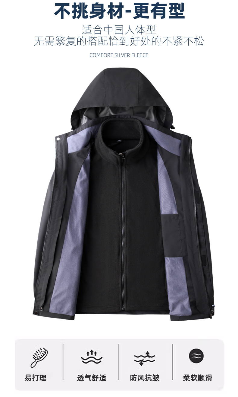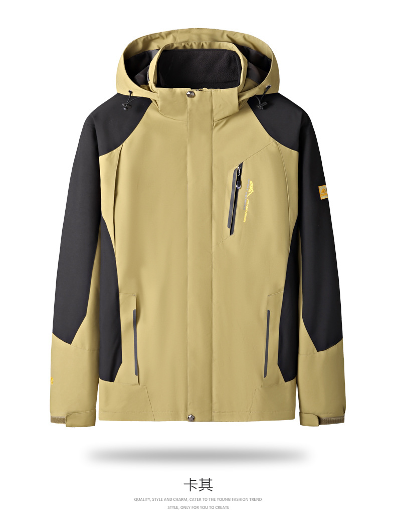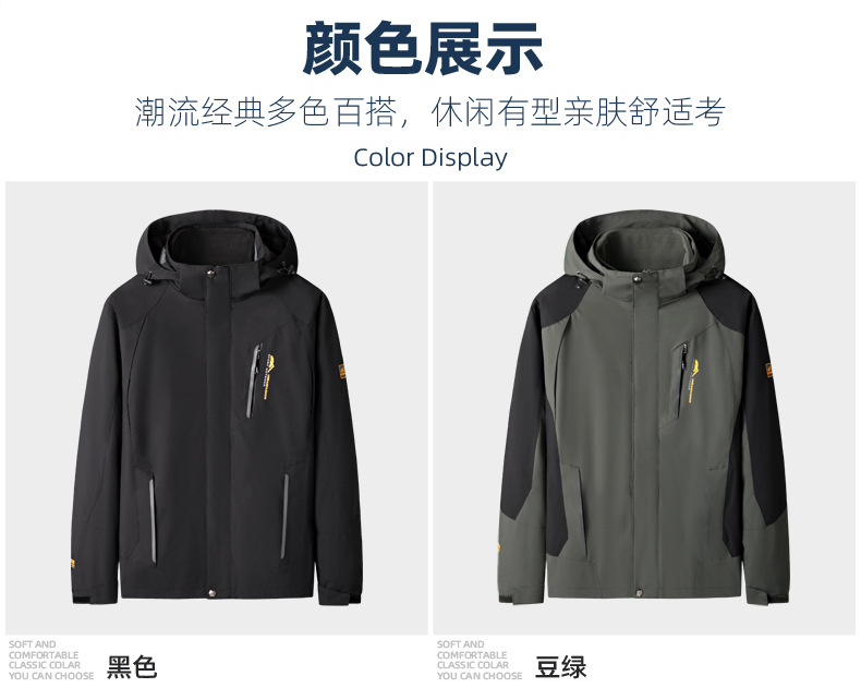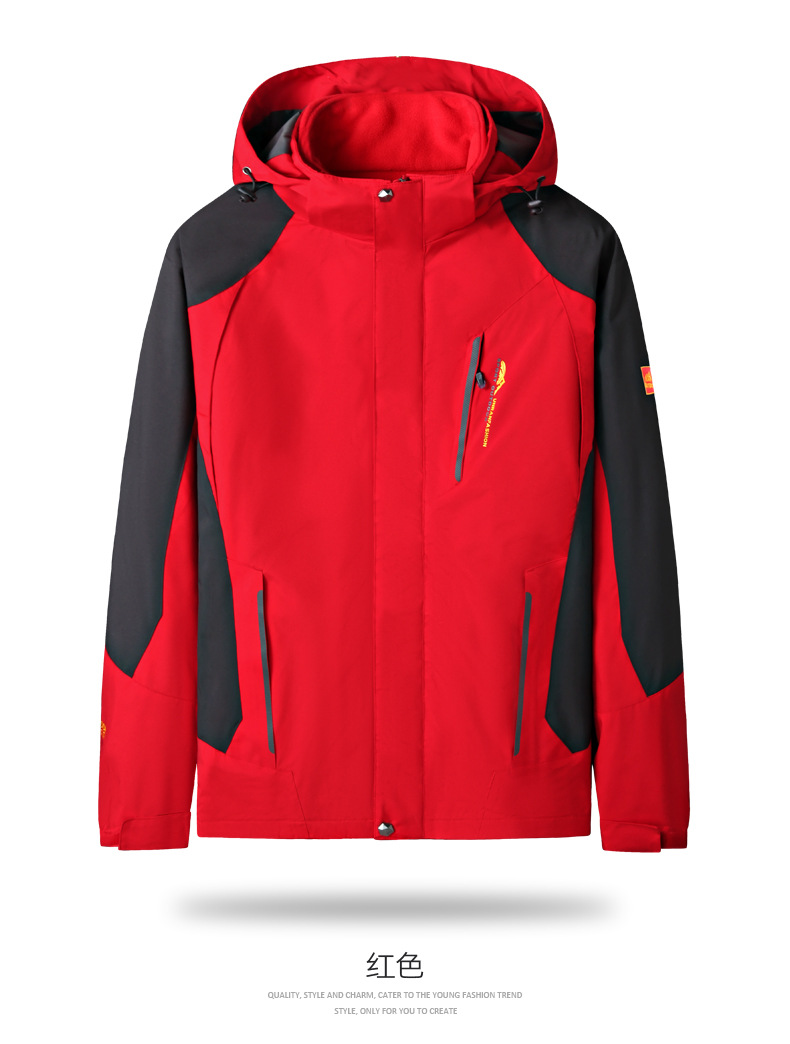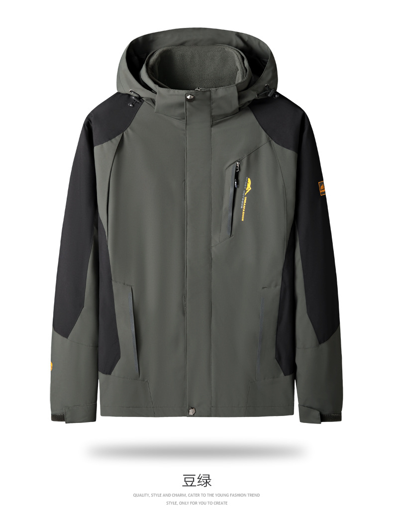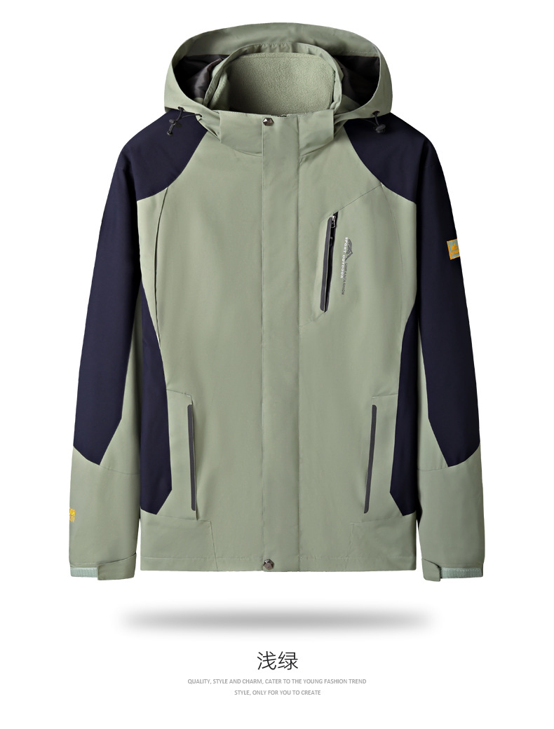 2024 가을과 겨울 남자 스포츠 야외 등산 세트 수직 칼라와 후드가있는 두꺼운 따뜻한 투피스 세트