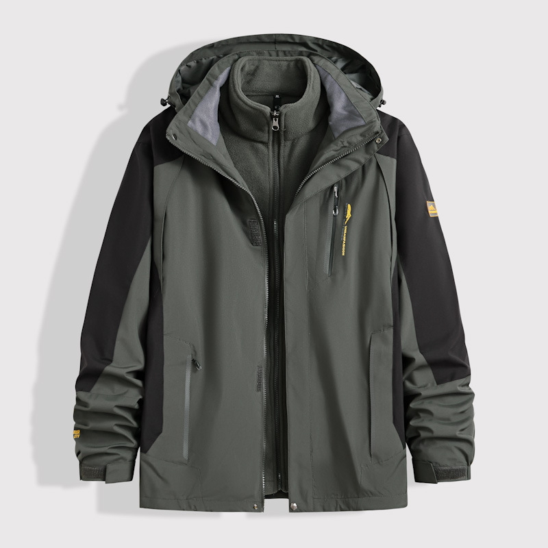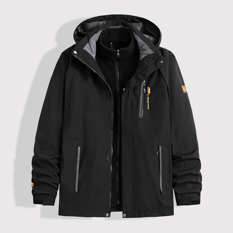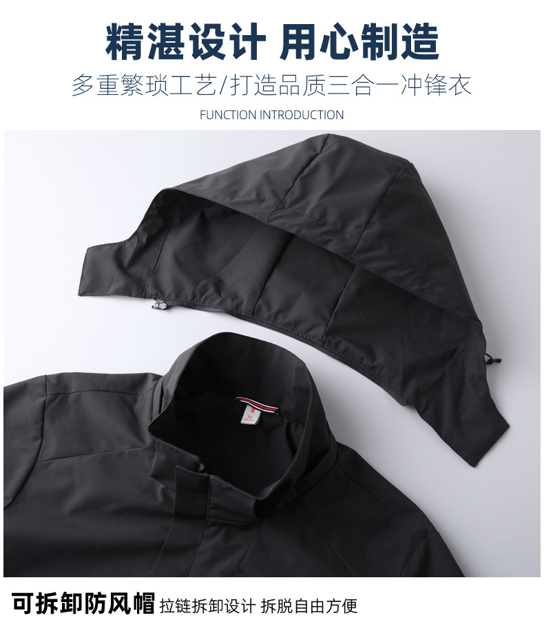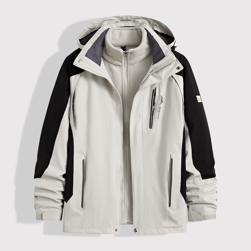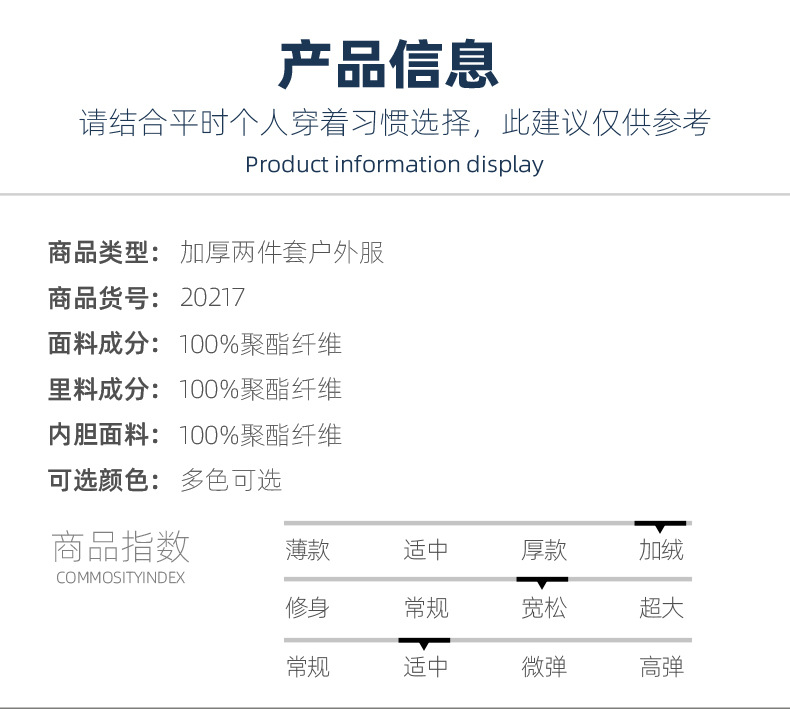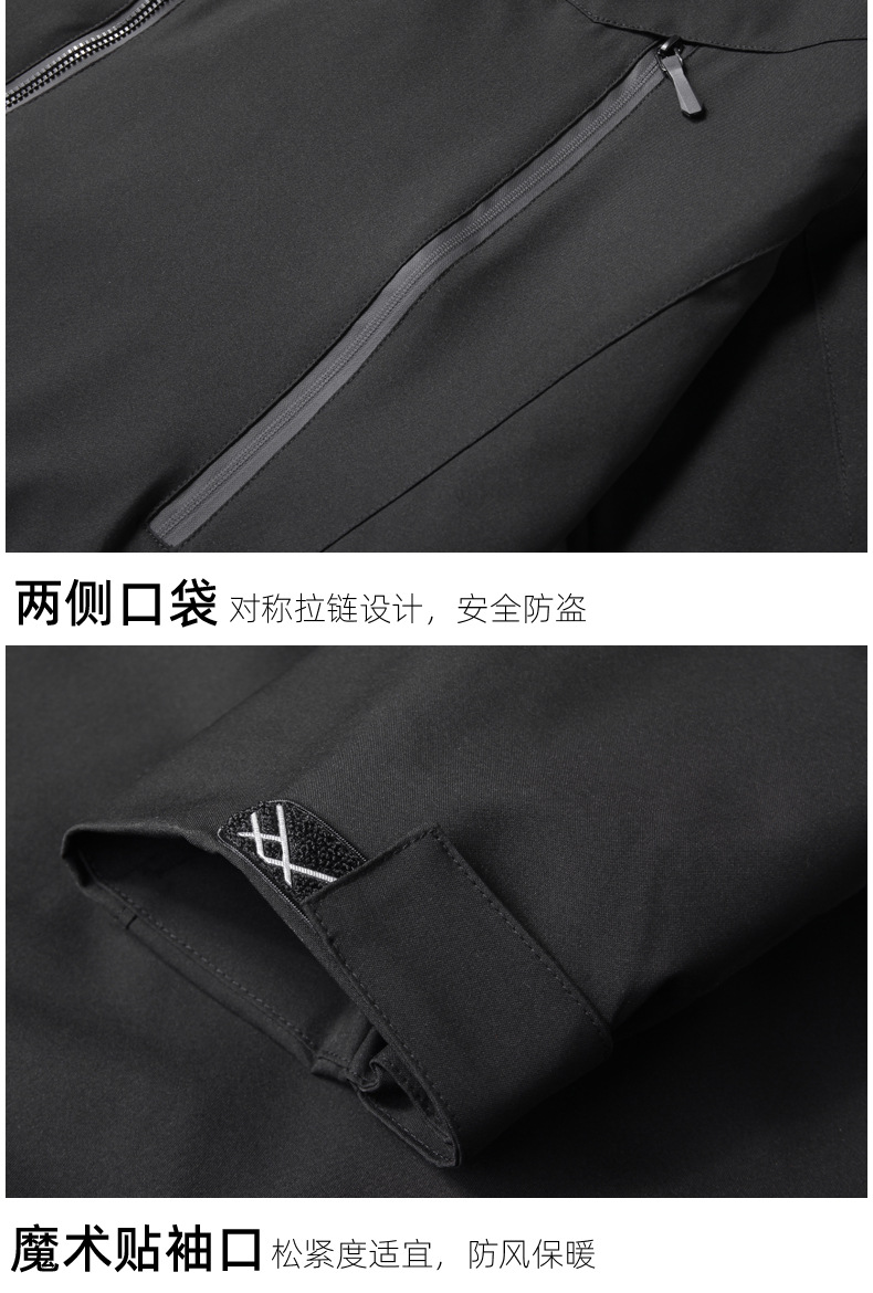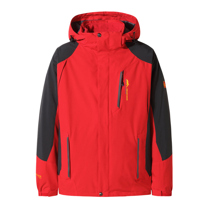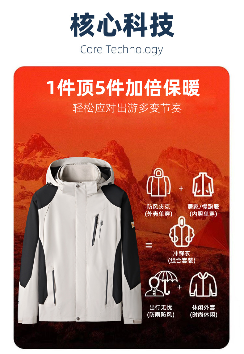 2024 가을과 겨울 남자 스포츠 야외 등산 세트 수직 칼라와 후드가있는 두꺼운 따뜻한 투피스 세트