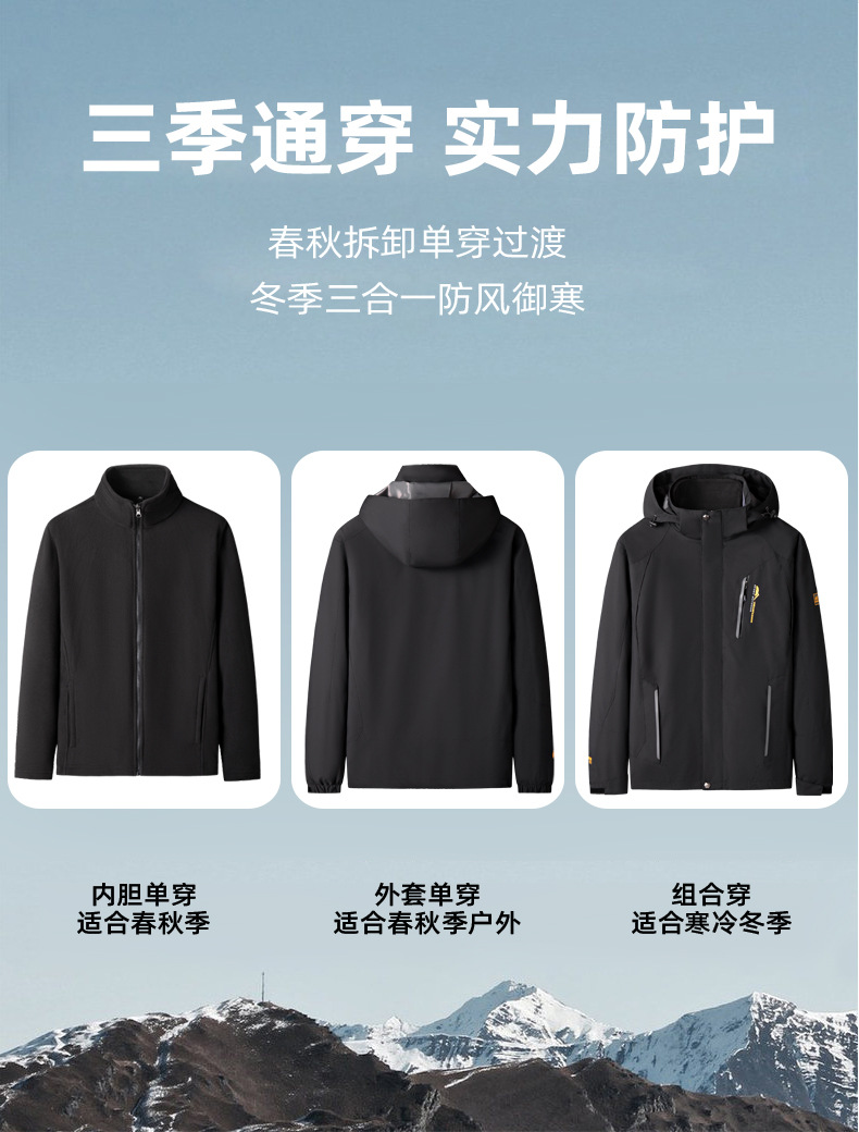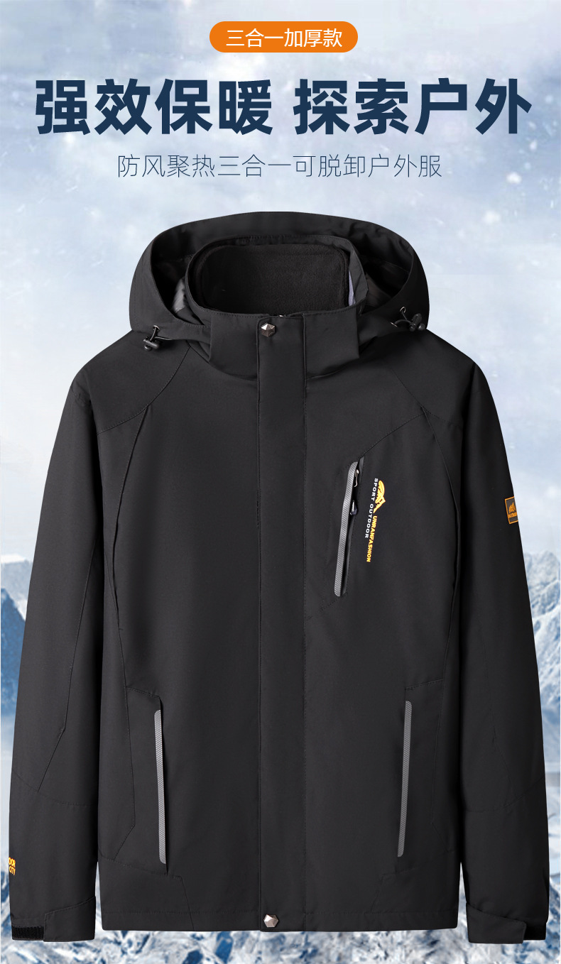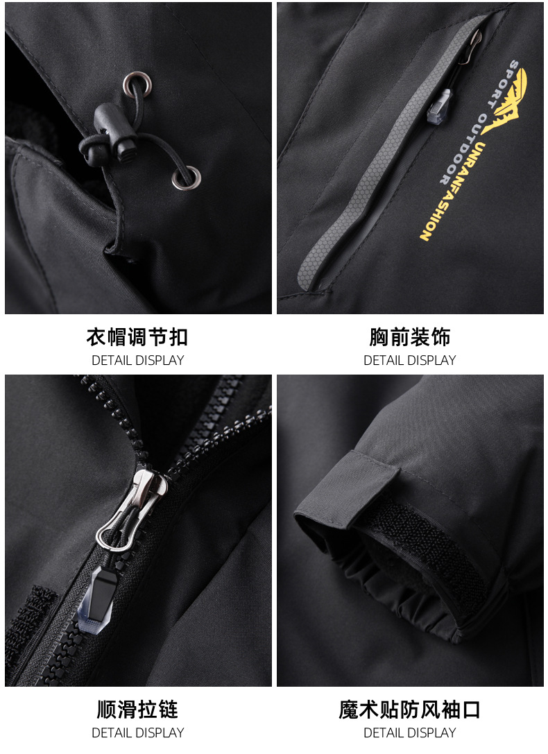 2024 가을과 겨울 남자 스포츠 야외 등산 세트 수직 칼라와 후드가있는 두꺼운 따뜻한 투피스 세트스토어 가기