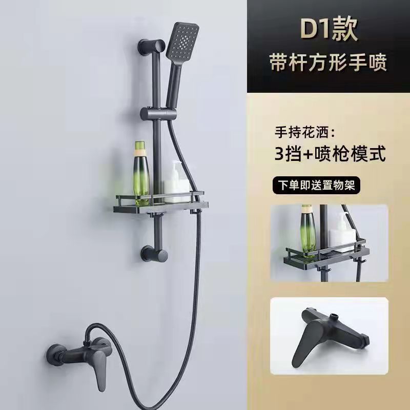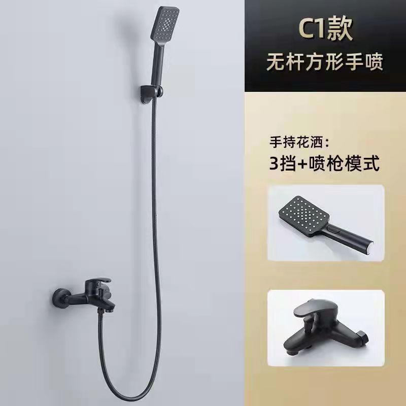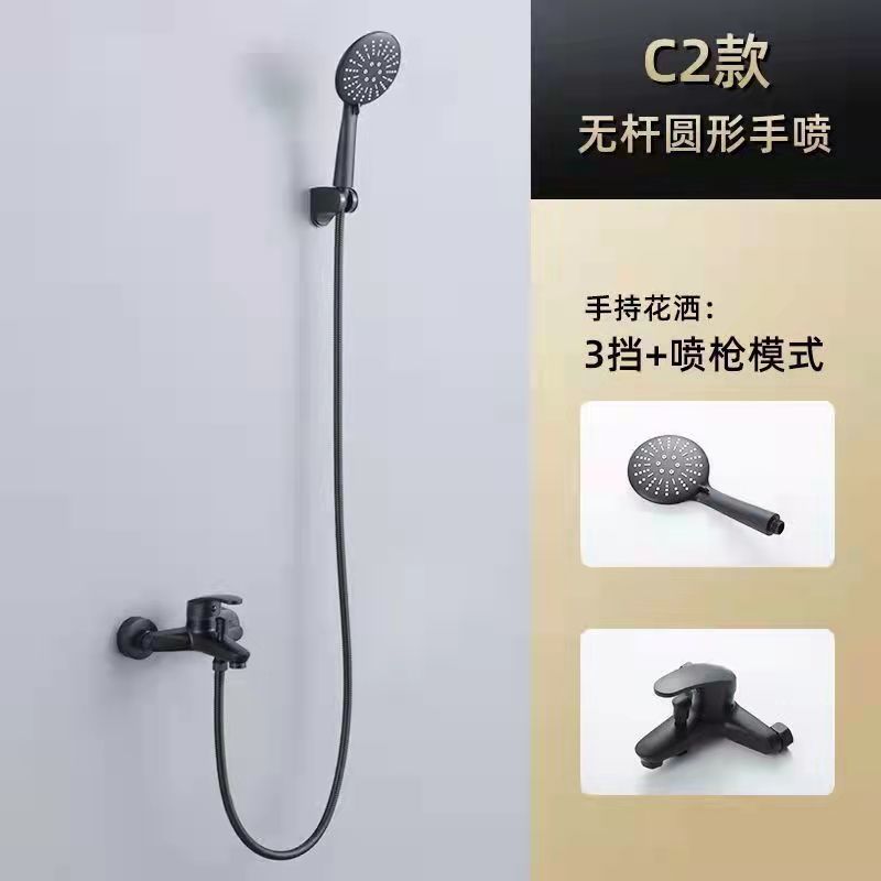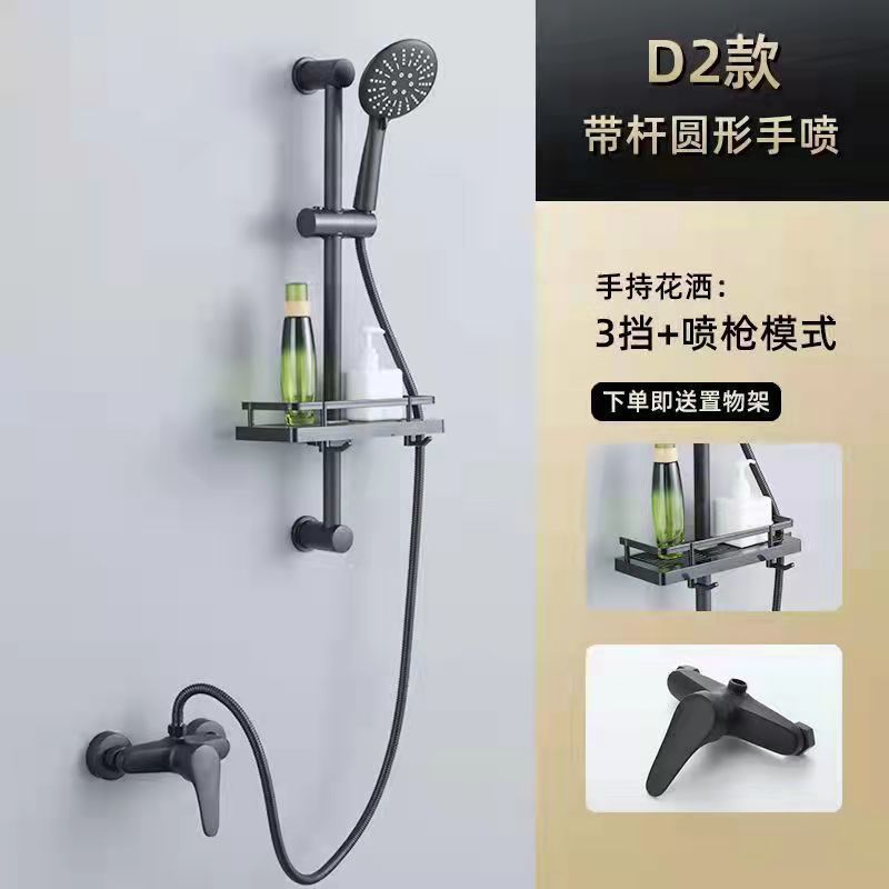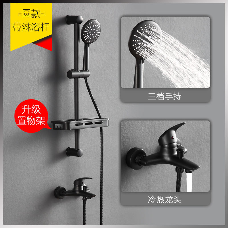 샤워 헤드 세트 간단한 노즐 구리 뜨겁고 차가운 검은 색 페인트 조절 욕실 세트 레인 샤워 수도꼭지스토어 가기