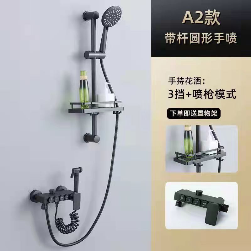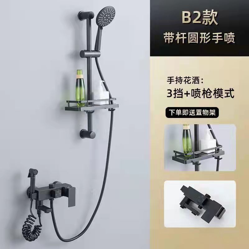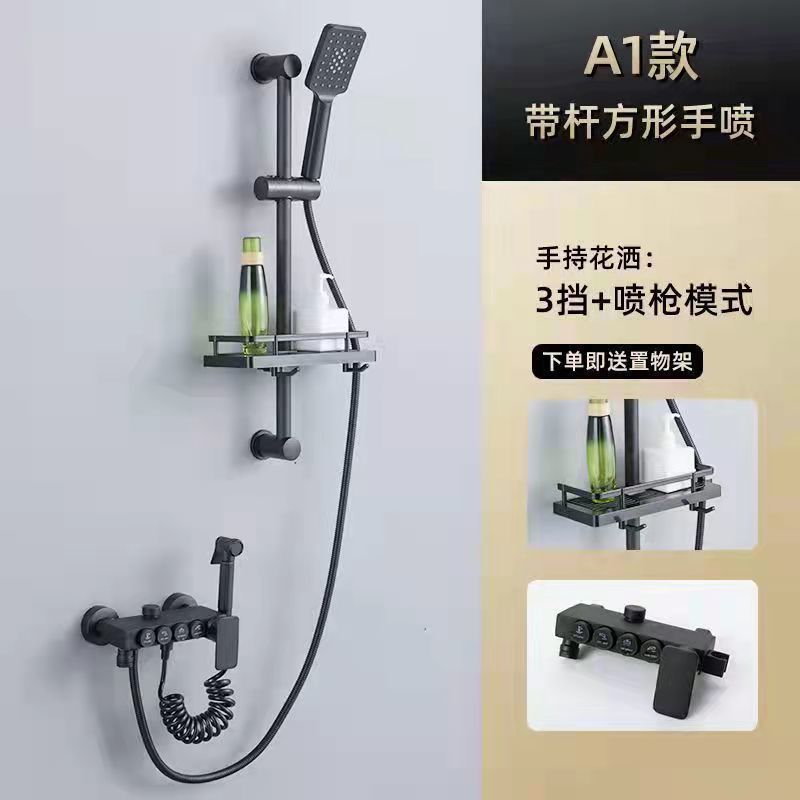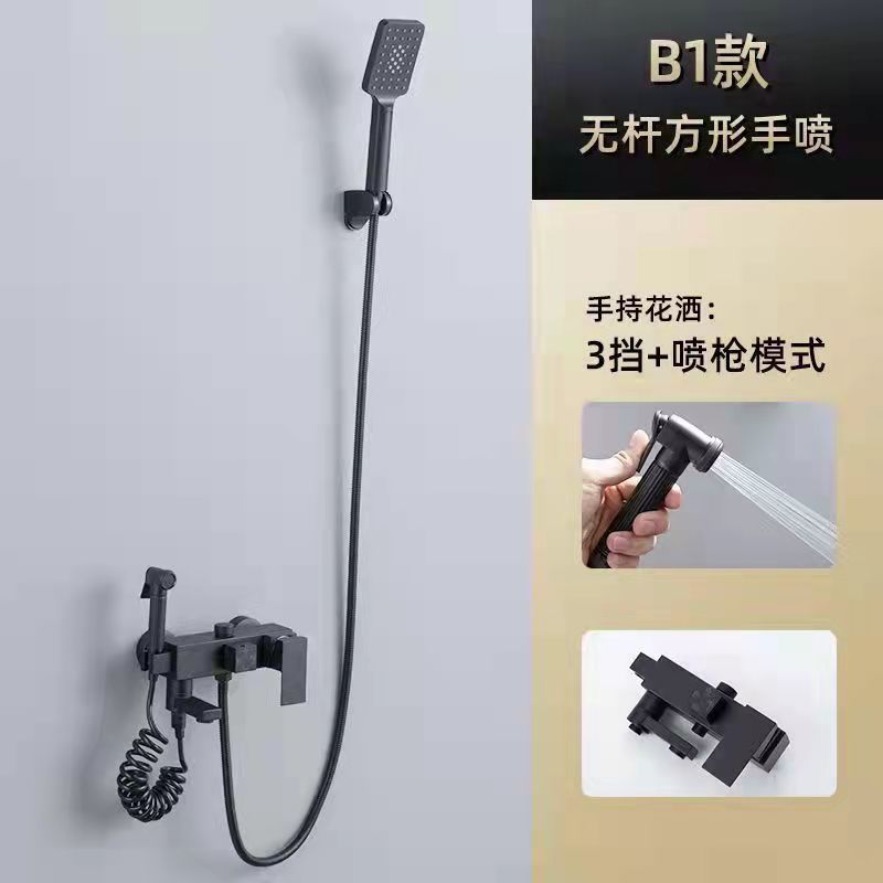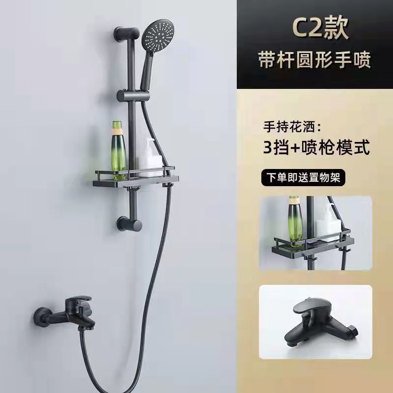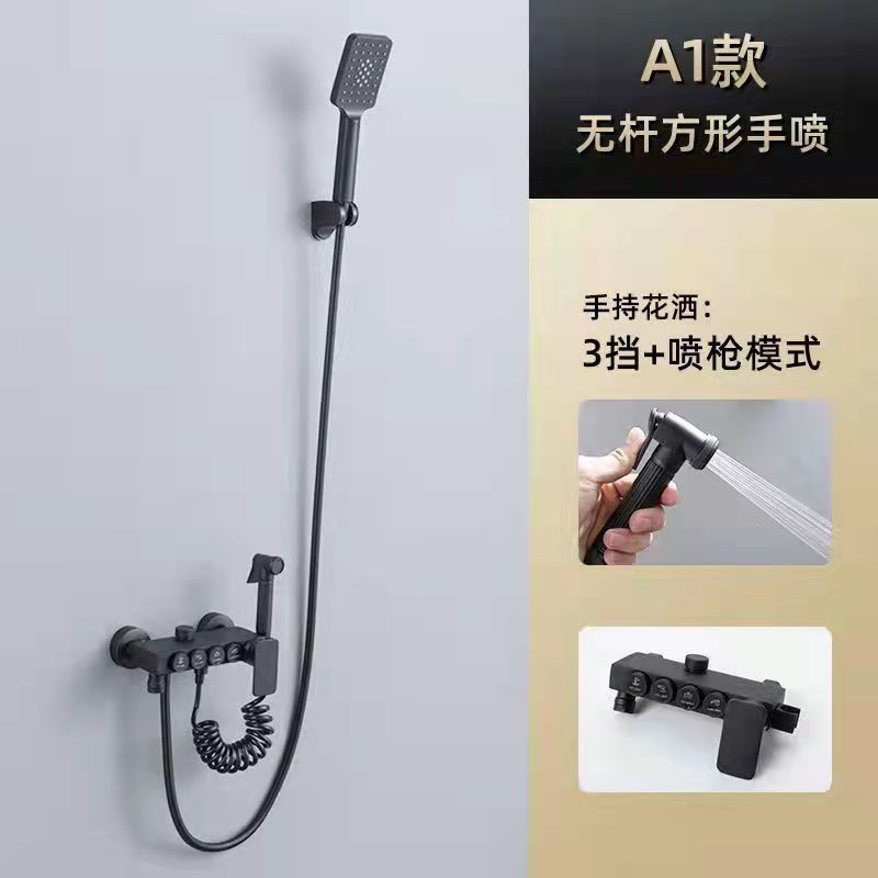 샤워 헤드 세트 간단한 노즐 구리 뜨겁고 차가운 검은 색 페인트 조절 욕실 세트 레인 샤워 수도꼭지스토어 가기