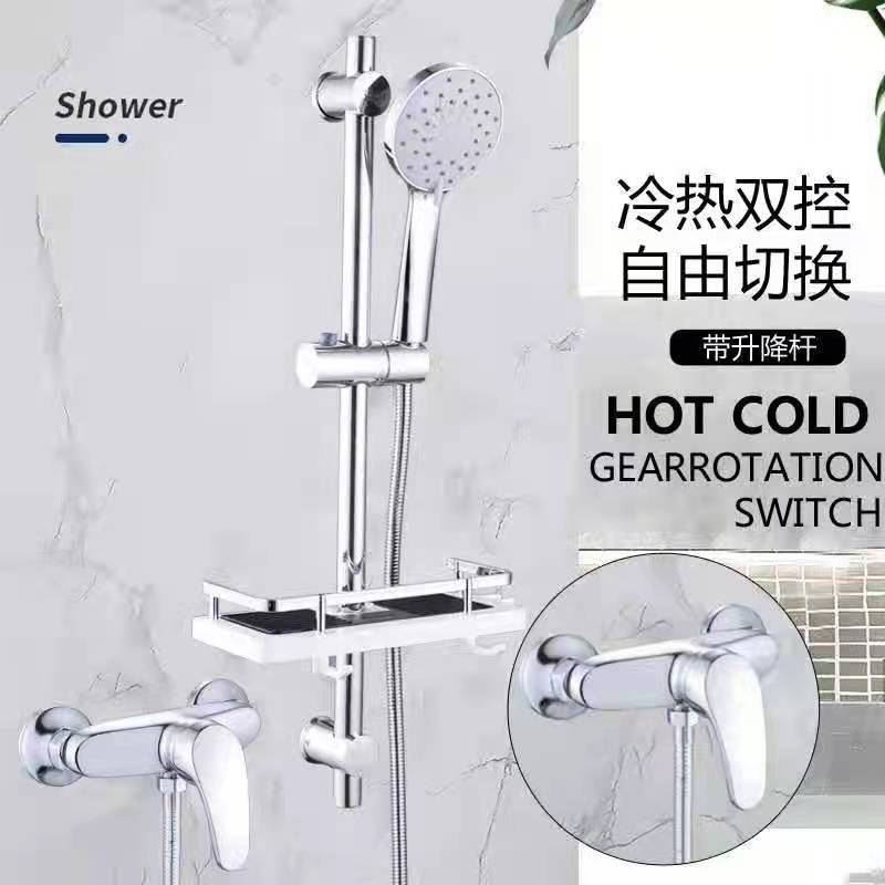 샤워 헤드 세트 간단한 노즐 구리 뜨겁고 차가운 검은 색 페인트 조절 욕실 세트 레인 샤워 수도꼭지