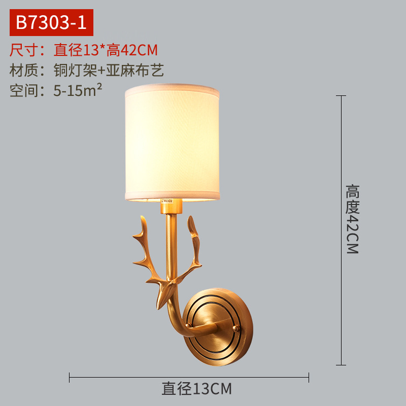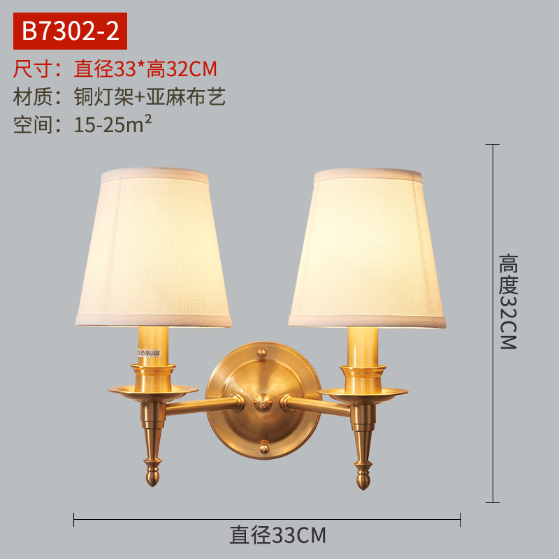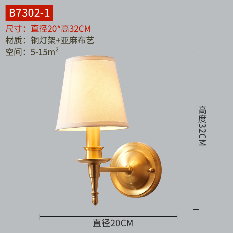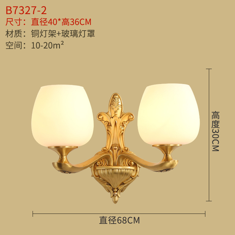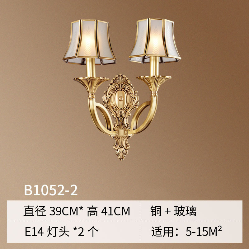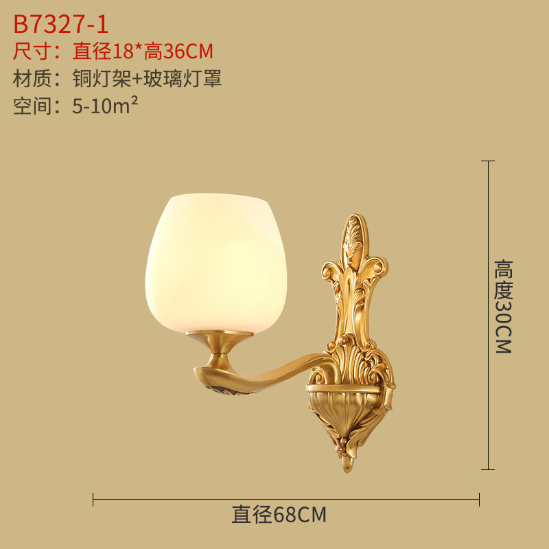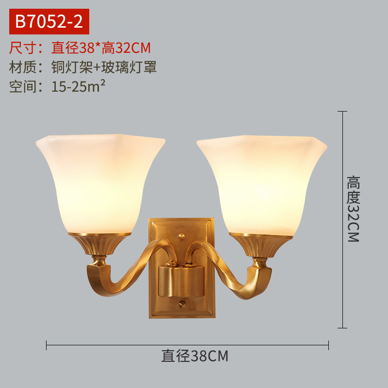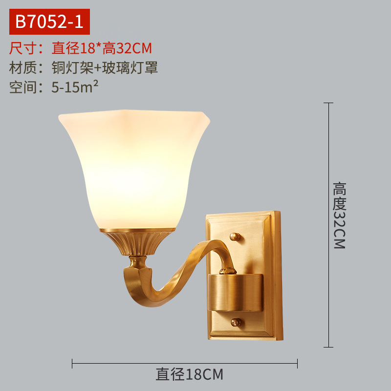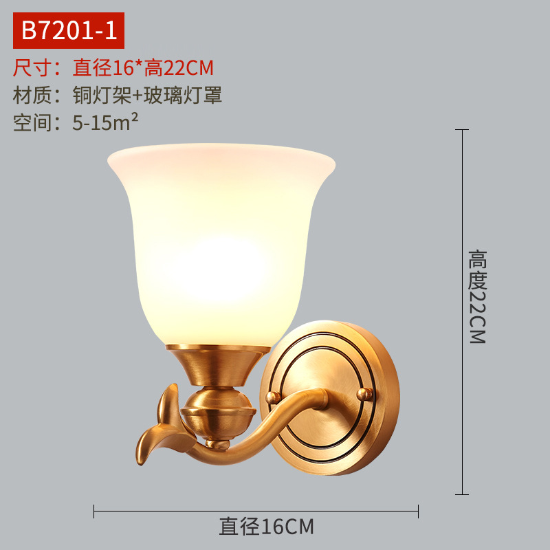 미국식 벽 램프 모든 구리 거실 복도 실내 침실 침실 램프 유럽식 유리 커버 빈티지 침실 벽 램프
