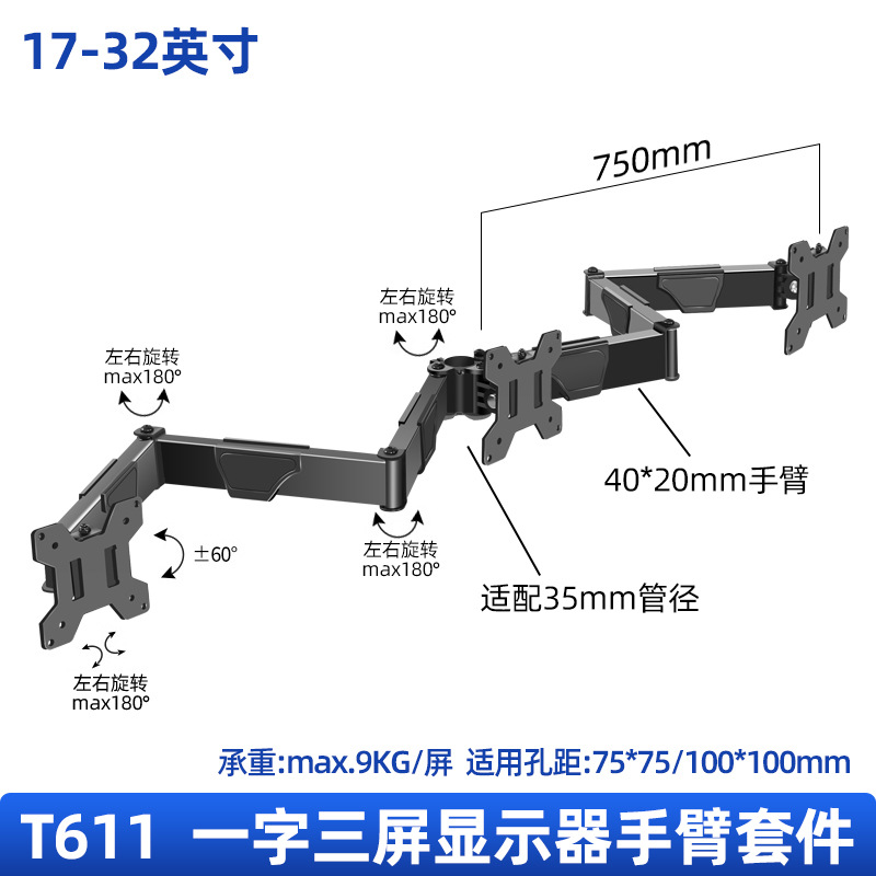 • [파이프 직경 35MM] 수평 3스크린 접합 브래킷 암/ 17-32inch