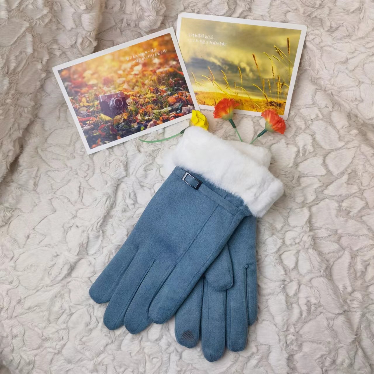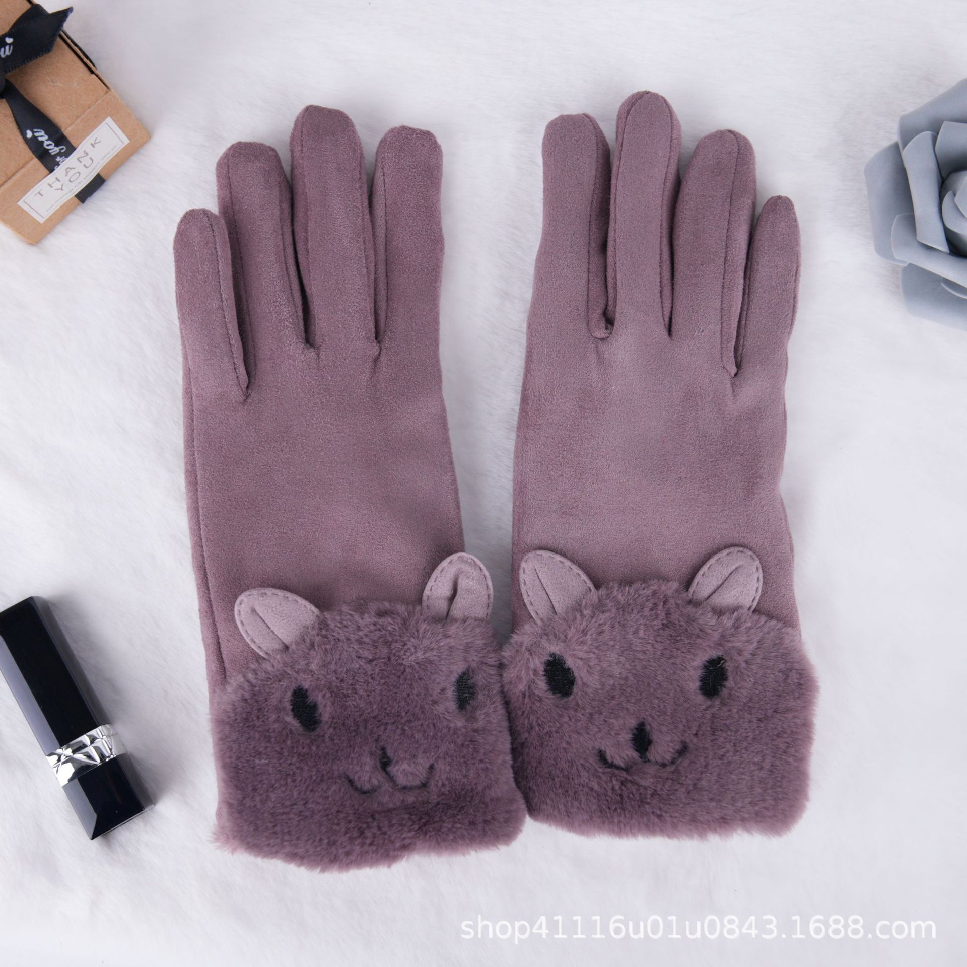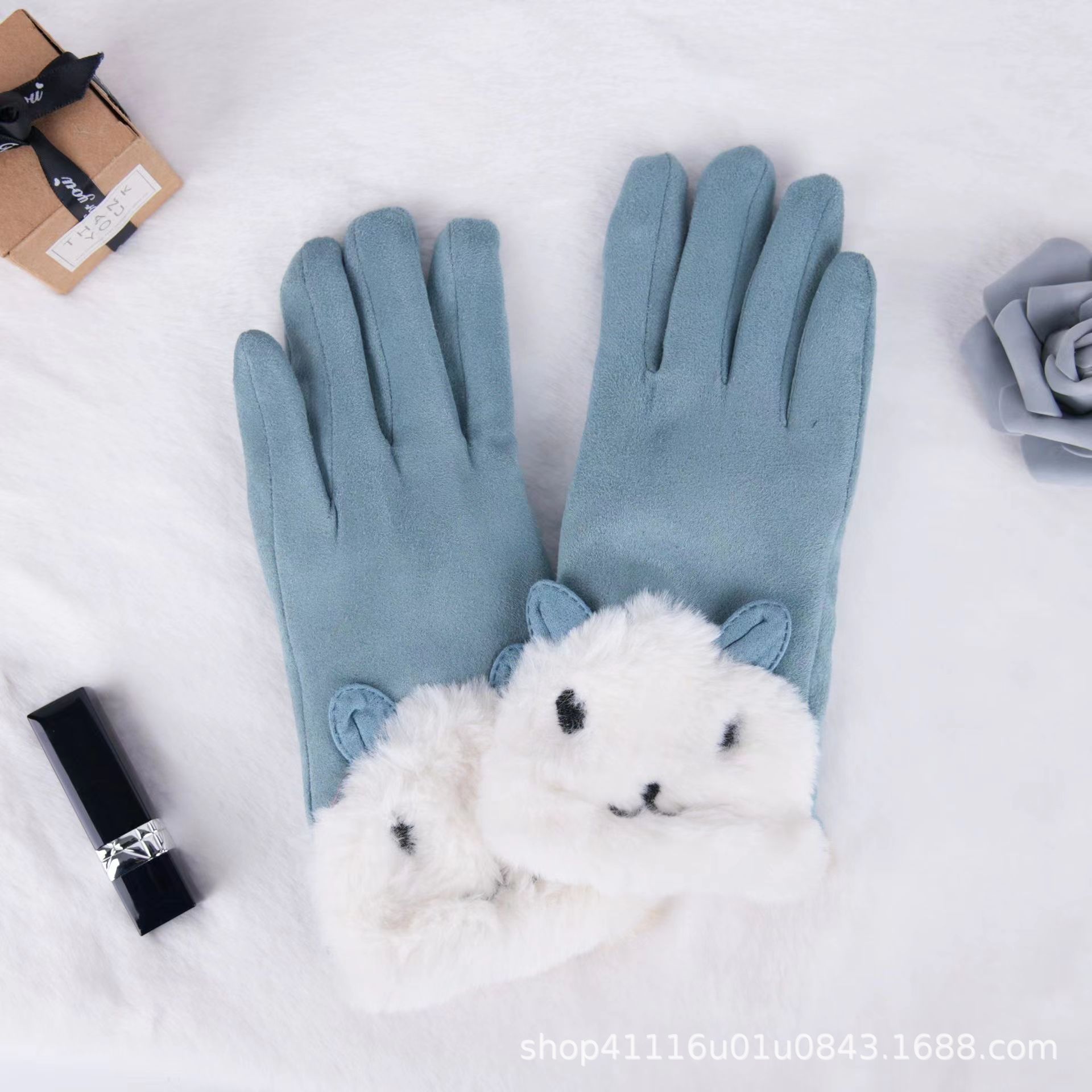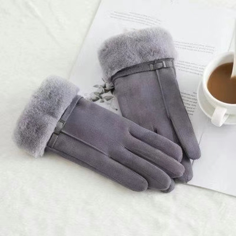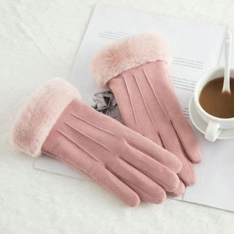 따뜻한 장갑 여성 겨울 장갑 스웨이드 기모 따뜻한 사이클링 가을과 겨울 귀여운 터치 스크린 장갑