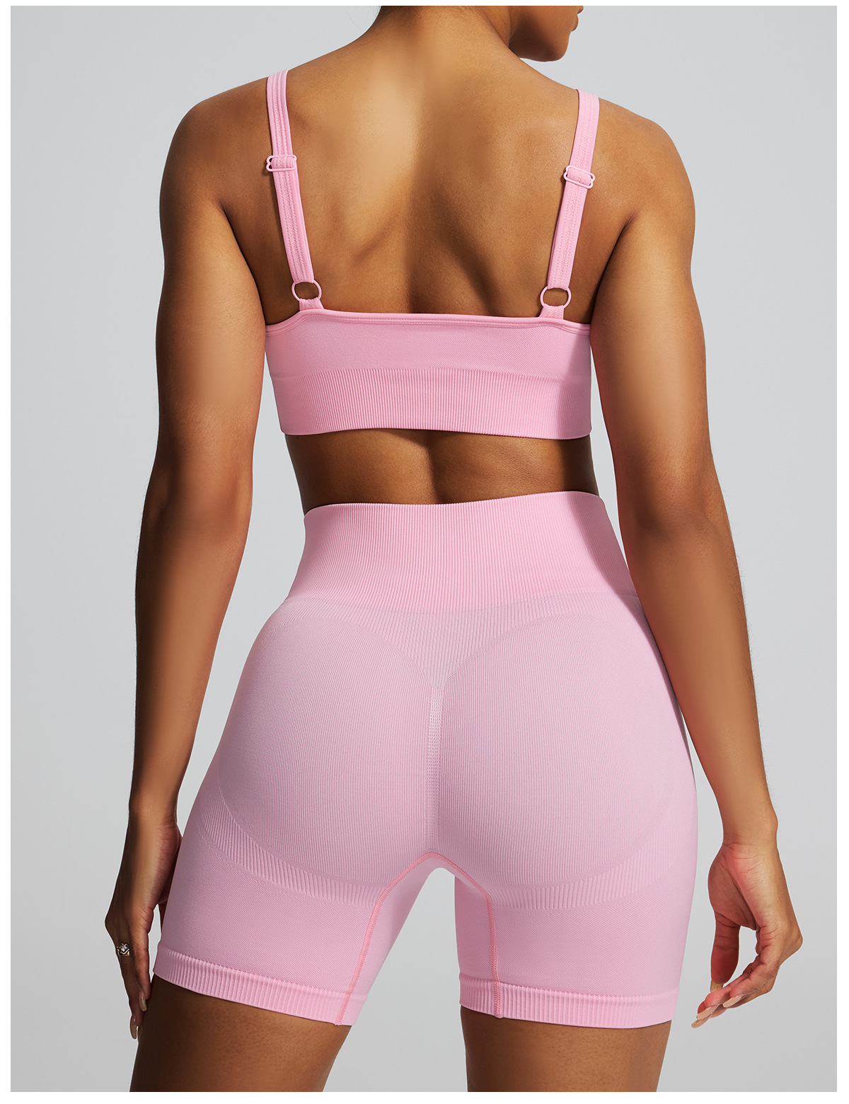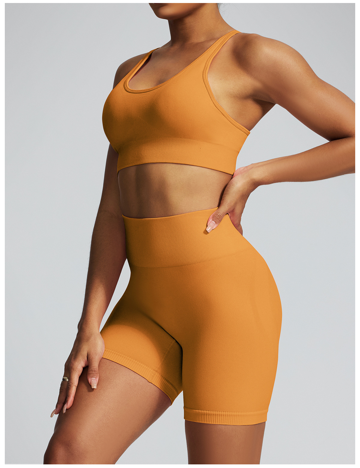 국경 원활한 솔리드 컬러 니트 고탄성 스포츠 브래지어 속옷 요가 바지 러닝 스포츠 피트니스 요가 의류 세트