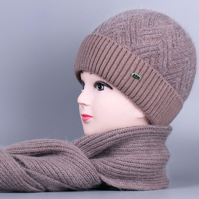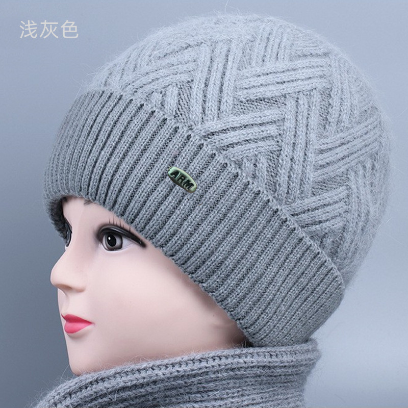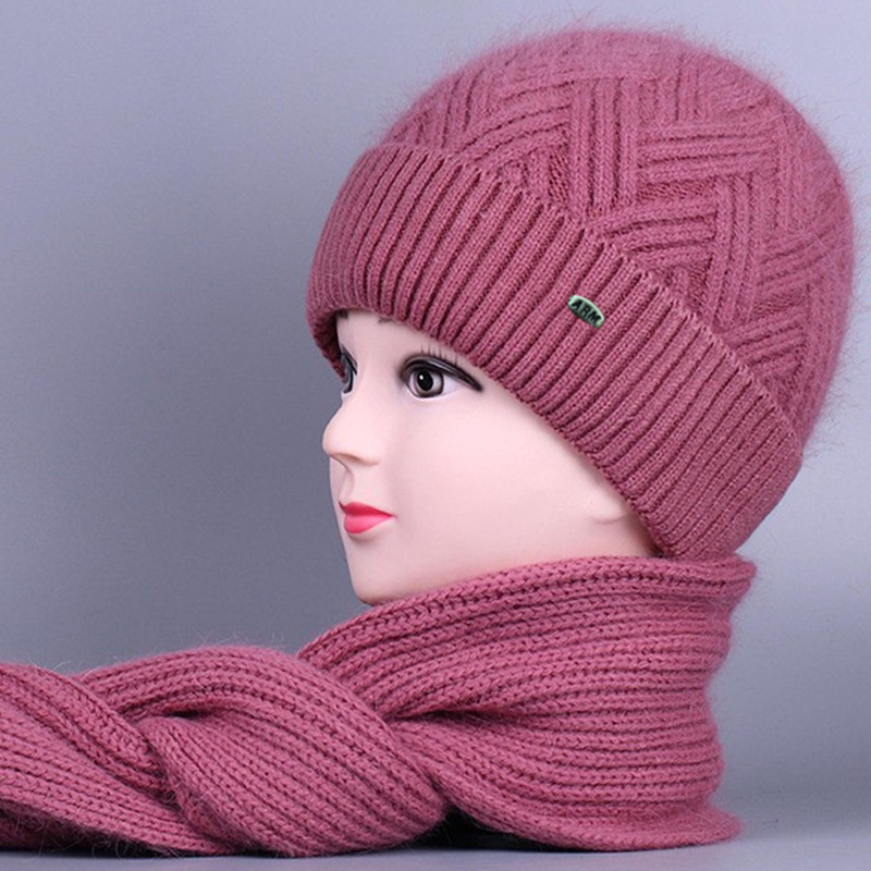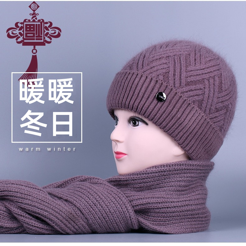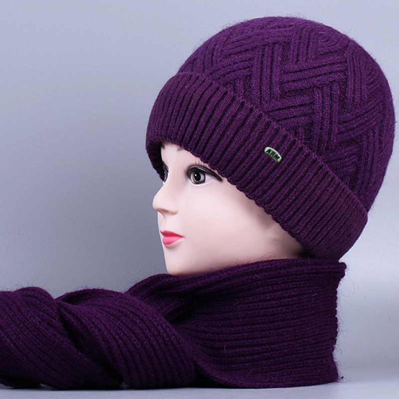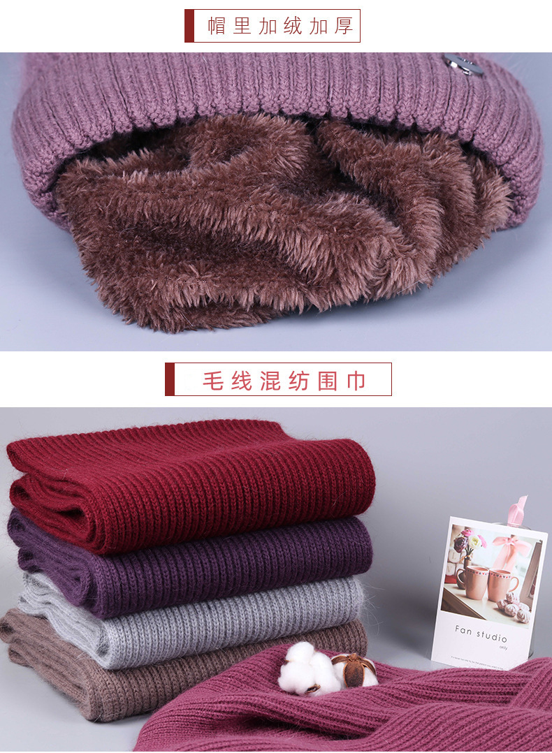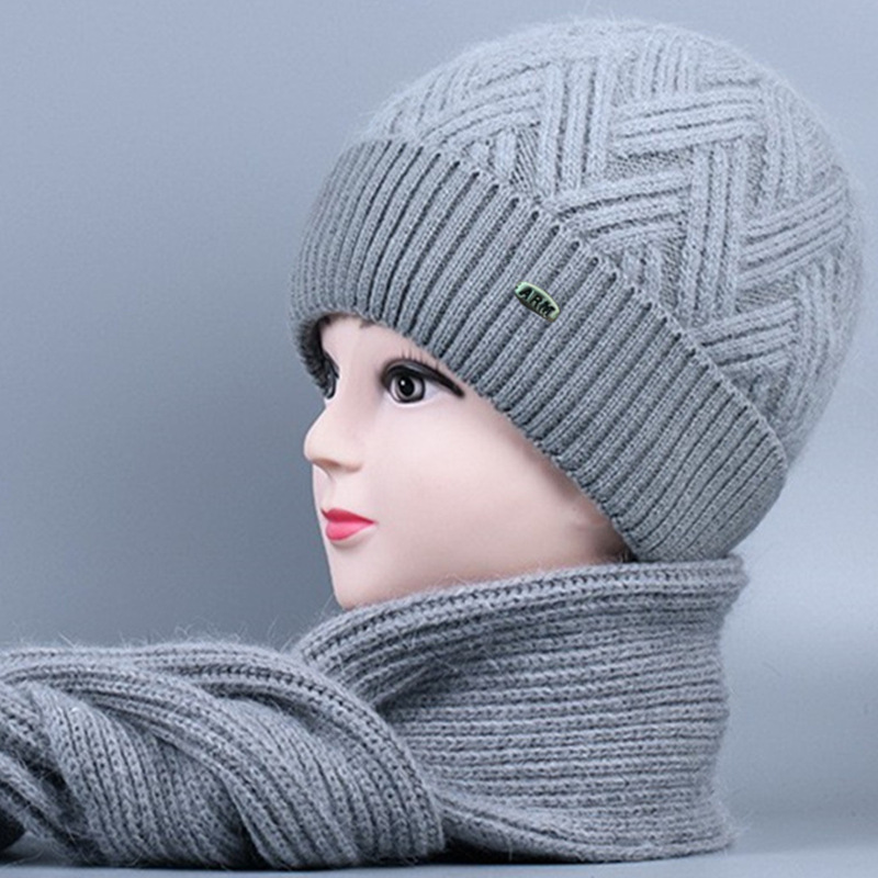 중노년 여성용 겨울 모자 스카프 세트, 벨벳 안감과 두꺼운 니트 모직 모자, 방한 보온 여성용 버킷햇