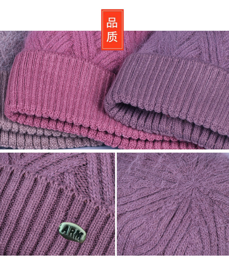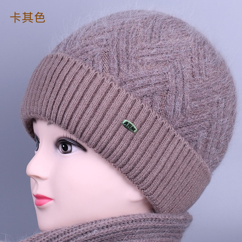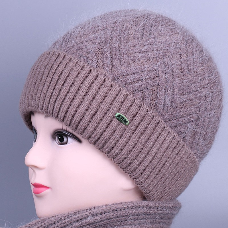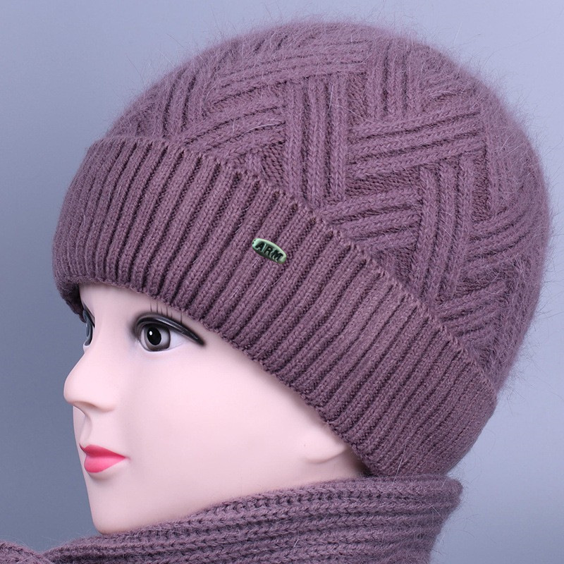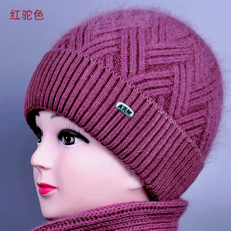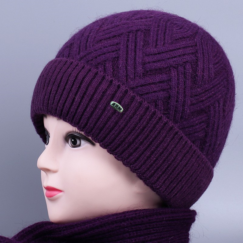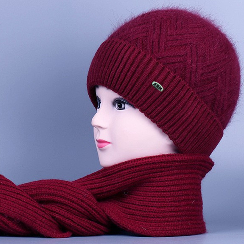 중노년 여성용 겨울 모자 스카프 세트, 벨벳 안감과 두꺼운 니트 모직 모자, 방한 보온 여성용 버킷햇