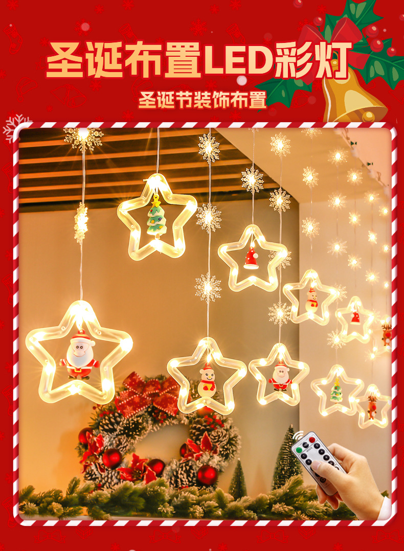 발광 오각별 아이스바 LED 조명 스트링 크리스마스 실내 방 커튼 분위기 장식 배치 해외 직구스토어 가기