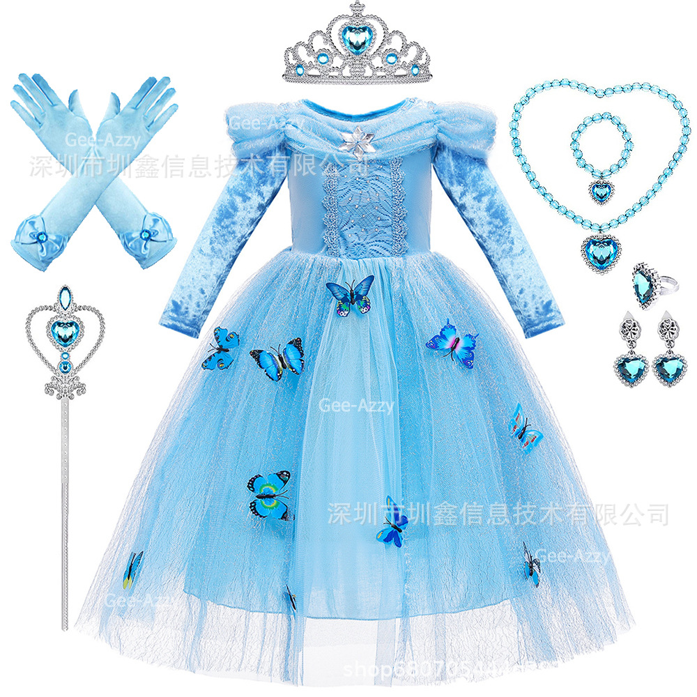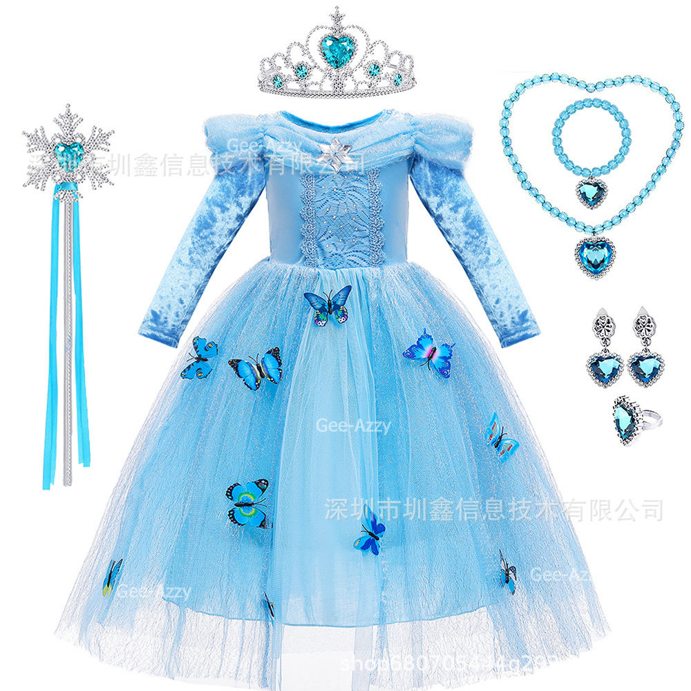 나비 냉동 공주 드레스 엘사 드레스 소녀 엘사 신데렐라 드레스 생일 드레스 여름