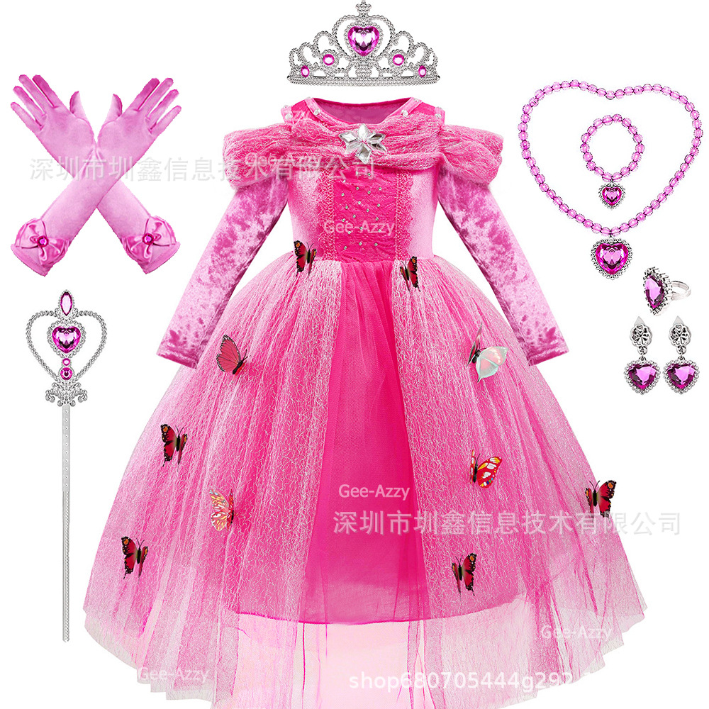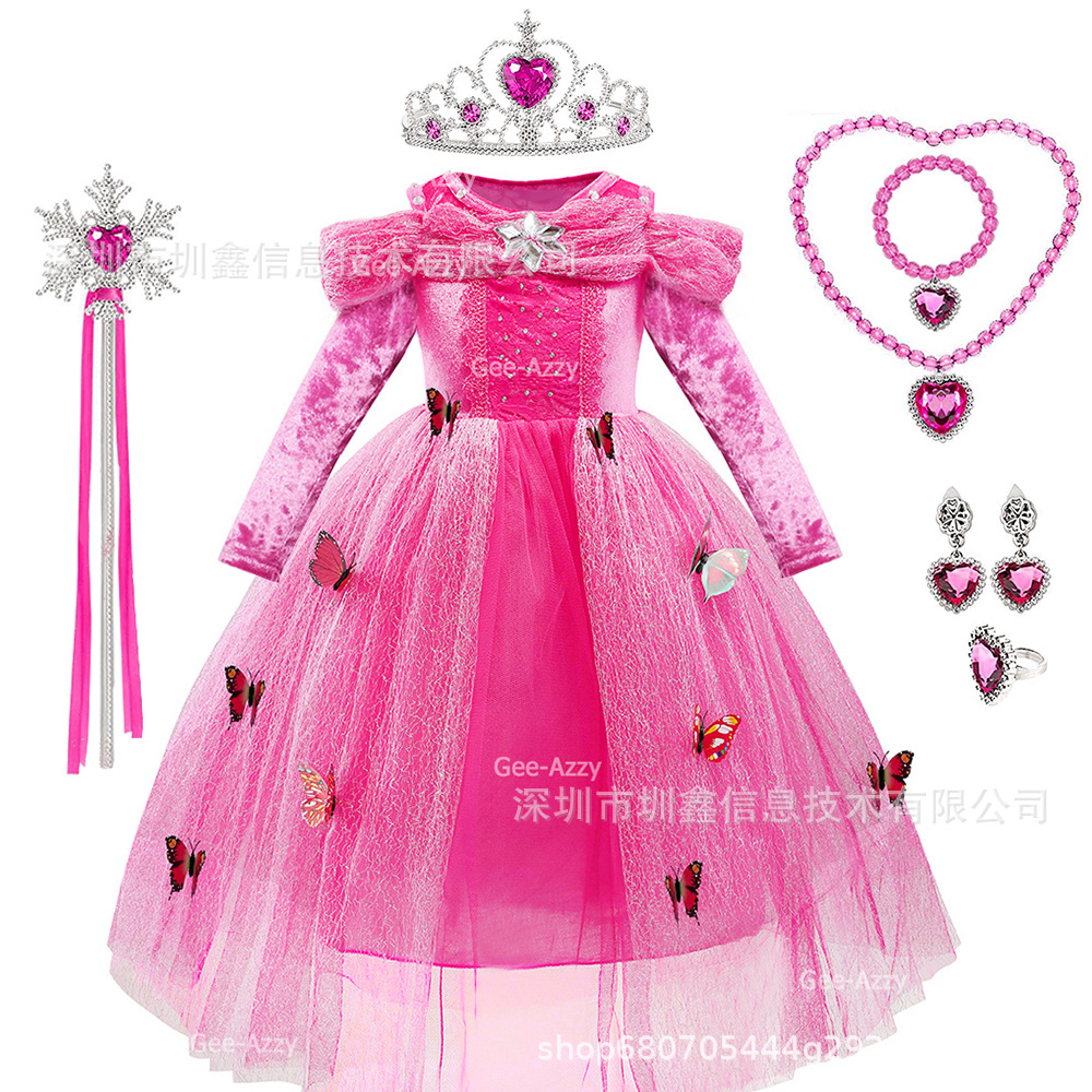 • 핑크 긴 소매 공주 원피스 + 공주 세트