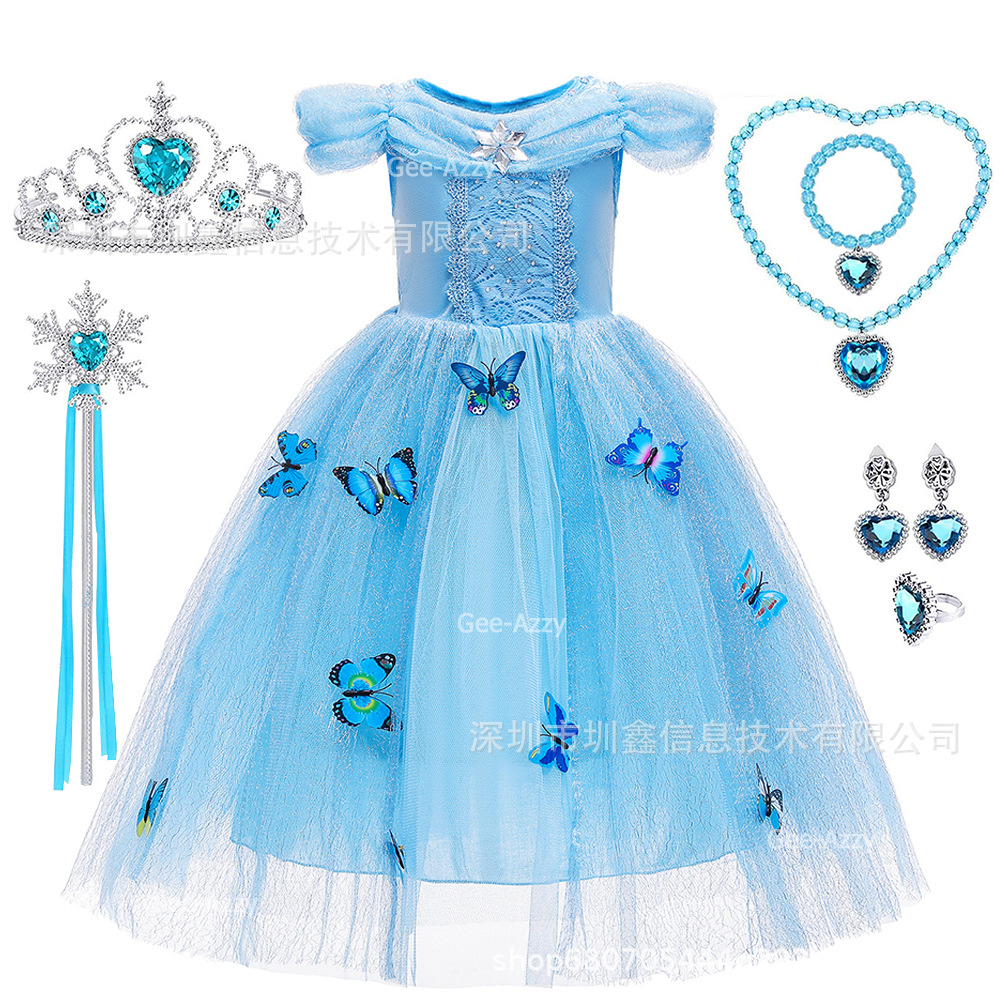 나비 냉동 공주 드레스 엘사 드레스 소녀 엘사 신데렐라 드레스 생일 드레스 여름스토어 가기