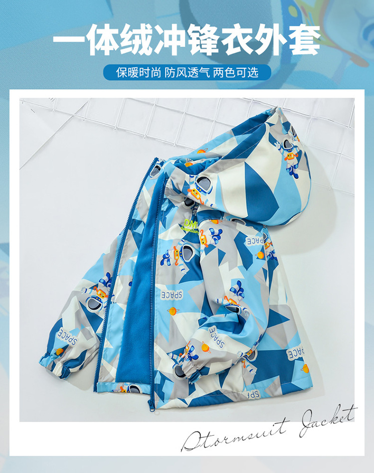 남아용 봄가을 기모 재킷, 2025년 신상 아동용 일체형 기모 가을옷, 중대형 아동용 방풍 상의, 트렌디스토어 가기