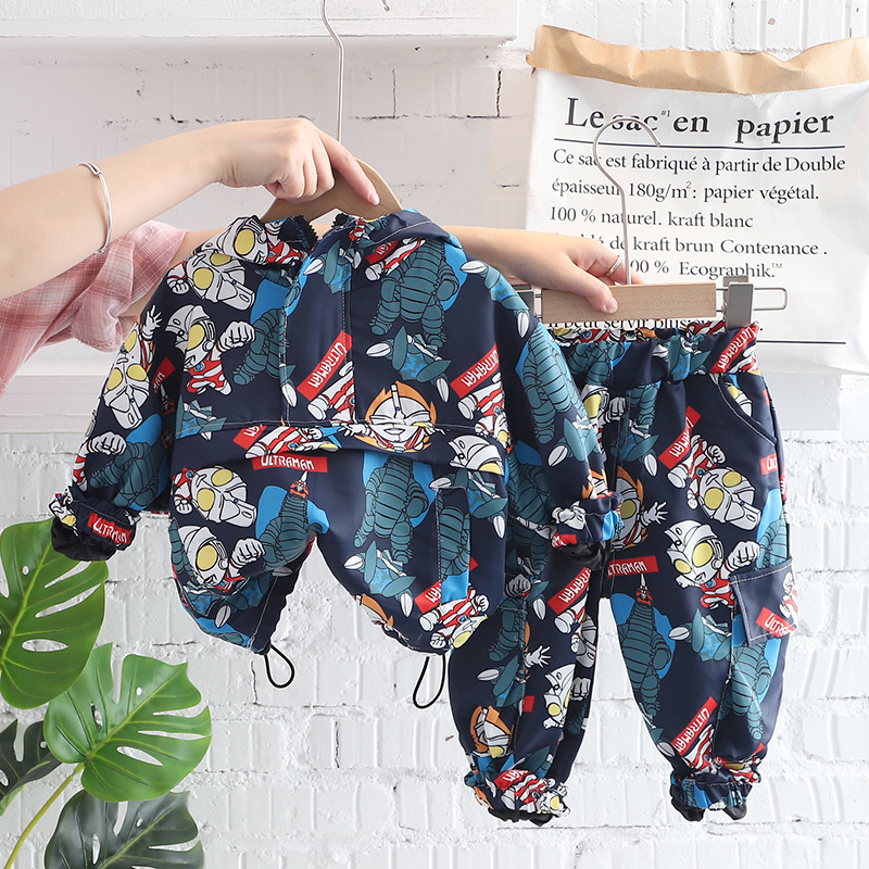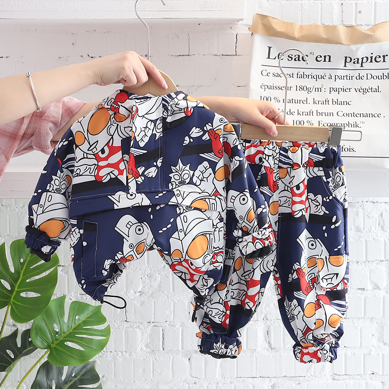 소년 가을 세트 어린이 2022 새로운 느슨한 캐주얼 힙합 전체 인쇄 가을 2 피스 공장 도매