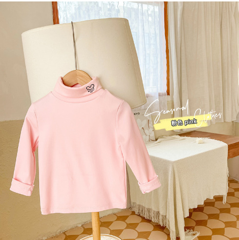 2022 가을과 겨울 하이 칼라 바닥 셔츠 아기 긴팔 아동복 소년 소녀 티셔츠 가을 아동 코트 도매